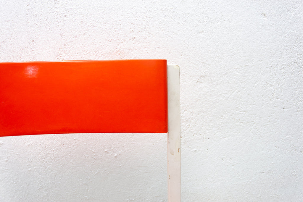 It´s made of beech wood and plywood and has a lacquered seats and backrests. The chairs are in good Vintage condition. Very interesting model