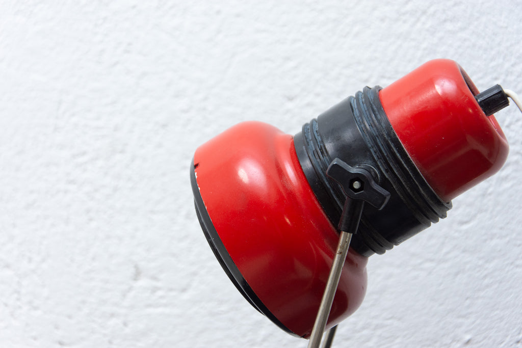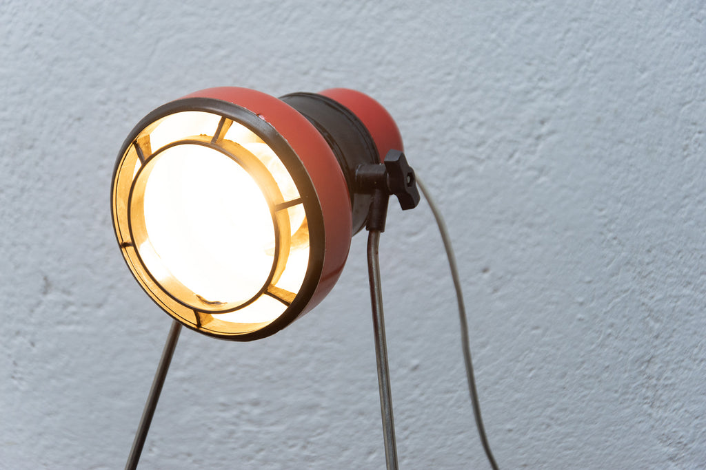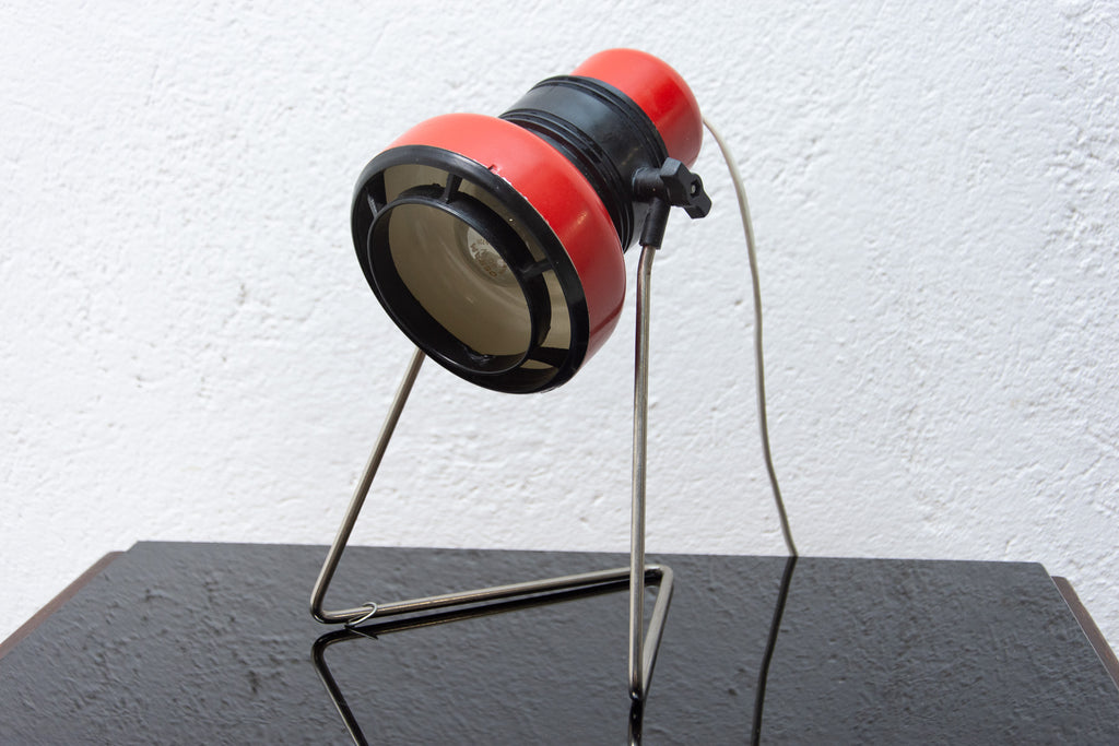 Small adjustable table or wall lamp, 1970´s, made in Hungaria. Chrome, enamel & plastic. In very good Vintage condition.