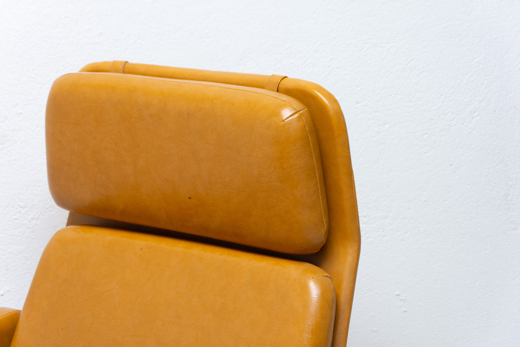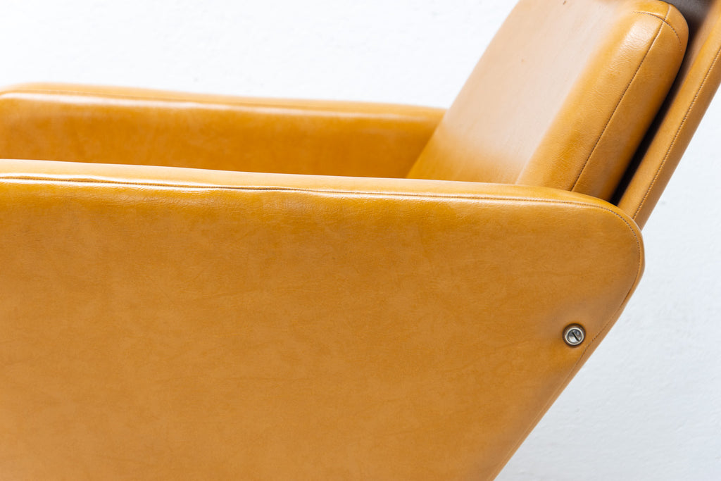 These armchairs were made in the former Czechoslovakia in the 1970´s. The chairs are upholstered with leatherette. The legs are made from iron. All in original condition. The chairs are in good Vintage condition, shows slight signs of age and using.