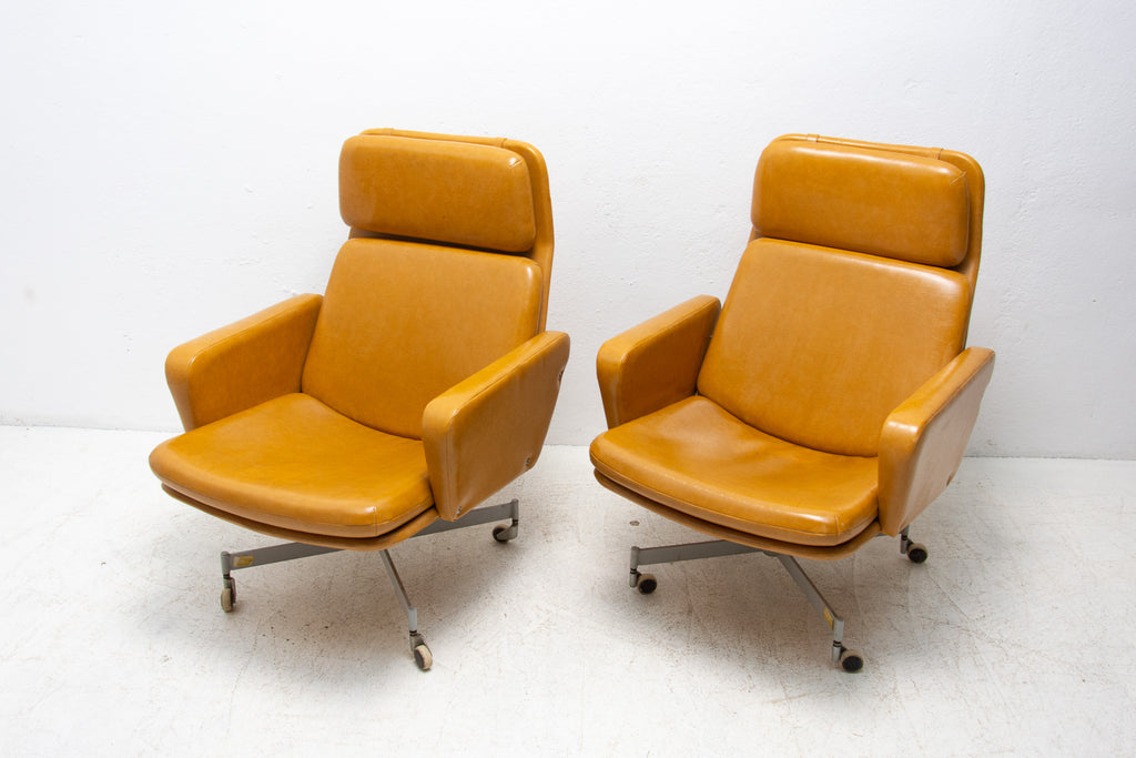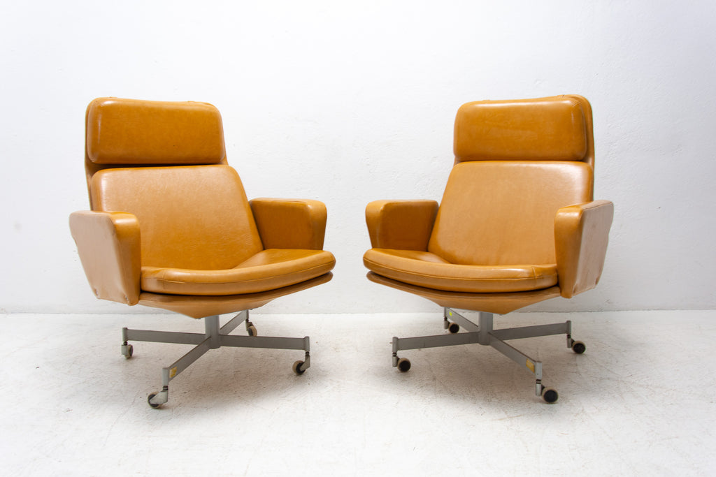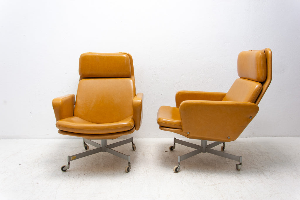 Pair of mid century Czechoslovak swivel armchairs, 1970s
