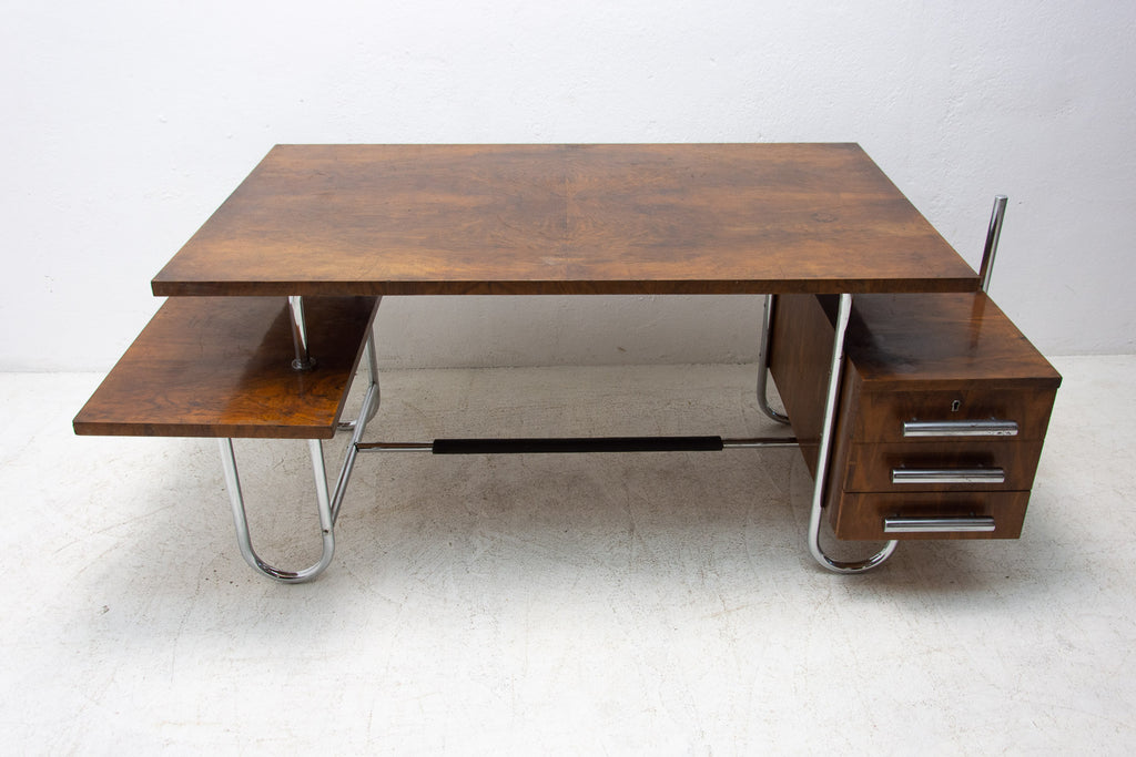 Tubular massive writing desk, cataloque no. B-327. It was originaly designed by André Lurçat and it was made in the former Czechoslovakia by Mucke Melder company under Thonet licence in the 1930´s. It´s originally marked.