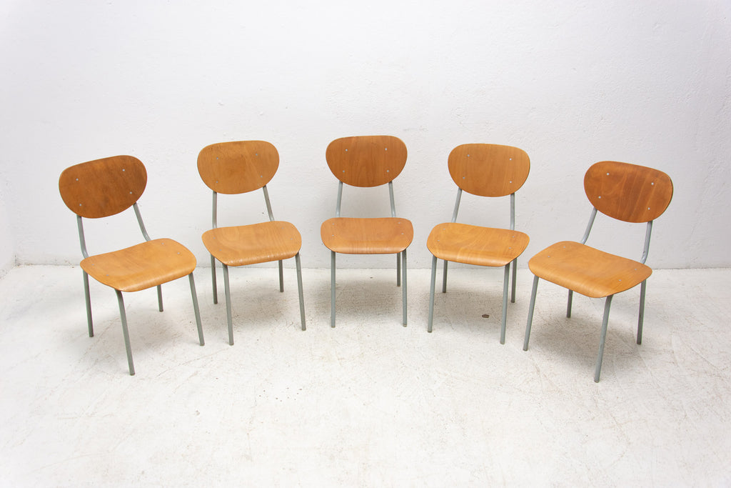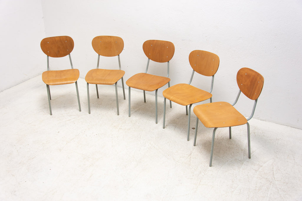 Vintage school chairs, Czechoslovakia, 1970s, set of 5
