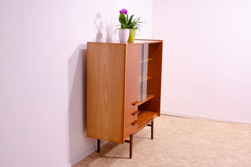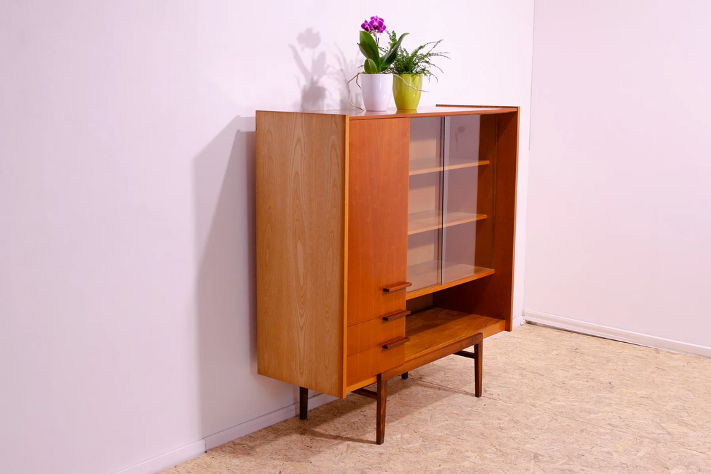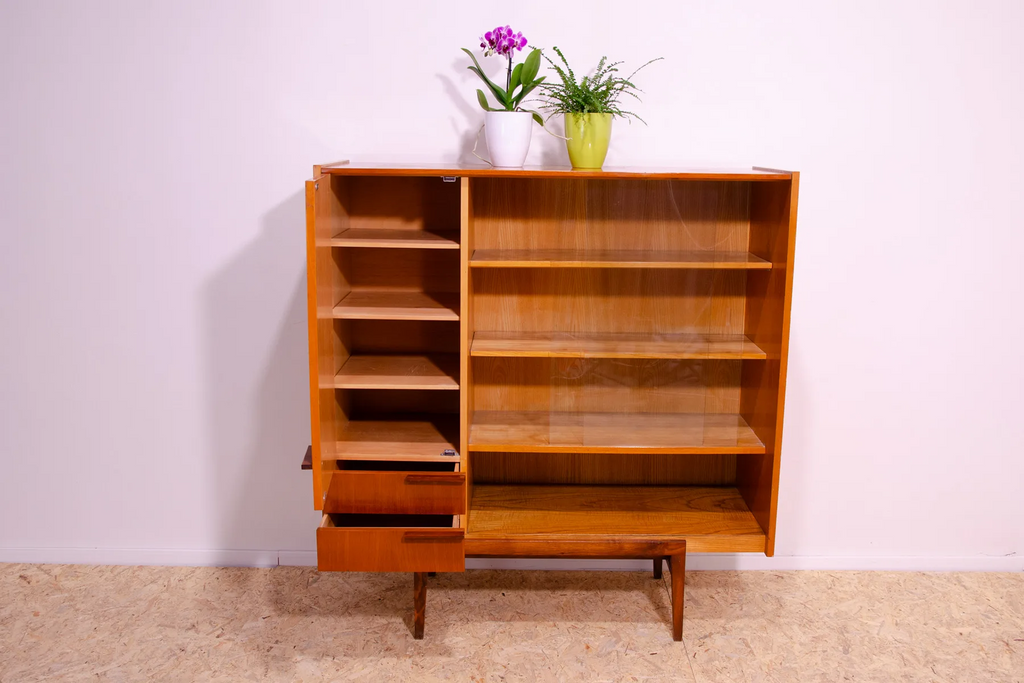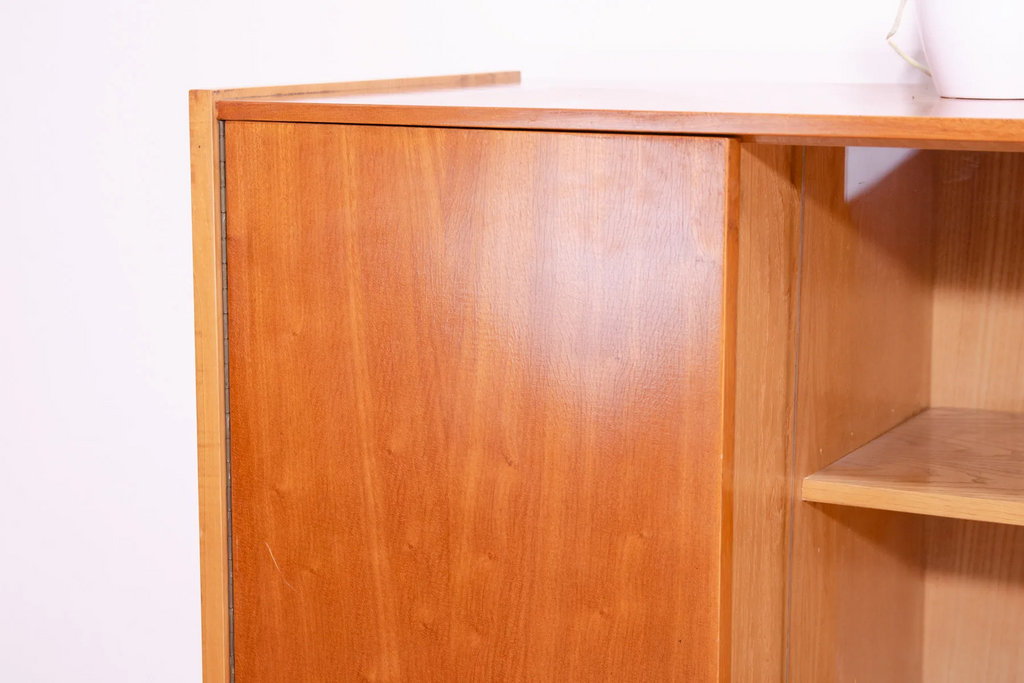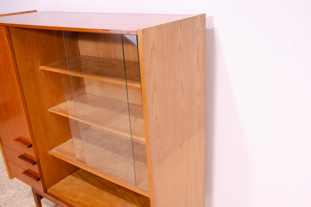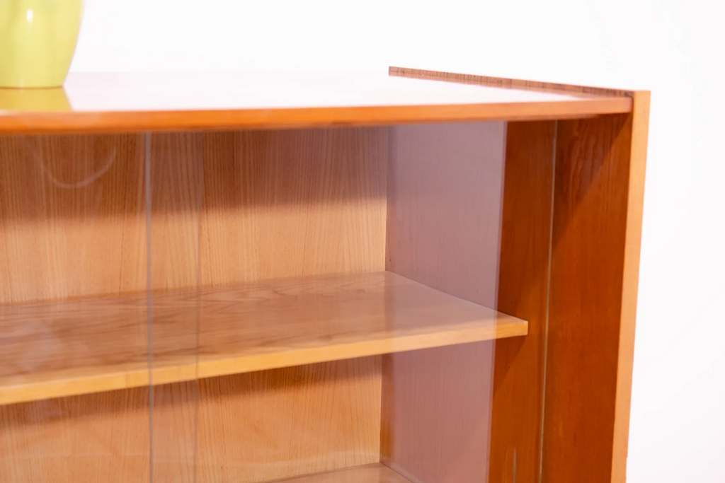 Mid century Czechoslovak Library cabinet, designed by Frantisek Mezulánik and produced by ÚP Závody in the 1960´s. Material: beech wood, ash wood, plywood, glass.
