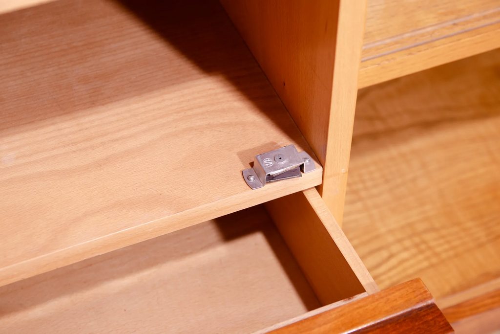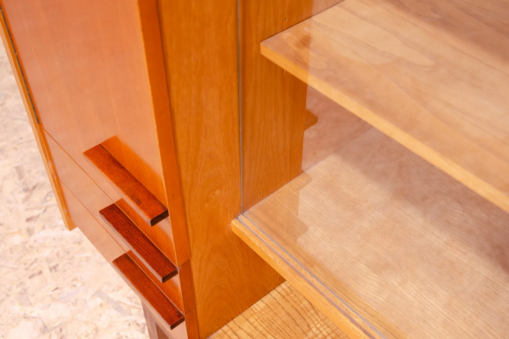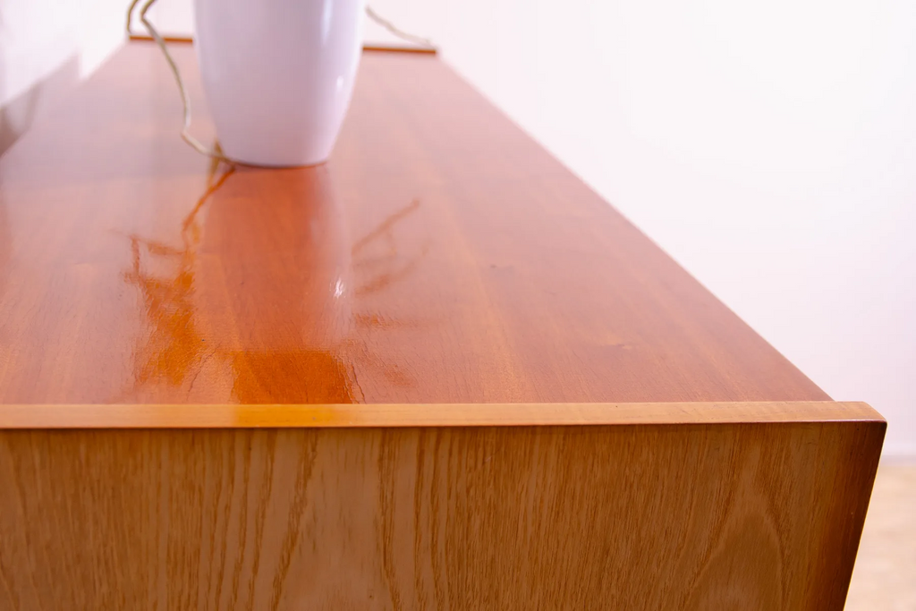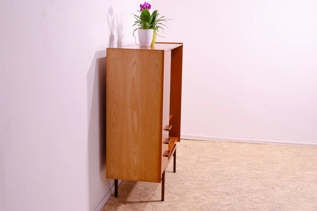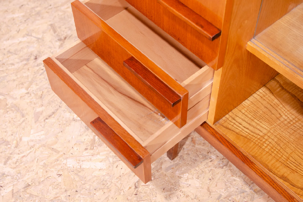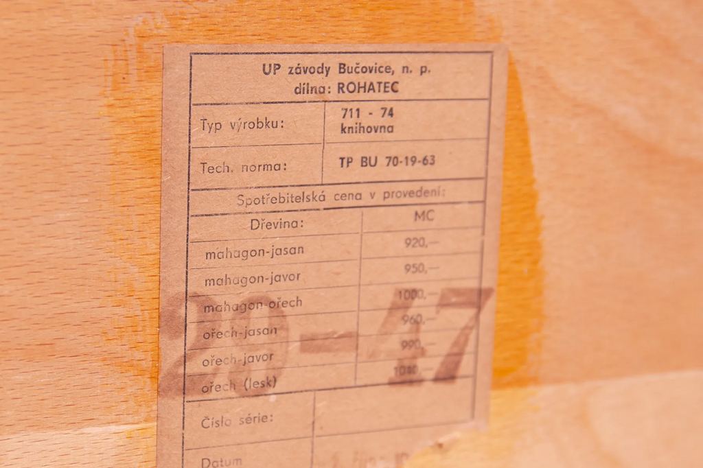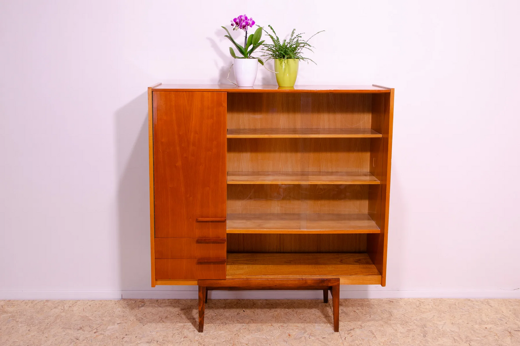 Mid century Czechoslovak Library cabinet, designed by Frantisek Mezulánik and produced by ÚP Závody in the 1960´s. Material: beech wood, ash wood, plywood, glass.