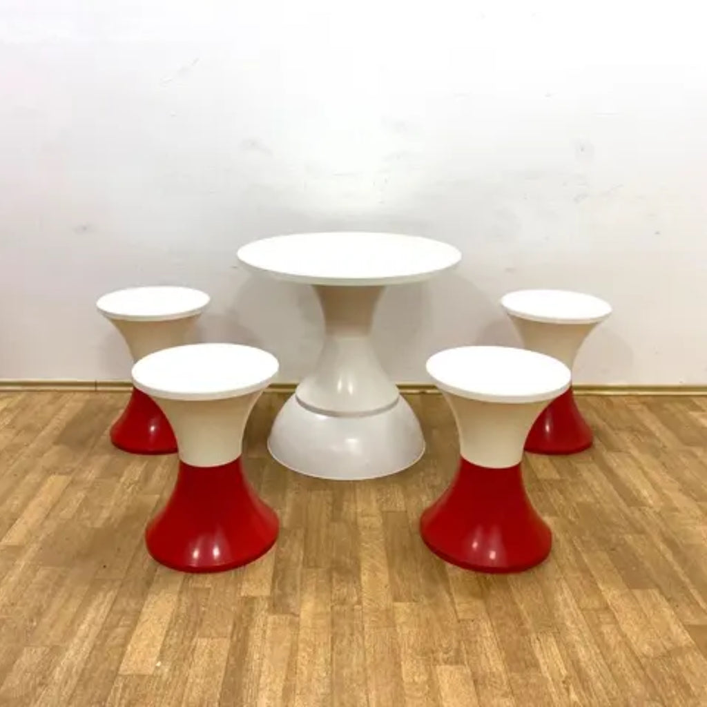 Mid-Century Space Age Stool & Table Set by Masonnet, 1970s, Czechoslovakia