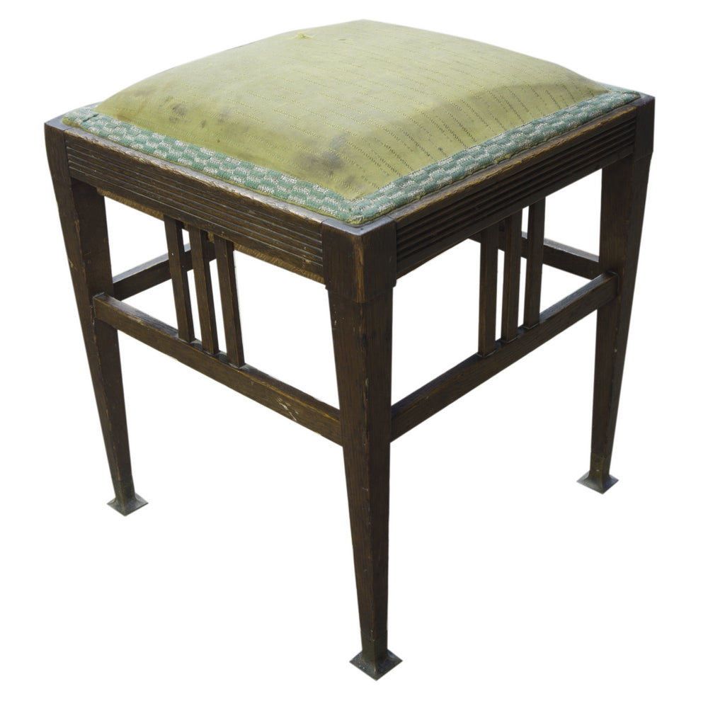 Tabouret de la période Sécession viennoise. Fabricant inconnu. Style classique viennois. Structure en bois en bon état. Dessus des pieds en métal, typique de la période viennoise. Revêtement dans son état d'origine. À restaurer. Après rénovation, ce sera un exemplaire exceptionnel.