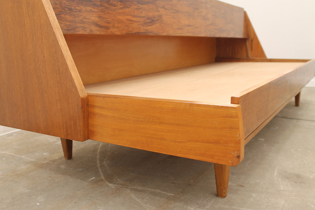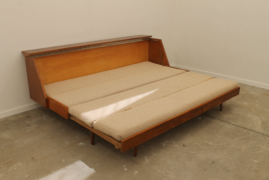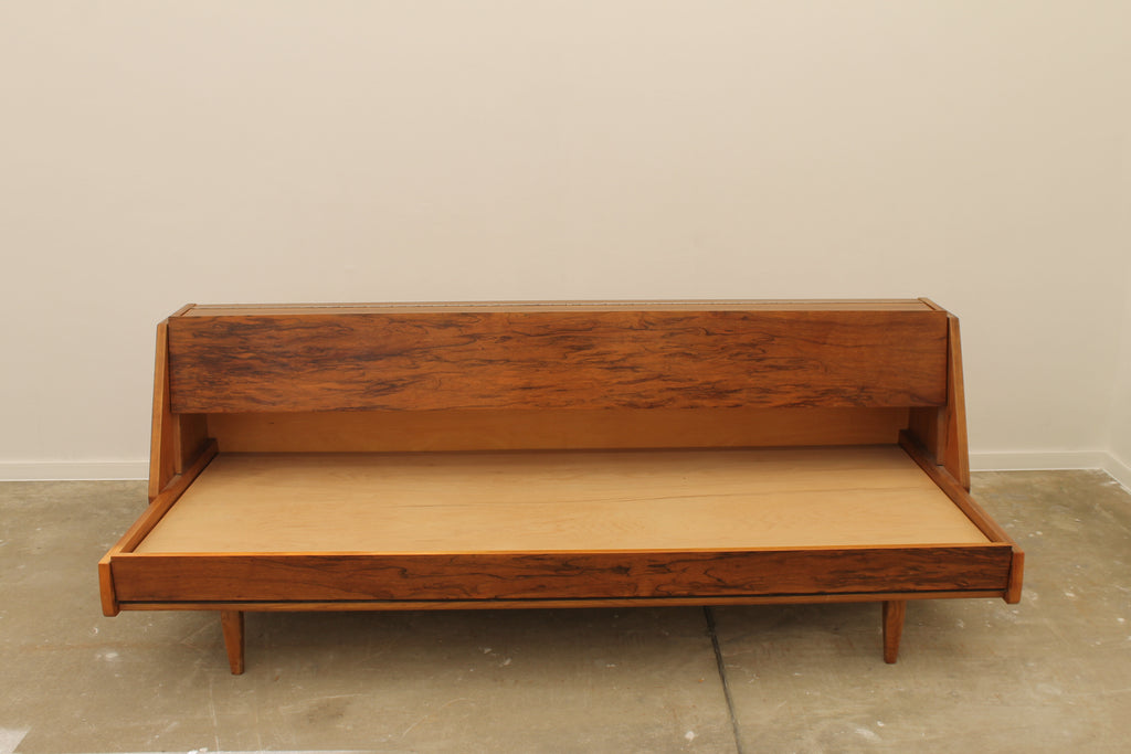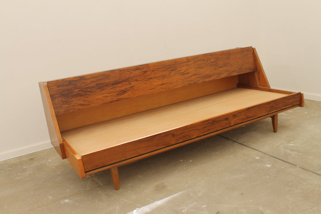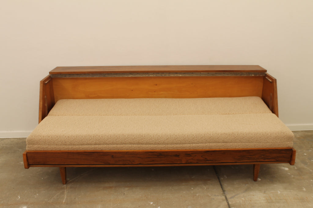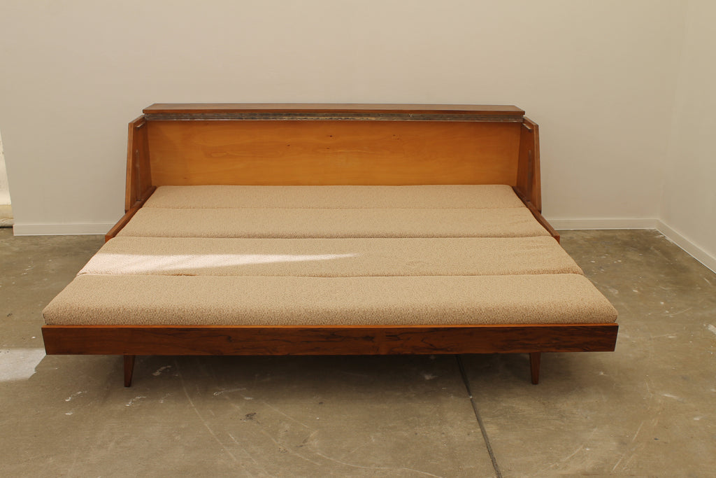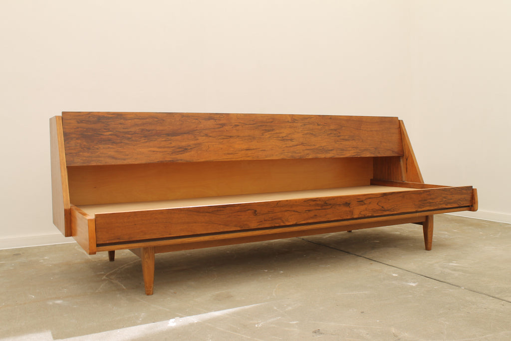 Canapé-lit pliant du milieu du siècle en noyer, années 1970, Tchécoslovaquie