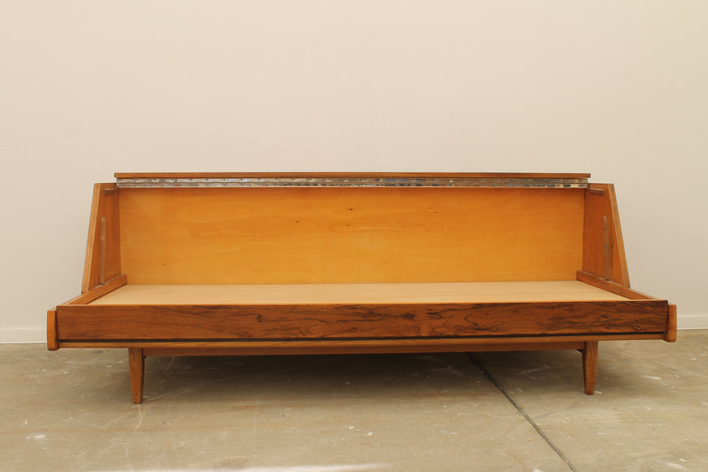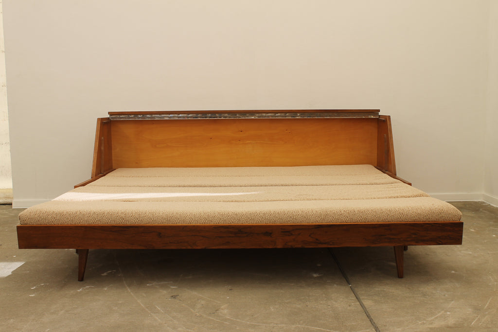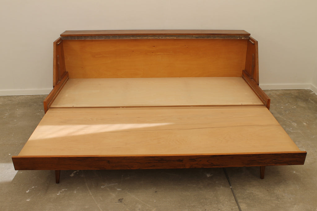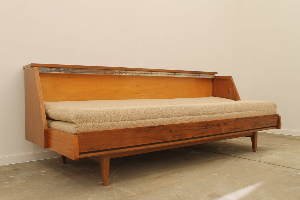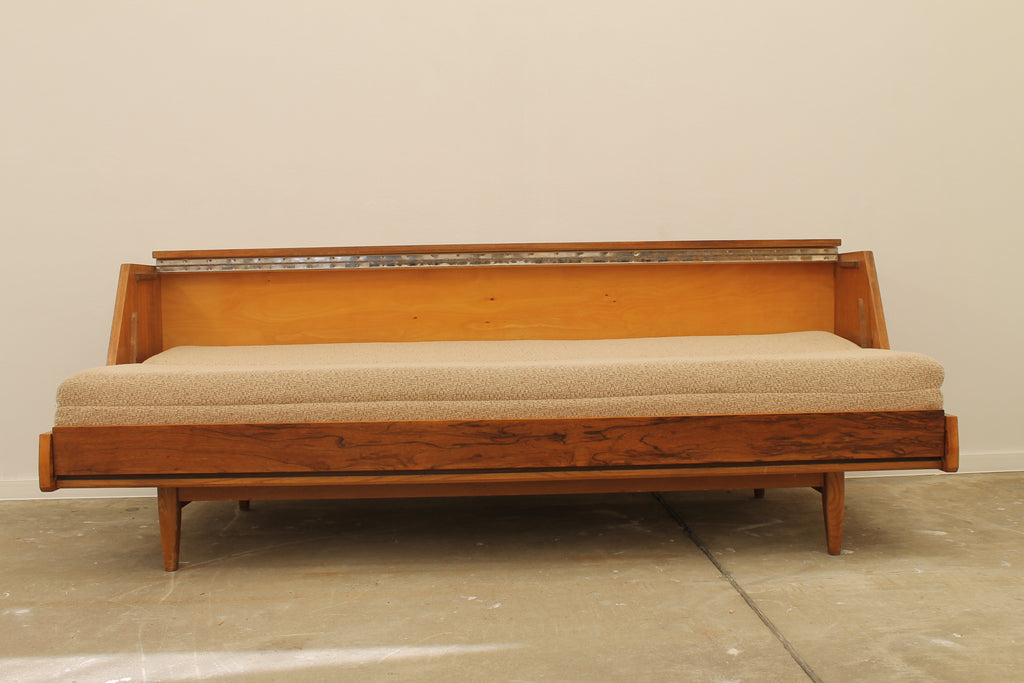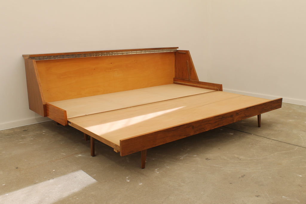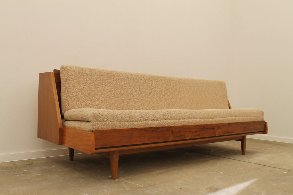 Canapé-lit pliant du milieu du siècle en noyer, années 1970, Tchécoslovaquie