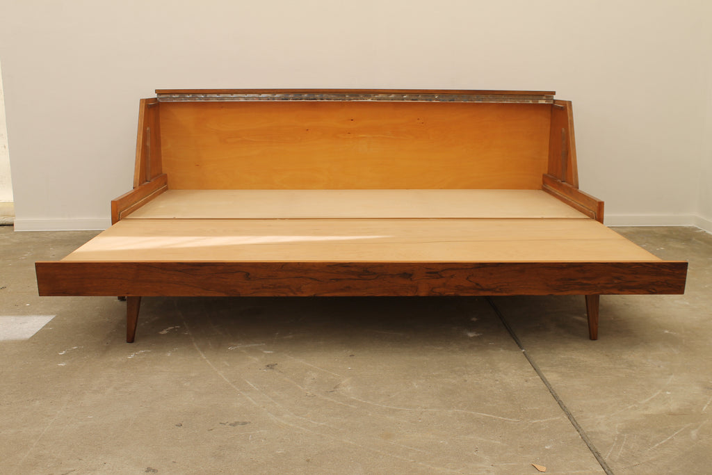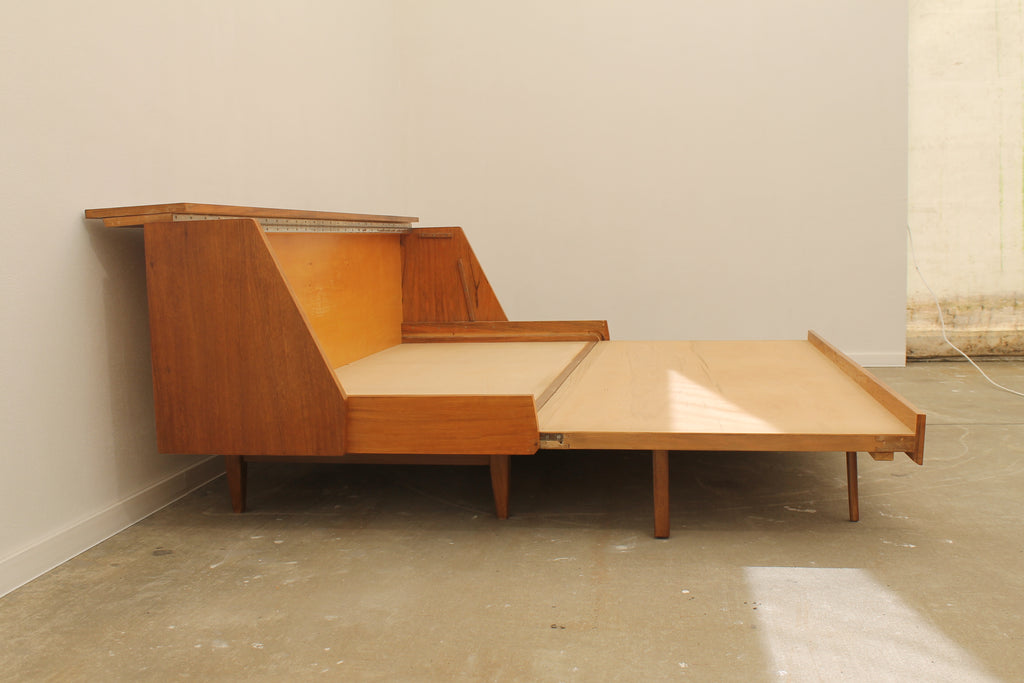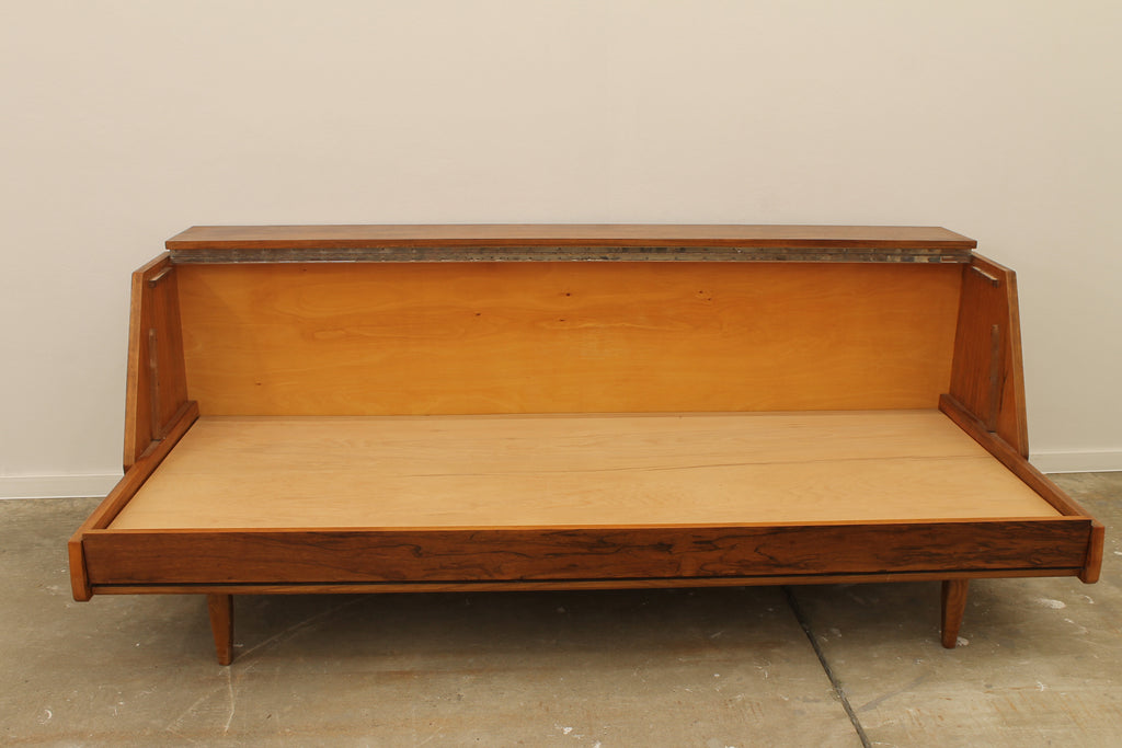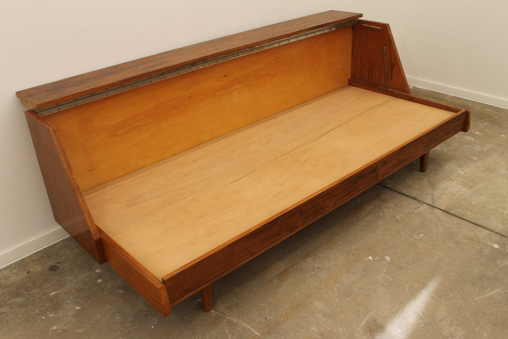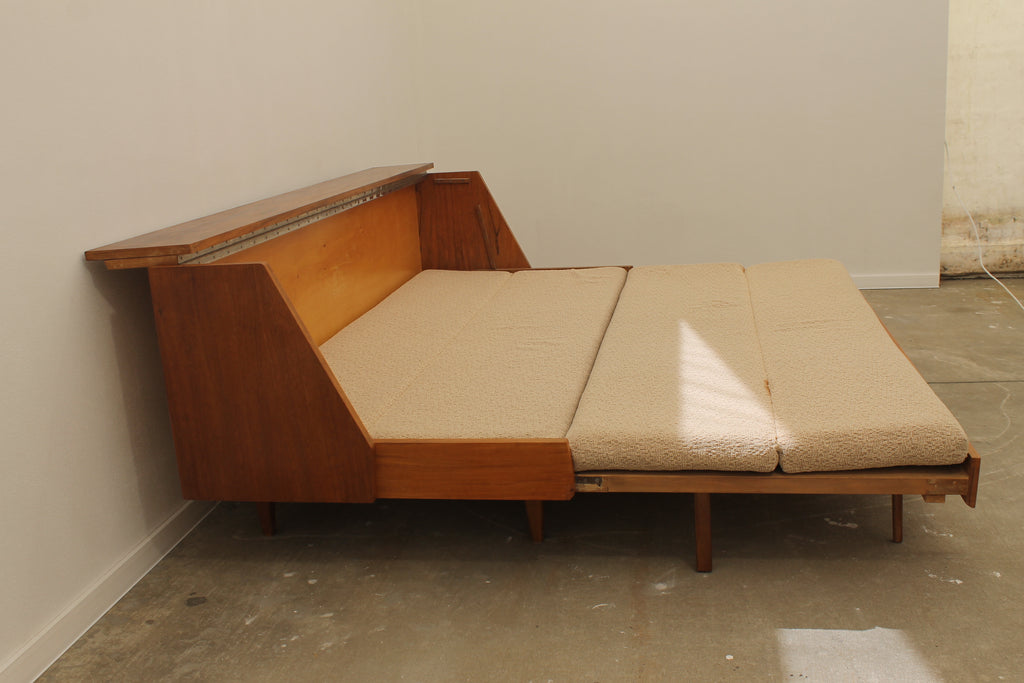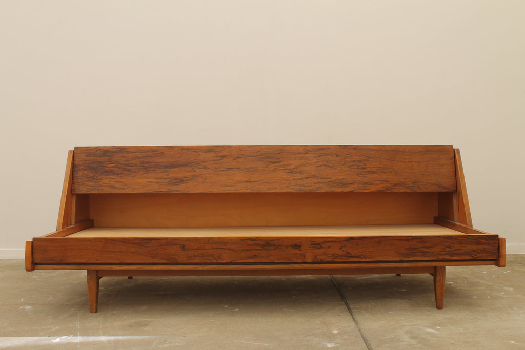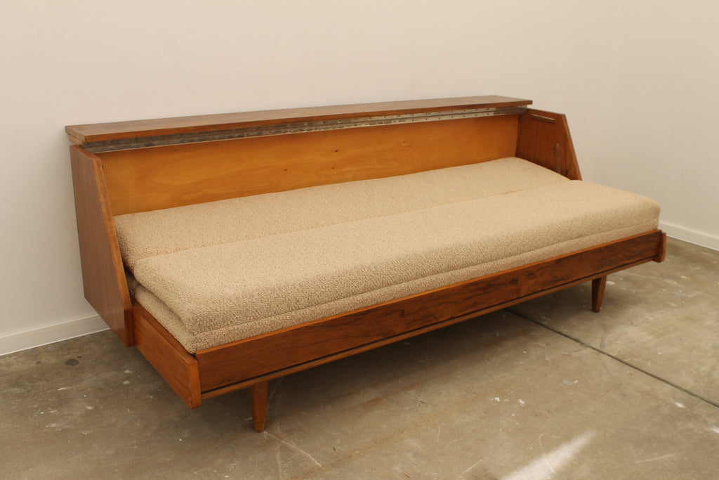 Canapé-lit pliant du milieu du siècle en noyer, années 1970, Tchécoslovaquie