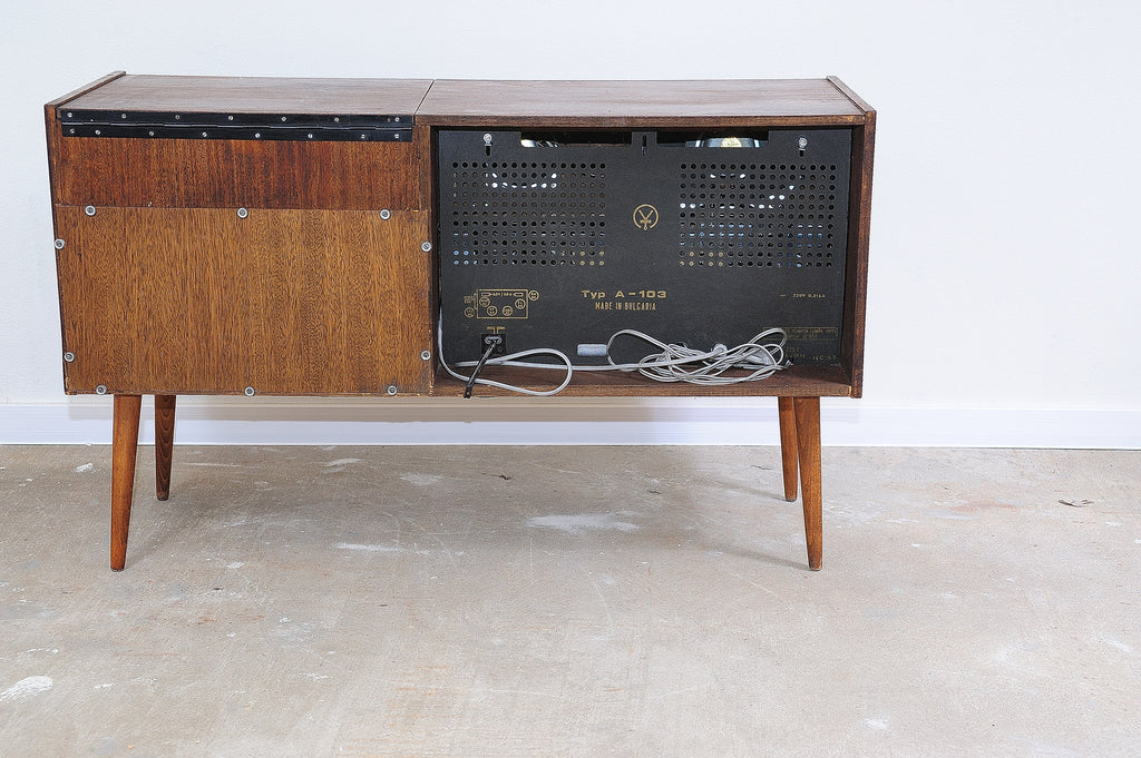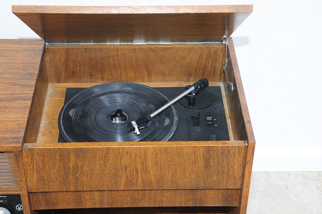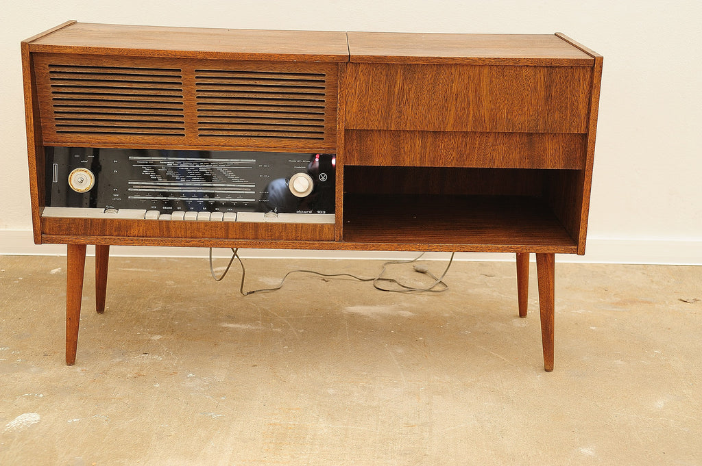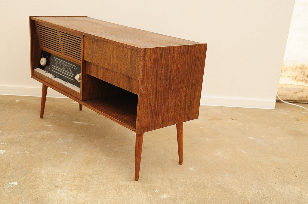 Meuble du milieu du siècle avec gramophone et radio intégrés, années 1950