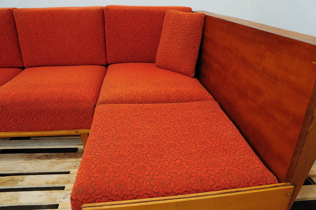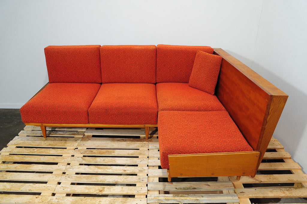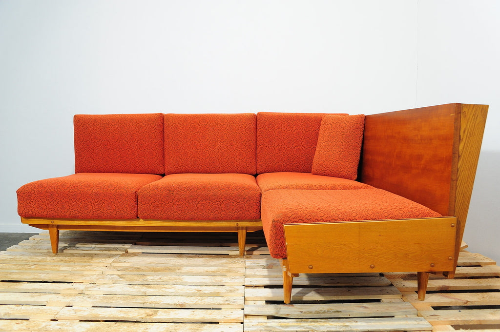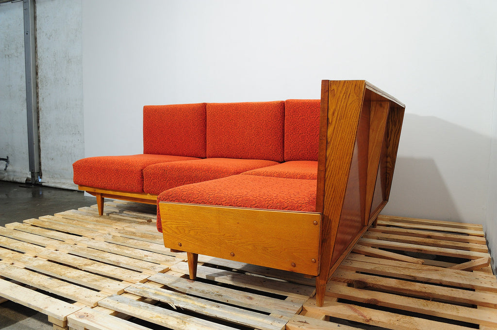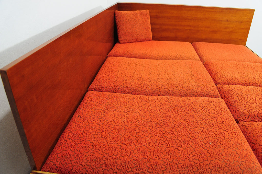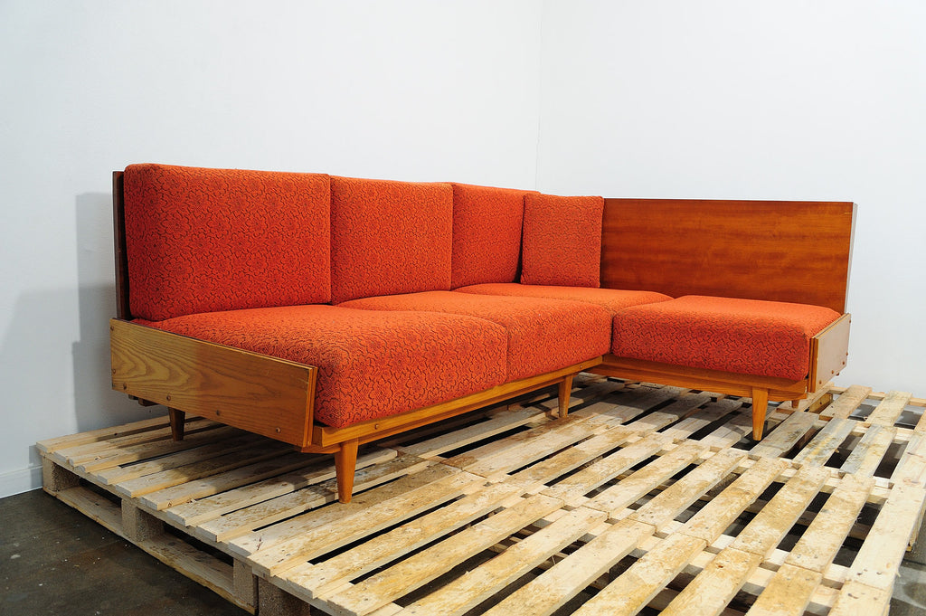 Canapé-lit d'angle du milieu du siècle fabriqué dans l'ancienne Tchécoslovaquie dans les années 1960.