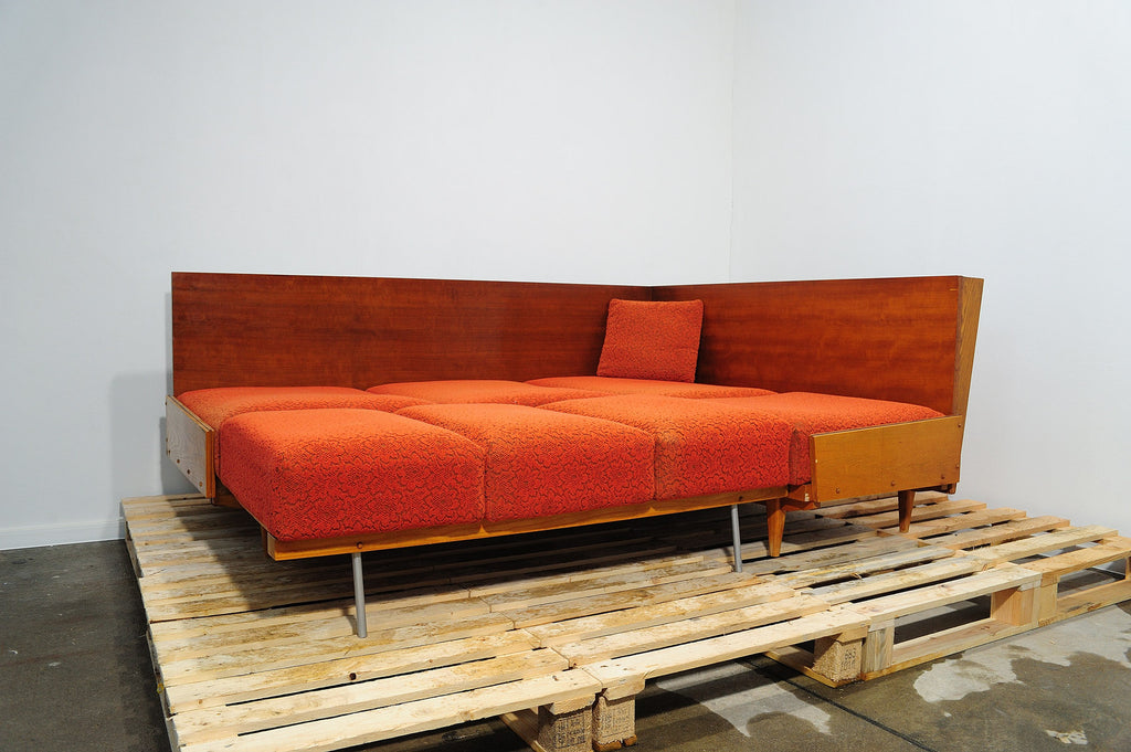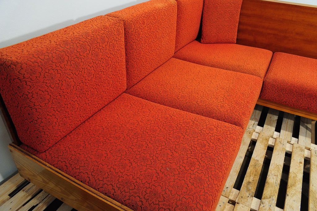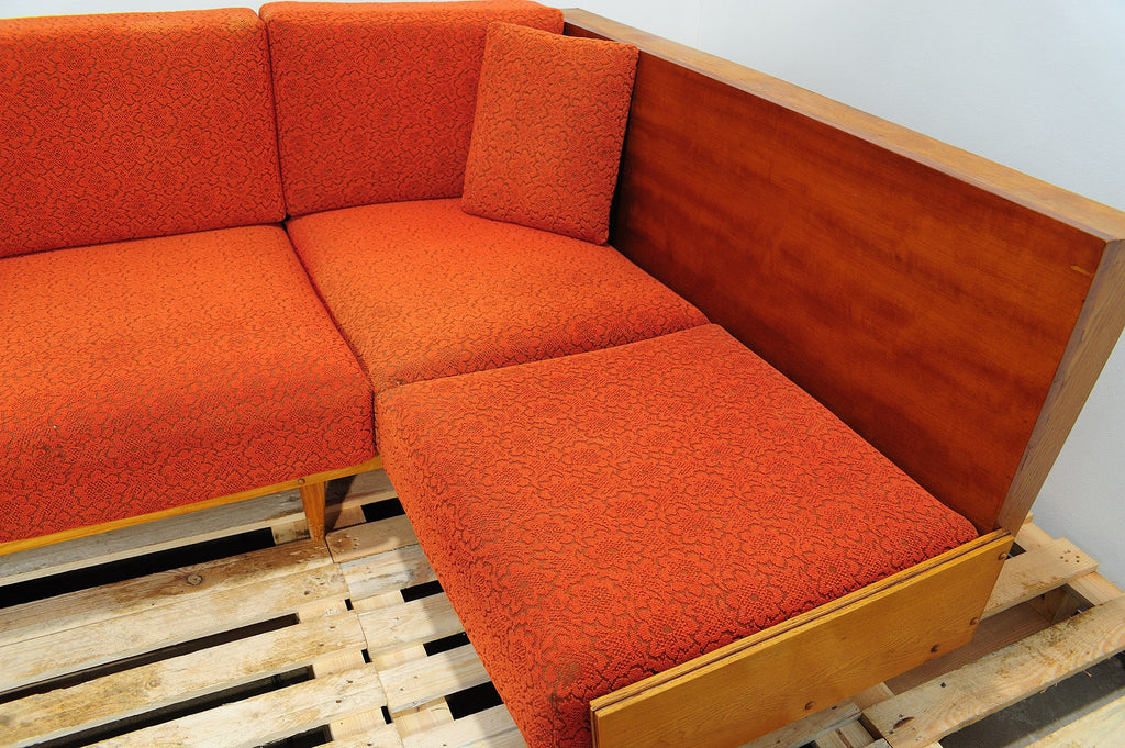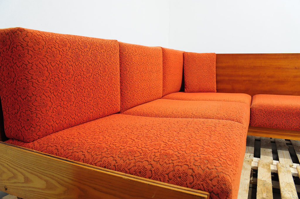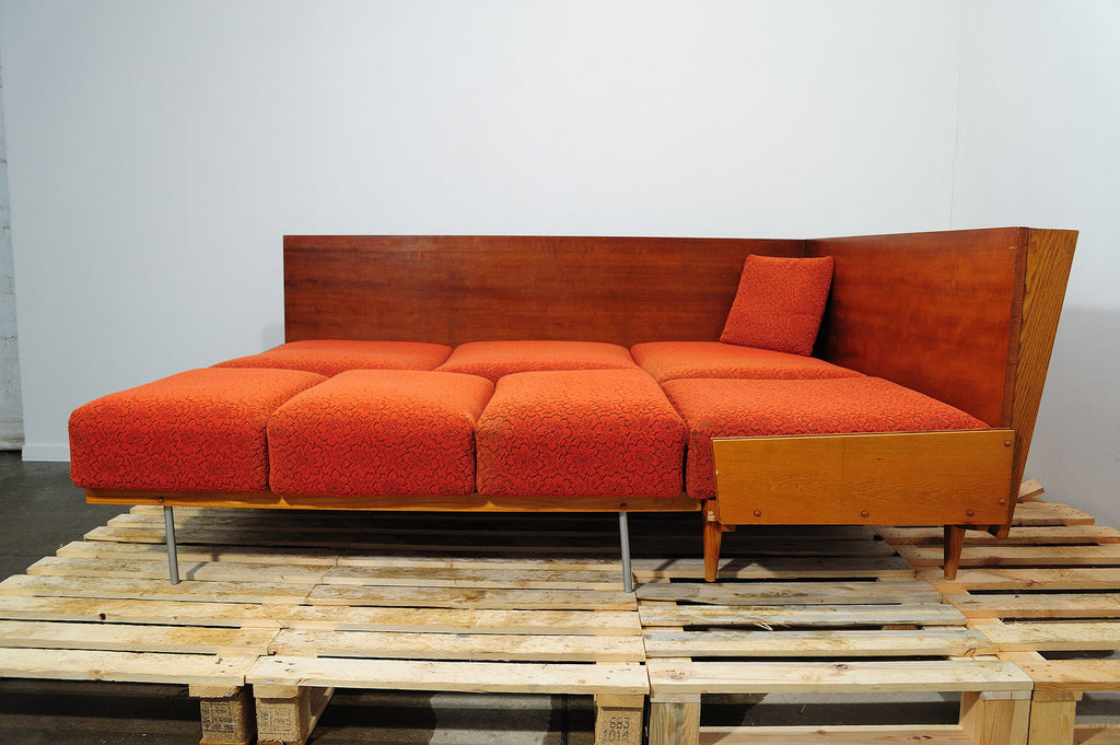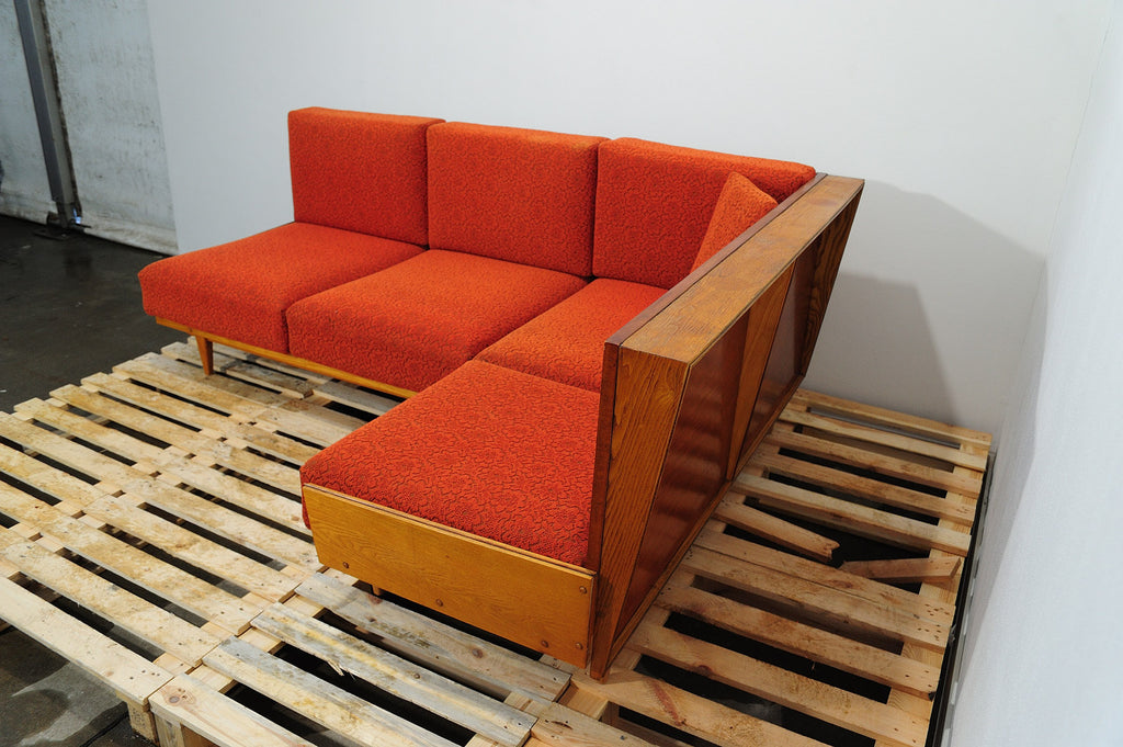 Canapé-lit d'angle du milieu du siècle fabriqué dans l'ancienne Tchécoslovaquie dans les années 1960.