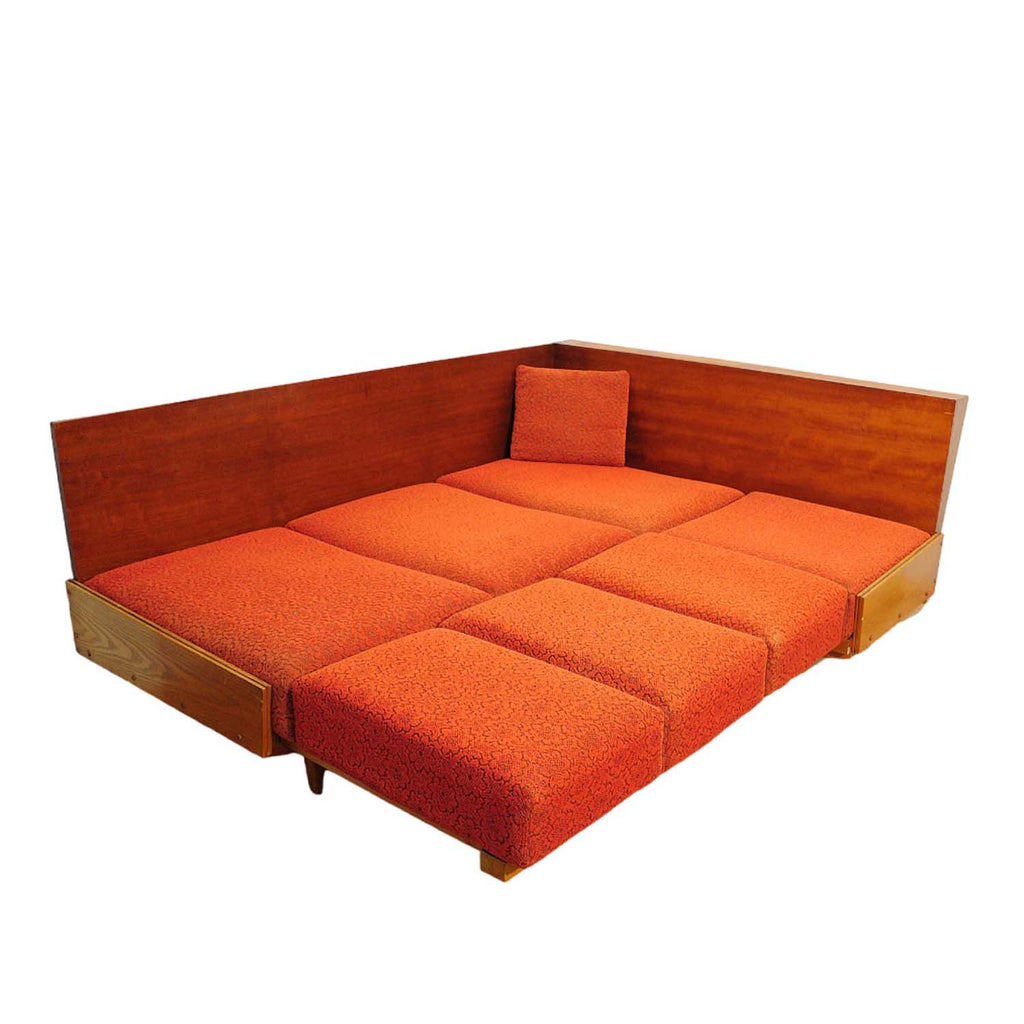 Canapé-lit d'angle pliant du milieu du siècle, Tchécoslovaquie, années 1960