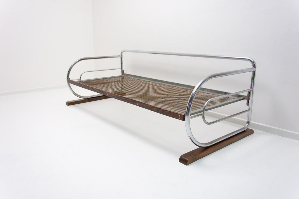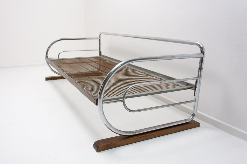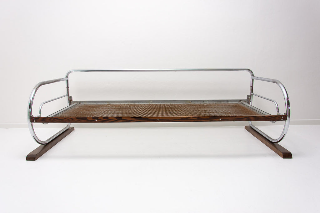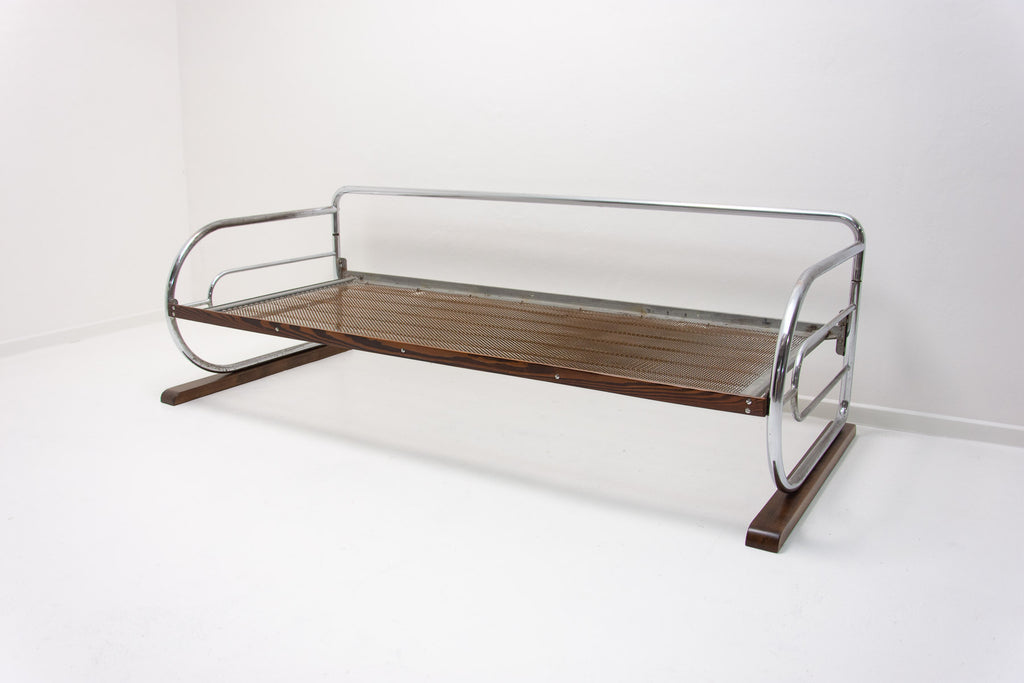 Canapé Bauhaus chromé du milieu du siècle par Hynek Gottwald, Bohême, années 1930