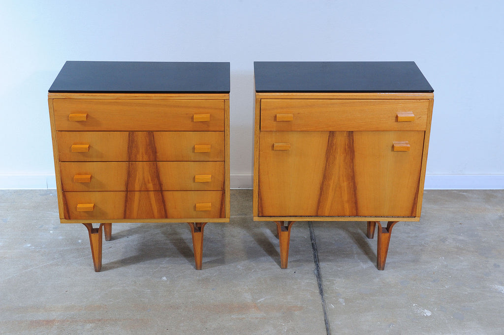 Paire de tables de nuit du milieu du siècle, commode de Frantisek Mezulanik, Nový Domov, années 1970