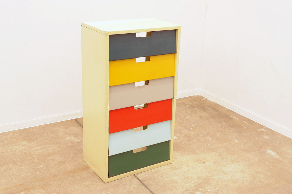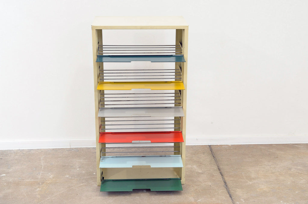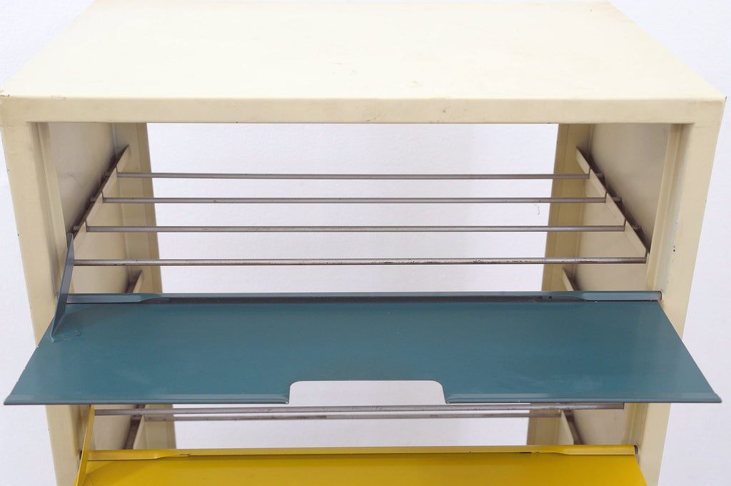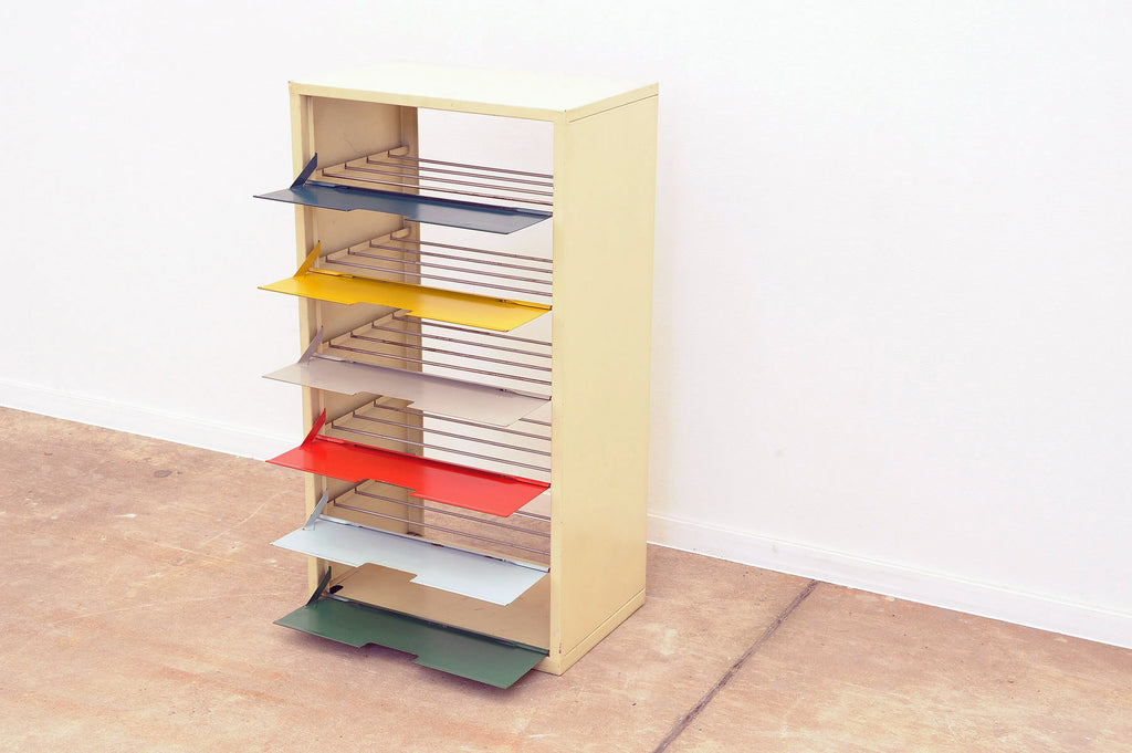 Étagère à chaussures en tôle colorée du milieu du siècle, bloc de l'Est, années 1960