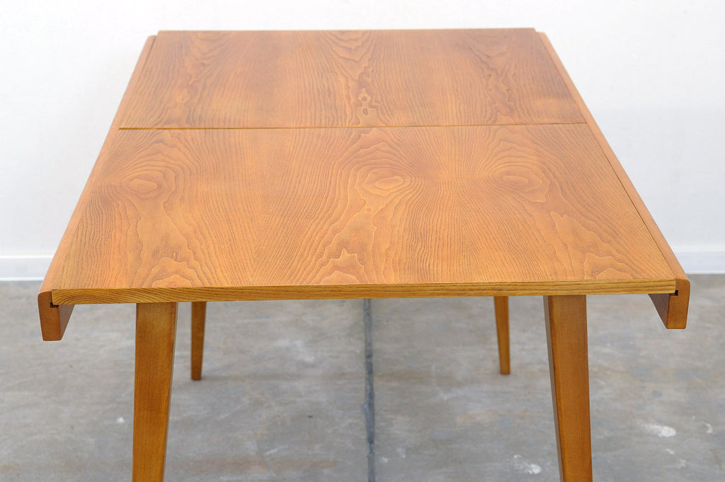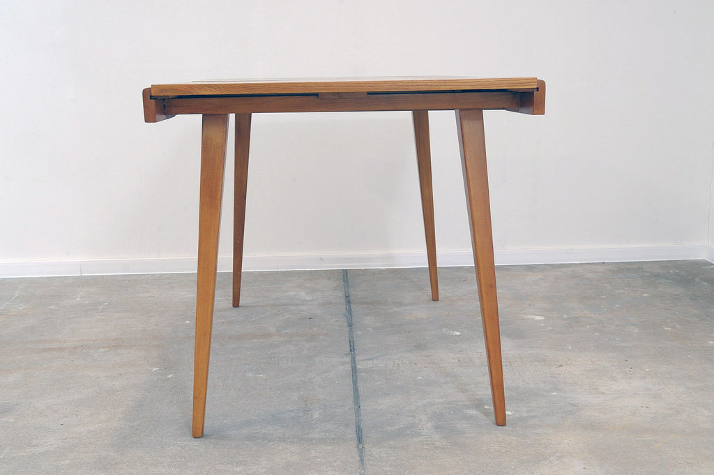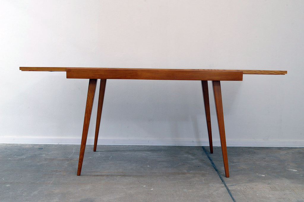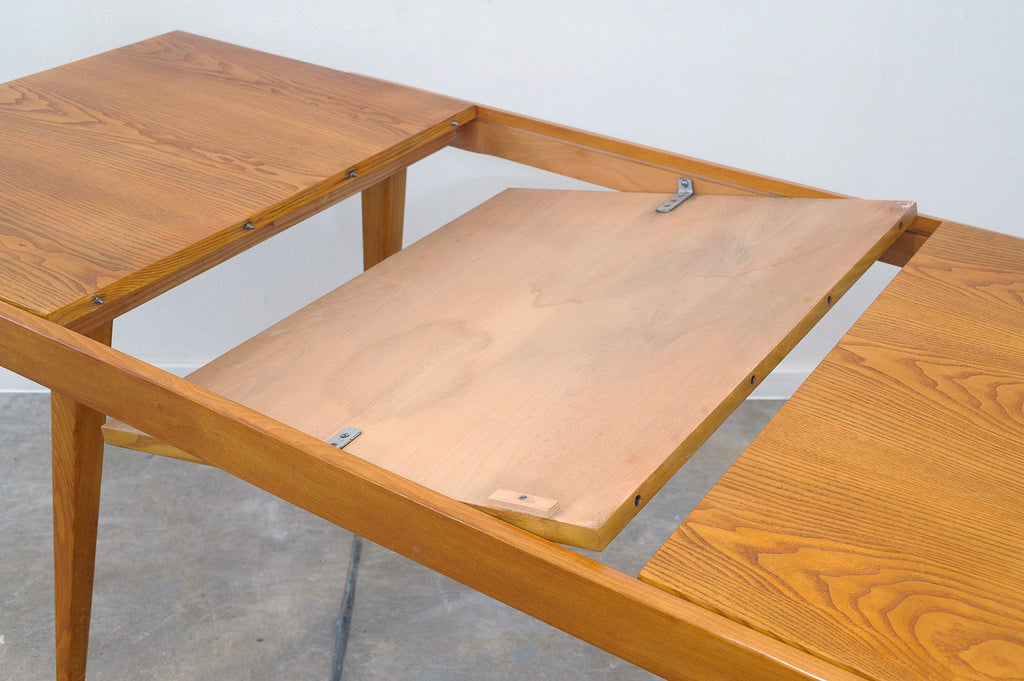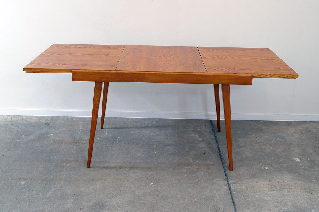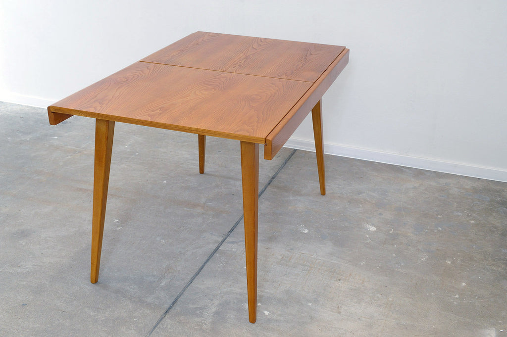 Cette table à manger réglable du milieu du siècle a été conçue par Frantisek Jirák pour Tatra nábytok et fabriquée dans l'ancienne Tchécoslovaquie dans les années 1970. Elle est en frêne et en hêtre. Sa longueur est réglable de 120 cm à 180 cm. Entièrement rénovée, elle est en excellent état.