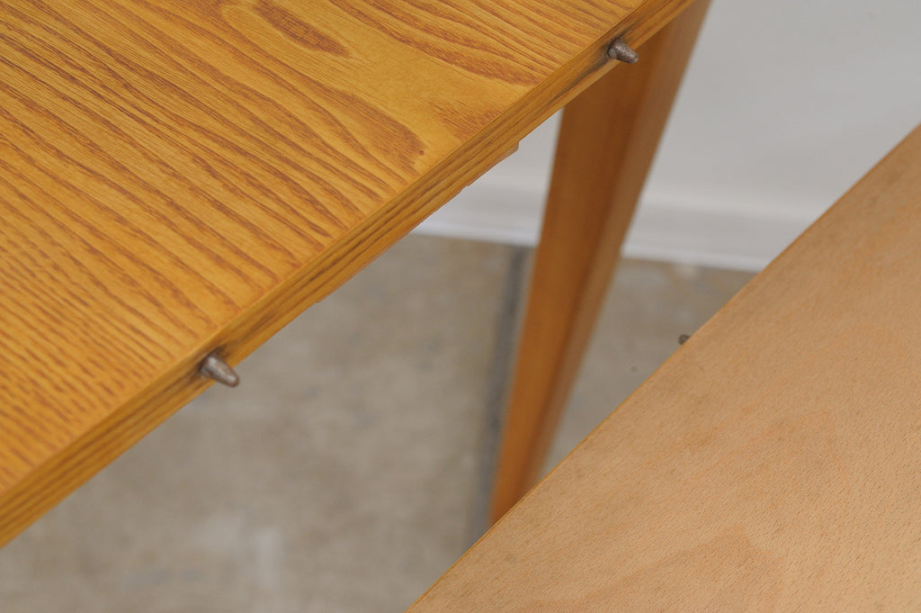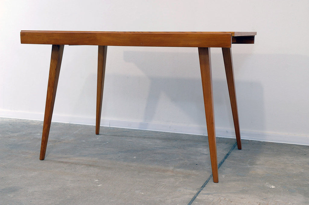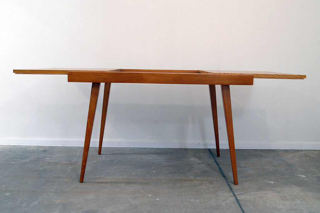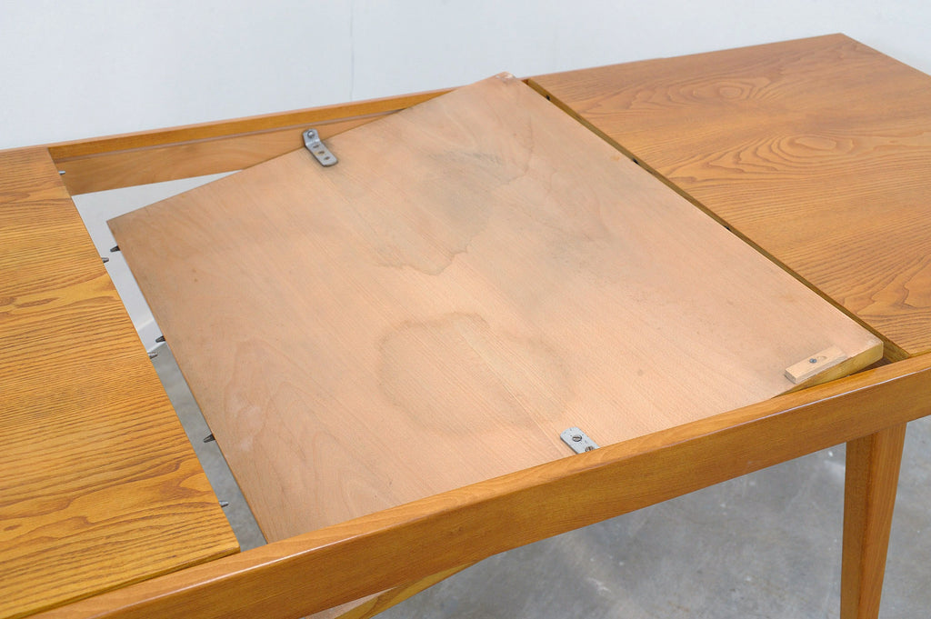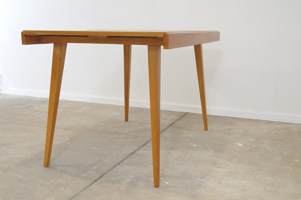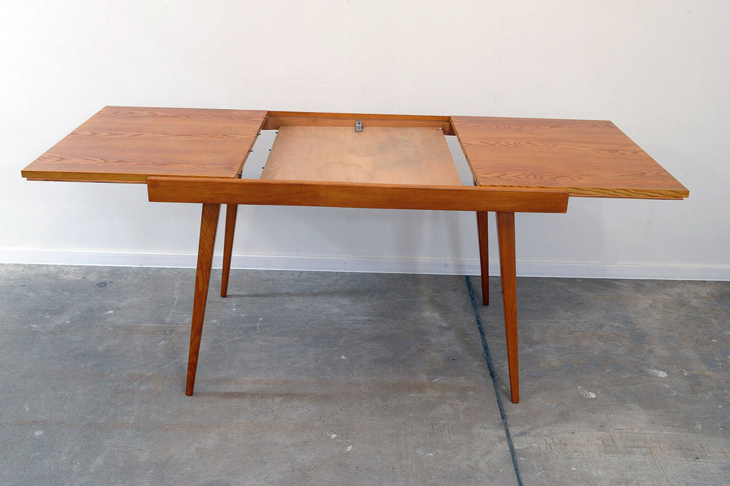 Cette table à manger réglable du milieu du siècle a été conçue par Frantisek Jirák pour Tatra nábytok et fabriquée dans l'ancienne Tchécoslovaquie dans les années 1970. Elle est en frêne et en hêtre. Sa longueur est réglable de 120 cm à 180 cm. Entièrement rénovée, elle est en excellent état.