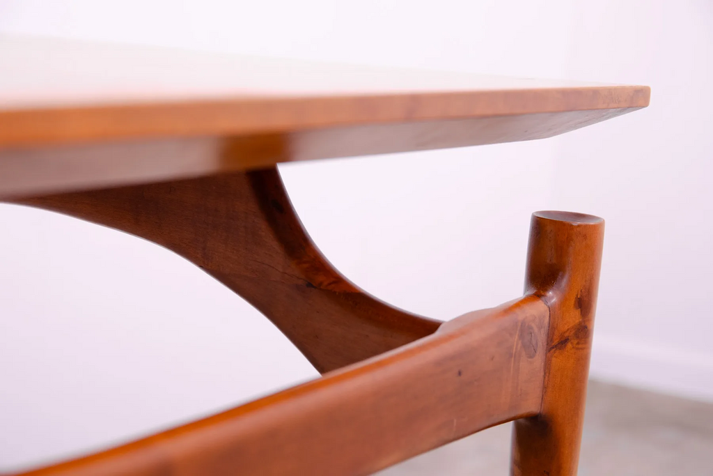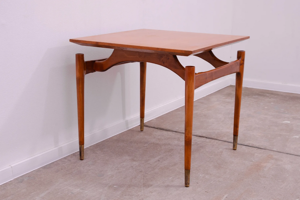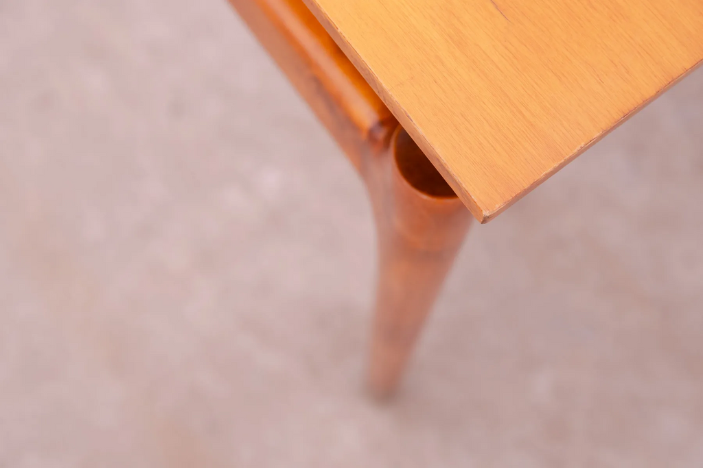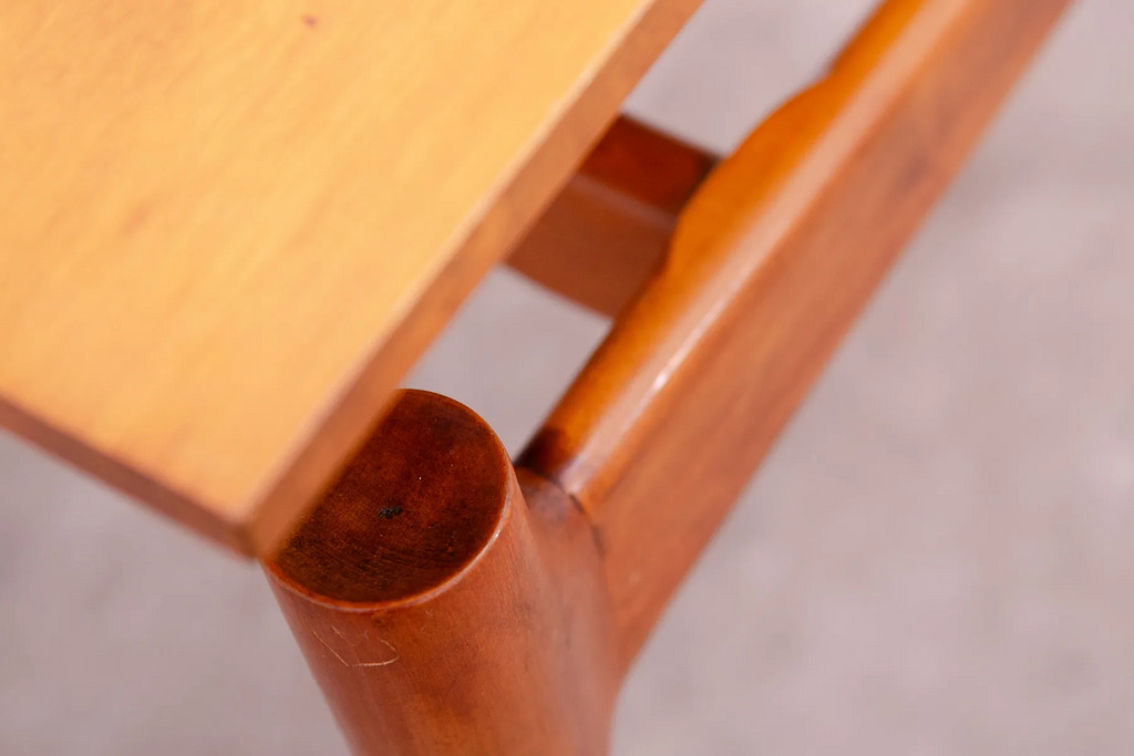 Table d'appoint du milieu du siècle des années 1960. Ces meubles ont été conçus par Karel Vyčítal et Milos Sedláček pour Dřevotvar Jablonné nad Orlicí dans l'ancienne Tchécoslovaquie. Milos Sedláček et Karel Vyčítal étaient de grands architectes tchécoslovaques d'après-guerre qui travaillaient pour le cabinet tchécoslovaque Dřevotvar Jablonné nad Orlicí. Leur travail s'inspire évidemment du design scandinave d'après-guerre, dont ils se sont non seulement inspirés, mais ont tenté de le modifier de diverses manières. Ce meuble est fabriqué en bois de hêtre de haute qualité.