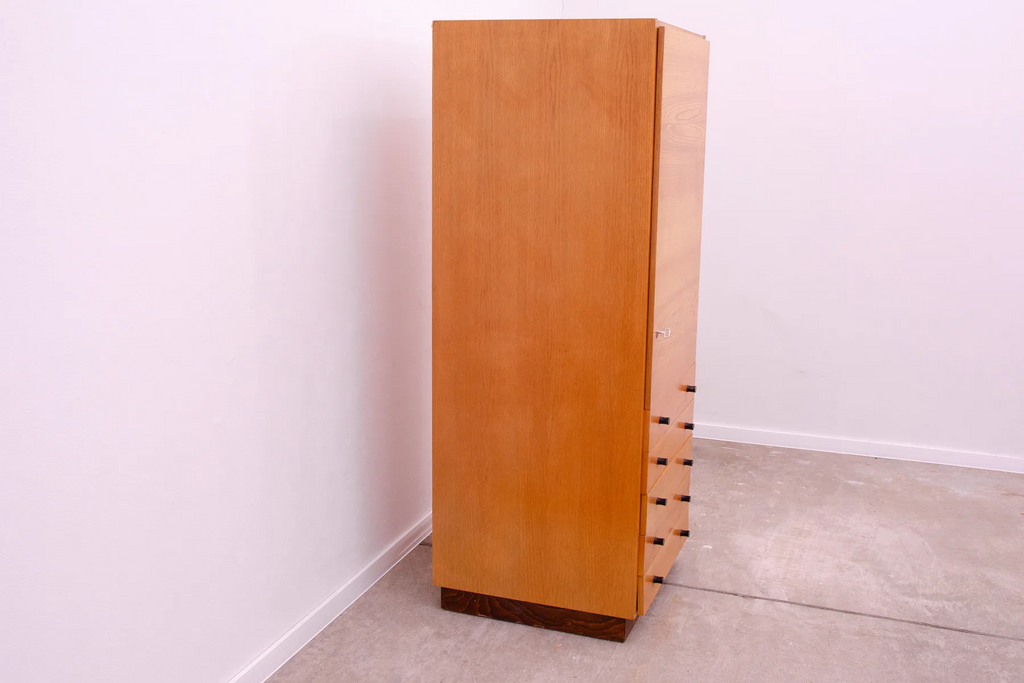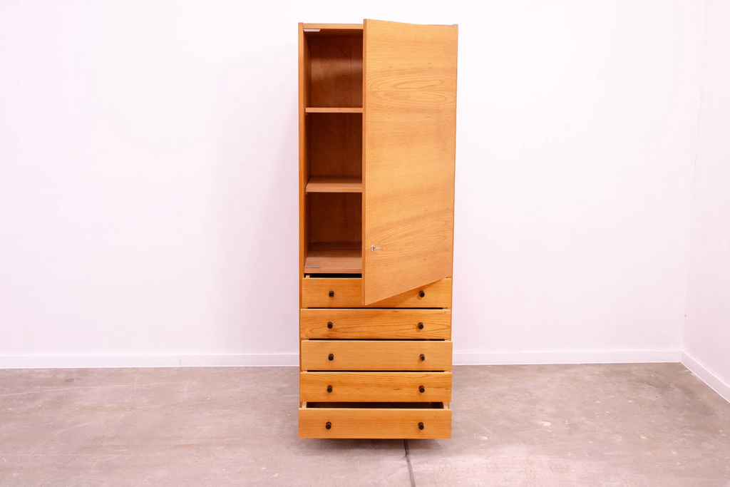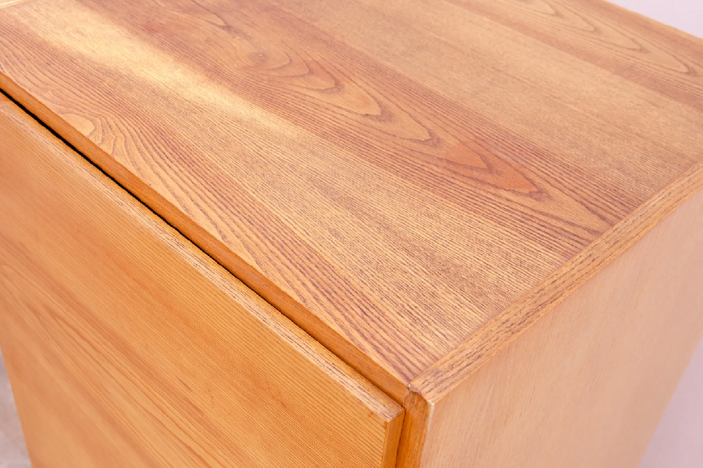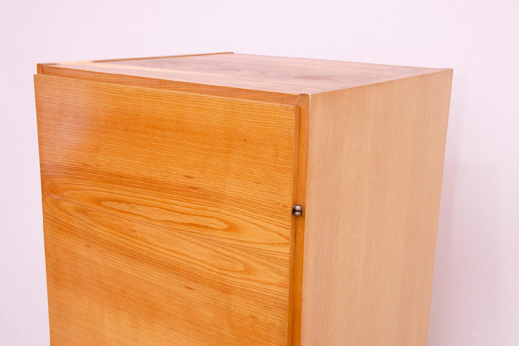 Commode polyvalente, conçue par Mojmír Požár pour ÚP Závody dans les années 1960. Fabriquée en frêne, orme, érable, noyer, bouleau et peuplier, elle est en bon état vintage et présente de légers signes d'usure.