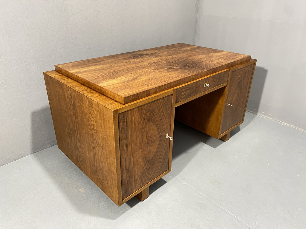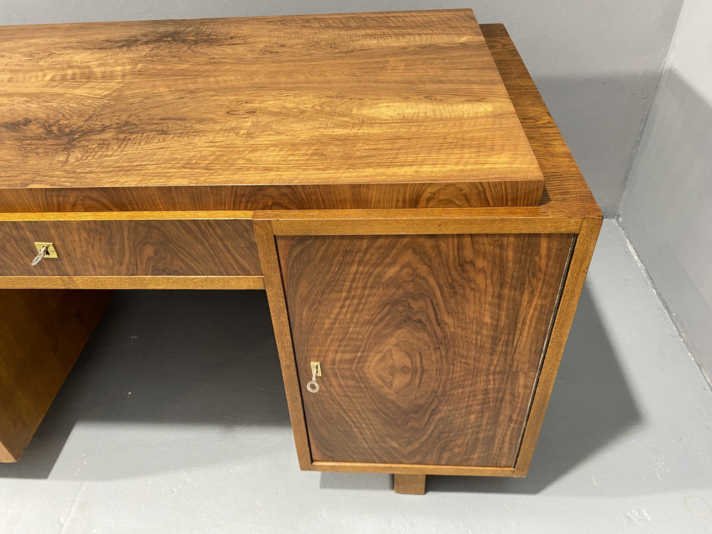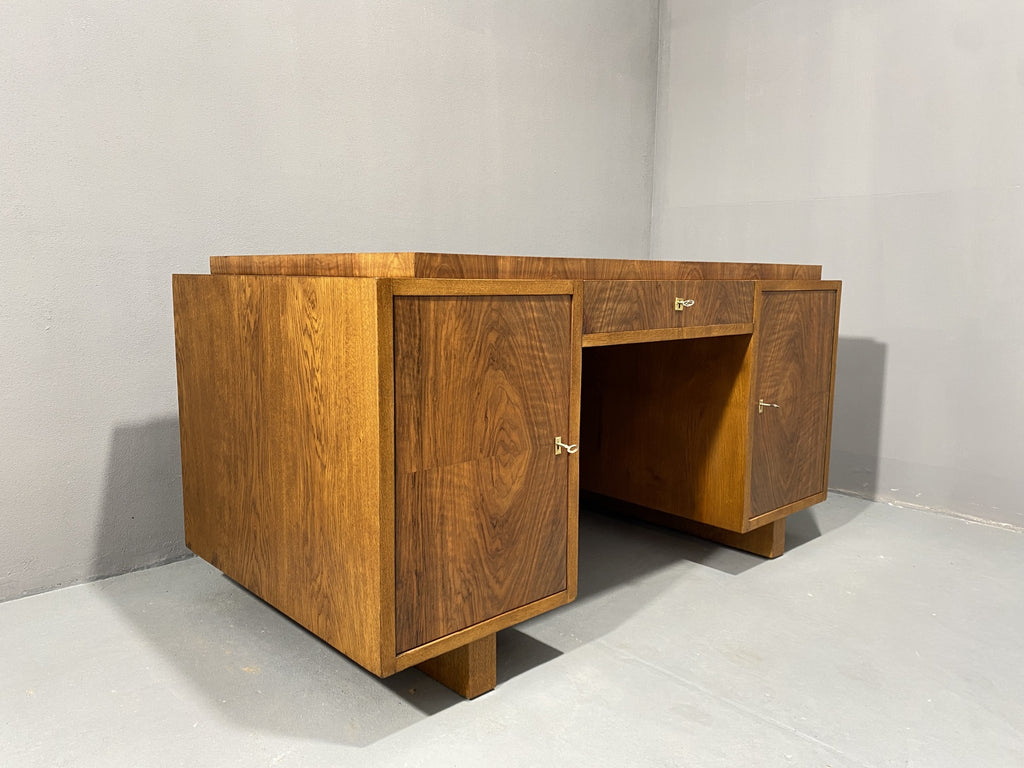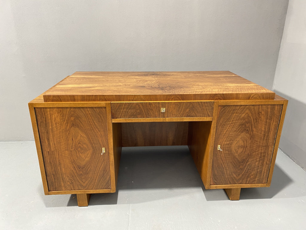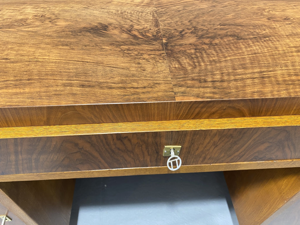 Ce bureau Art déco entièrement rénové est un superbe meuble qui apportera du caractère à n'importe quelle pièce. Avec son design vintage et ses détails raffinés, il ne manquera pas de faire forte impression. Fabriqué dans les années 1930 en Europe centrale, plus précisément en Tchécoslovaquie, il a été magnifiquement restauré pour retrouver sa splendeur d'origine. Il a longtemps servi dans le bureau d'un ingénieur civil à Prague, dont la famille l'avait fait fabriquer sur commande dans les années 1930.