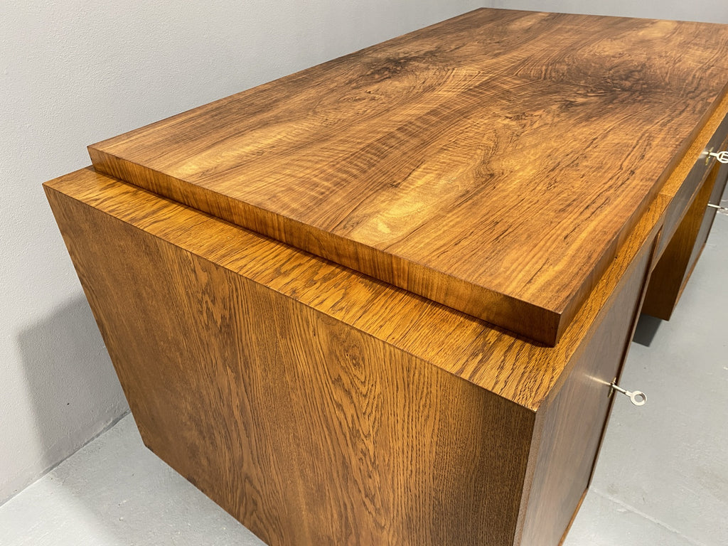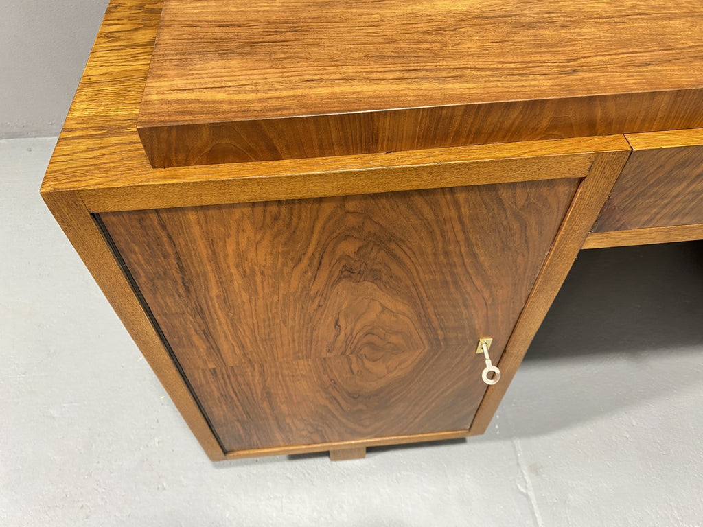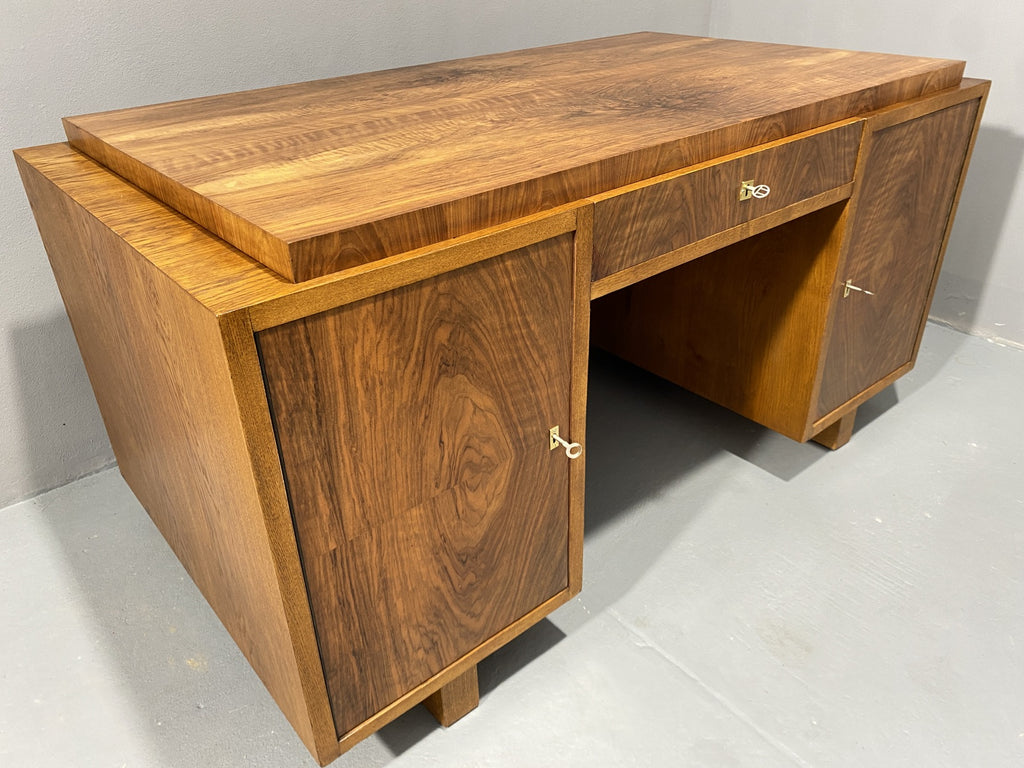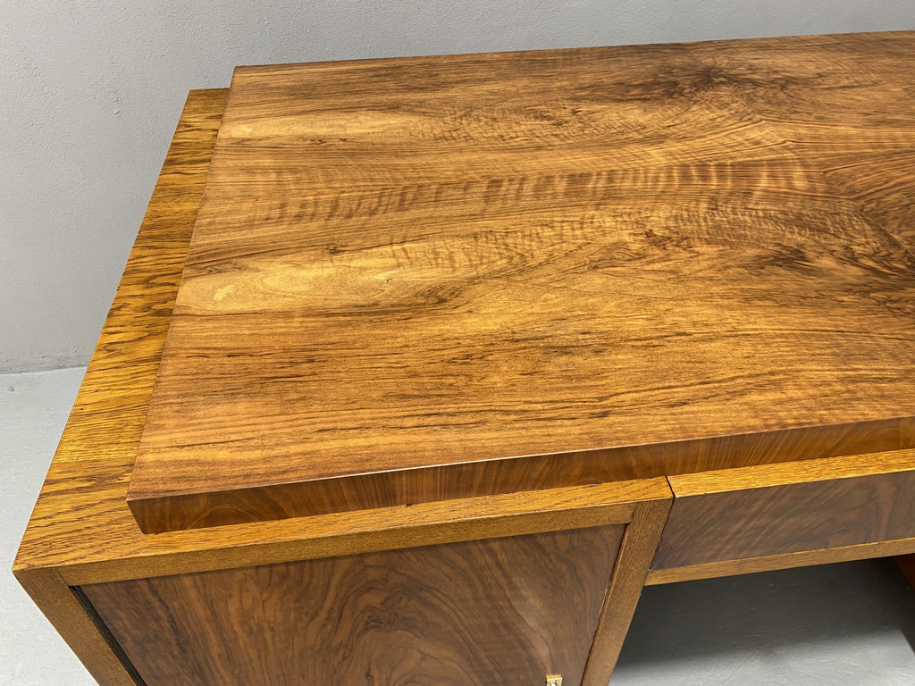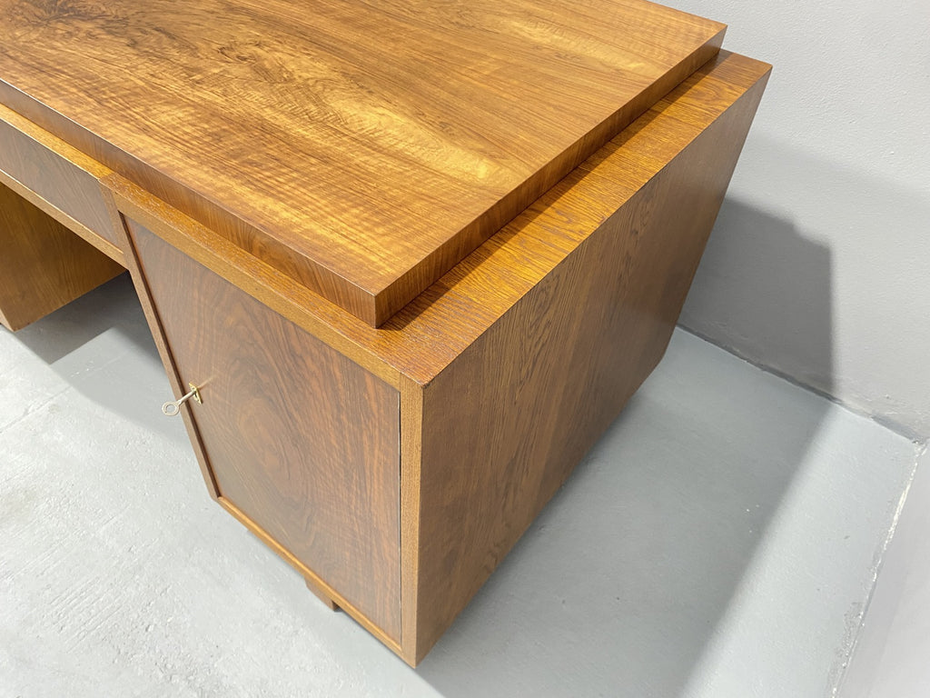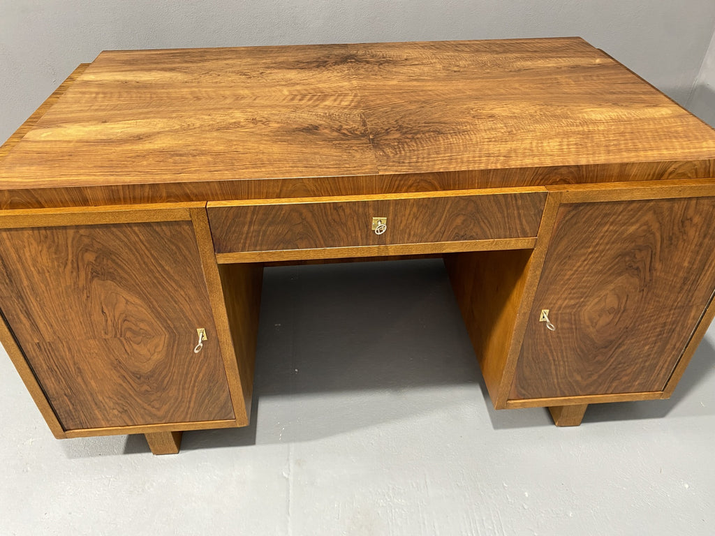 Ce bureau Art déco entièrement rénové est un superbe meuble qui apportera du caractère à n'importe quelle pièce. Avec son design vintage et ses détails raffinés, il ne manquera pas de faire forte impression. Fabriqué dans les années 1930 en Europe centrale, plus précisément en Tchécoslovaquie, il a été magnifiquement restauré pour retrouver sa splendeur d'origine. Il a longtemps servi dans le bureau d'un ingénieur civil à Prague, dont la famille l'avait fait fabriquer sur commande dans les années 1930.