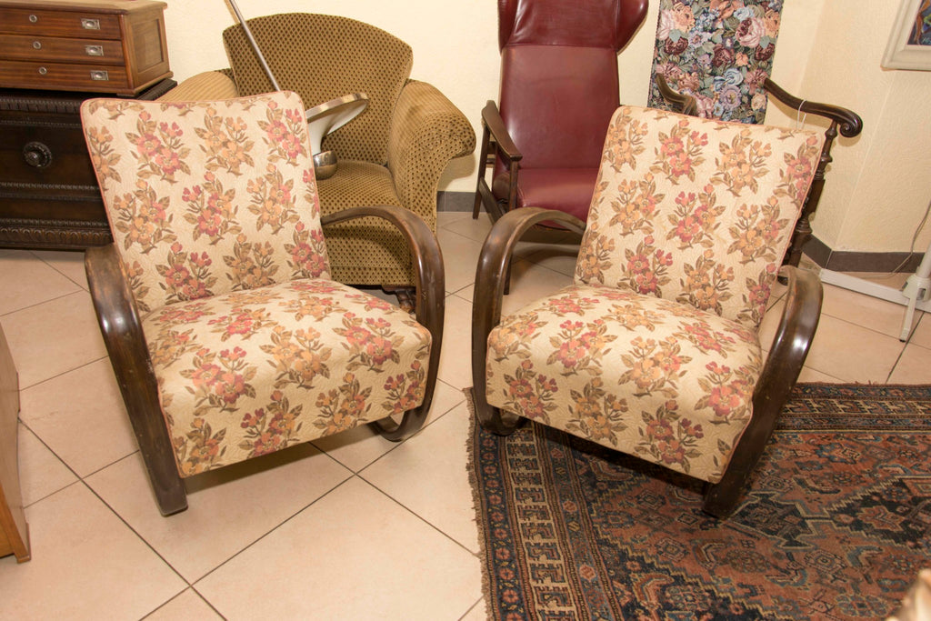Jindrich Halabala, Paire de fauteuils Lounge en bois courbé H-269