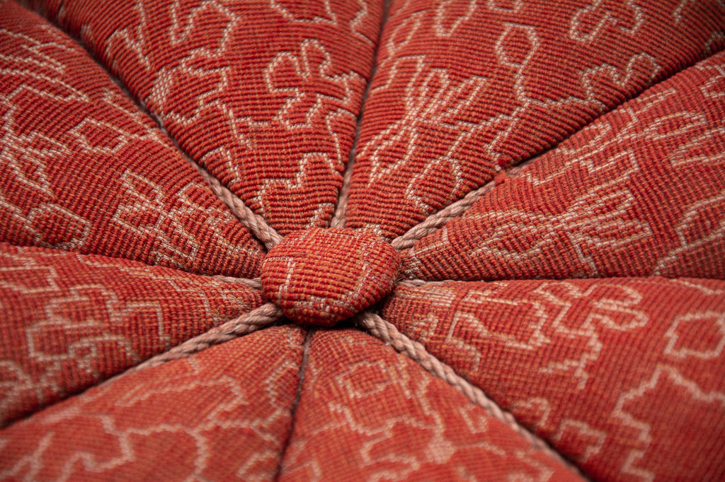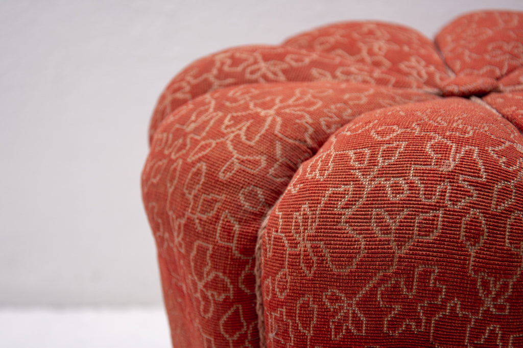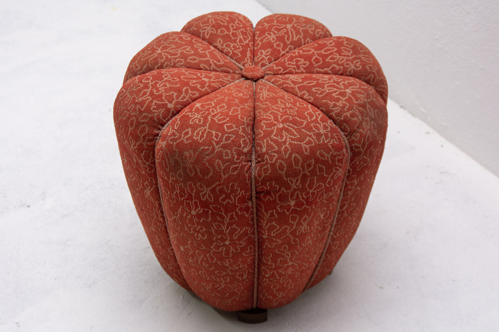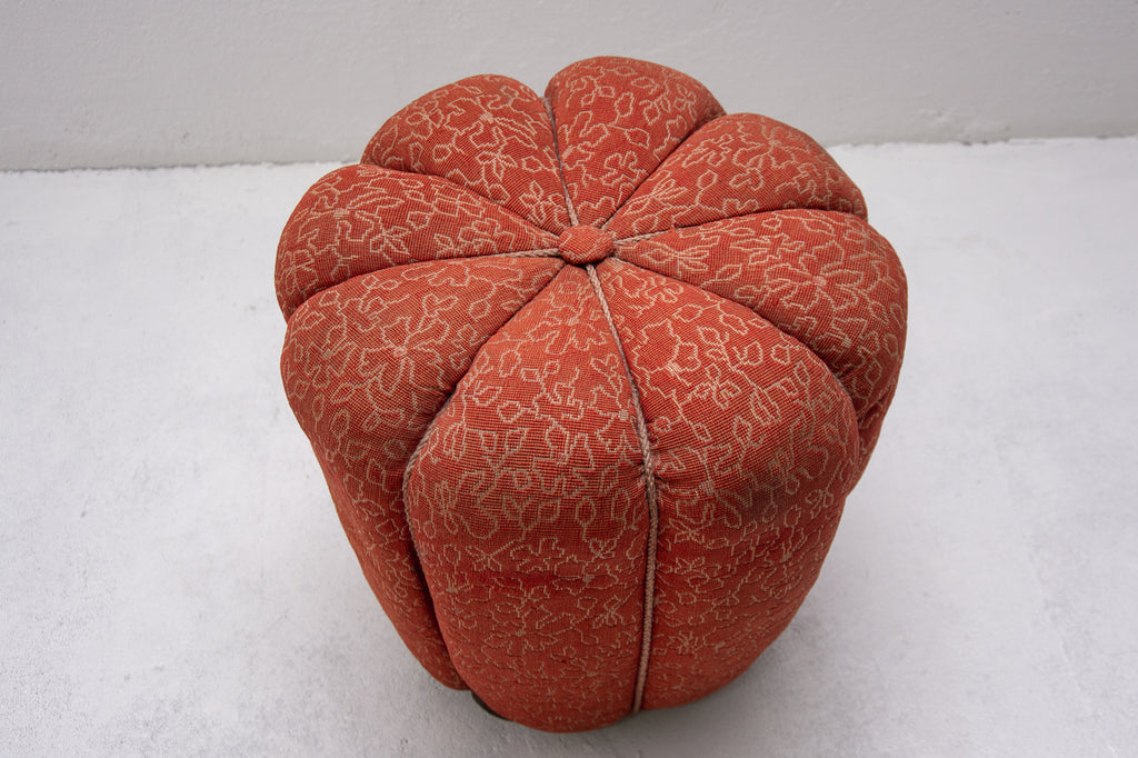 Pouf de Jindřich Halabala, conçu dans les années 1930 et produit dans les années 1950. Un pouf rétro chic très confortable en forme de framboise. En bon état vintage, il présente quelques traces d'usure.
