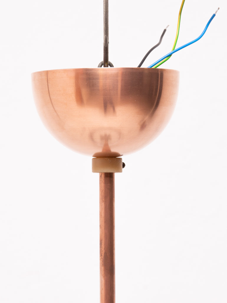 La lampe est équipée de six douilles E27 en bakélite. En très bon état vintage. Câblage neuf.