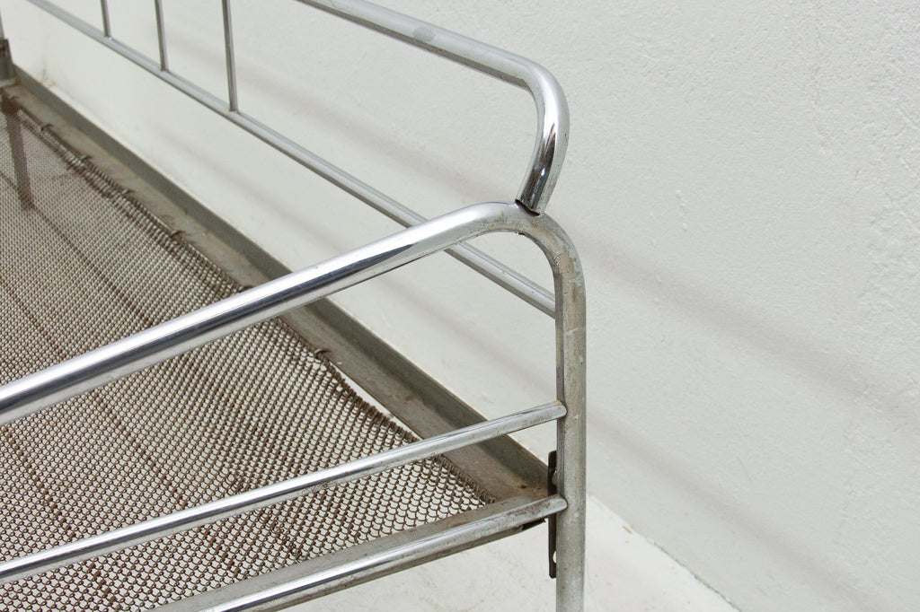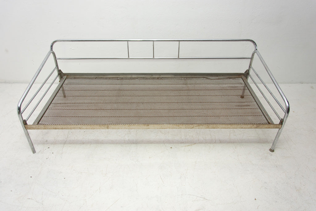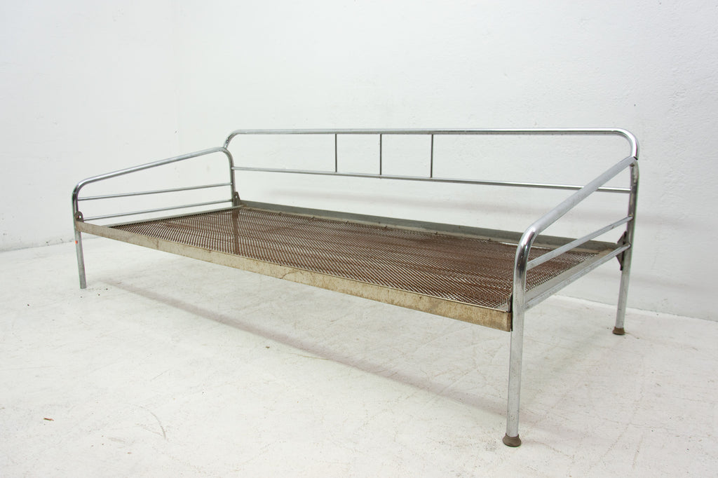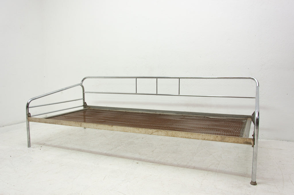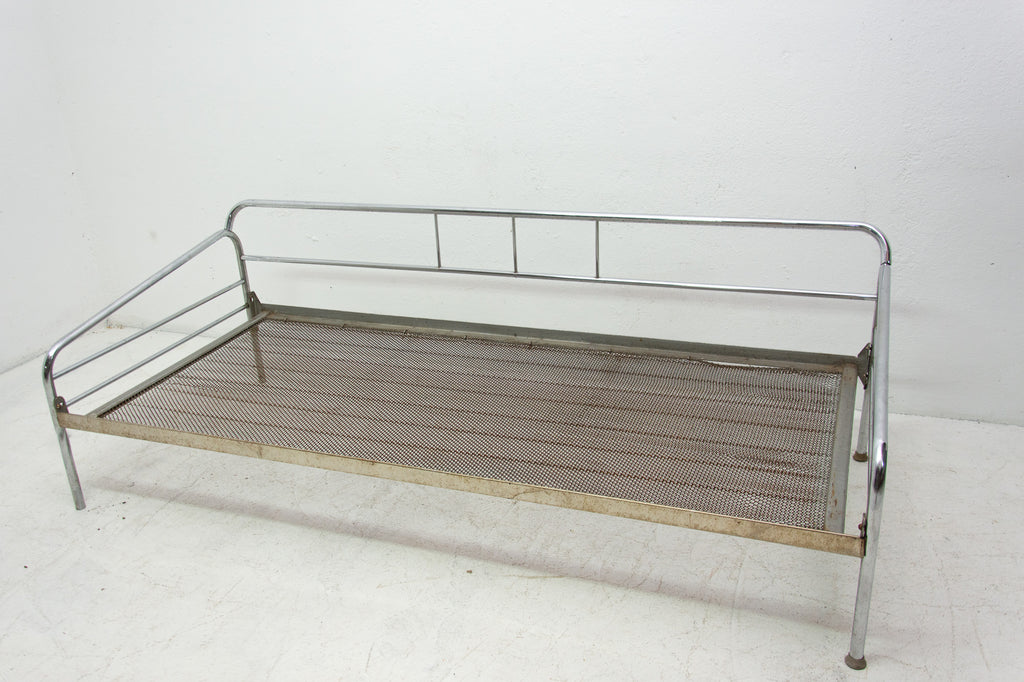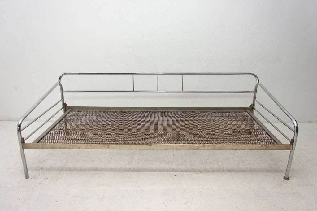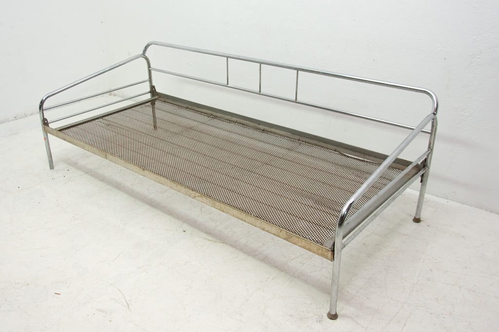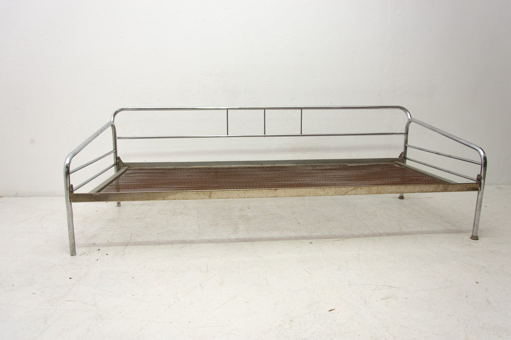 Canapé en tube d'acier chromé de l'époque Bauhaus, années 1930, Bohême. Probablement fabriqué par Hynek Gottwald. Le chrome est en bon état général, mais présente quelques signes d'usure.