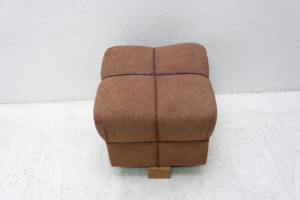 Ce pouf (repose-pieds) a été conçu par Jindřich Halabala et fabriqué par UP Závody dans les années 1950. Il présente un style rétro chic et très confortable. Le revêtement est en bon état, mais présente des traces d'usure.