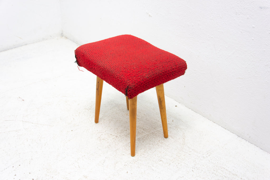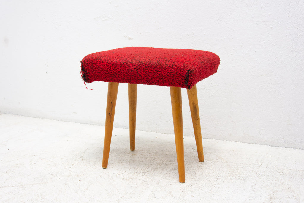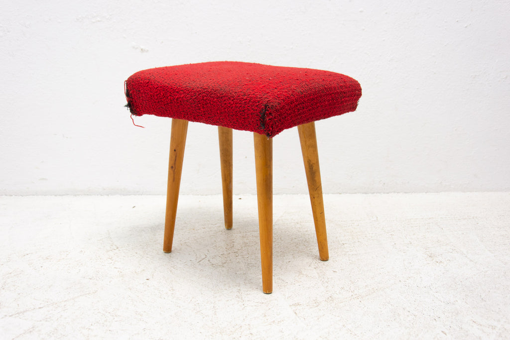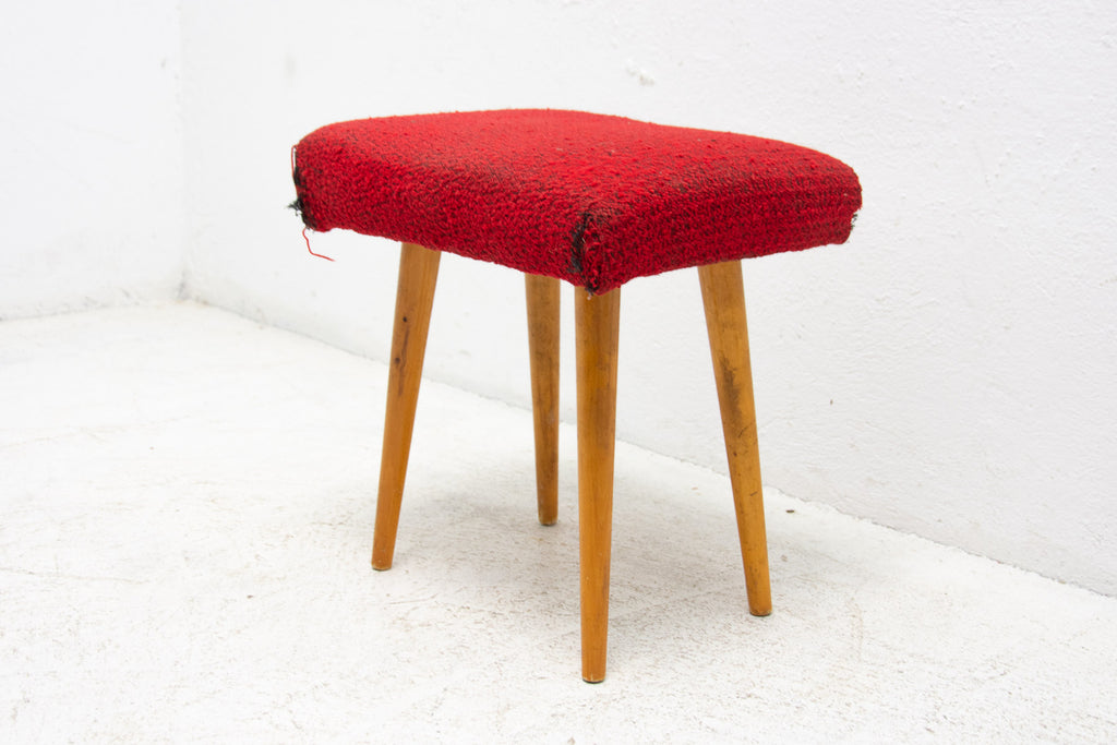 Tabouret rembourré du milieu du siècle, repose-pieds, 1960, Tchécoslovaquie