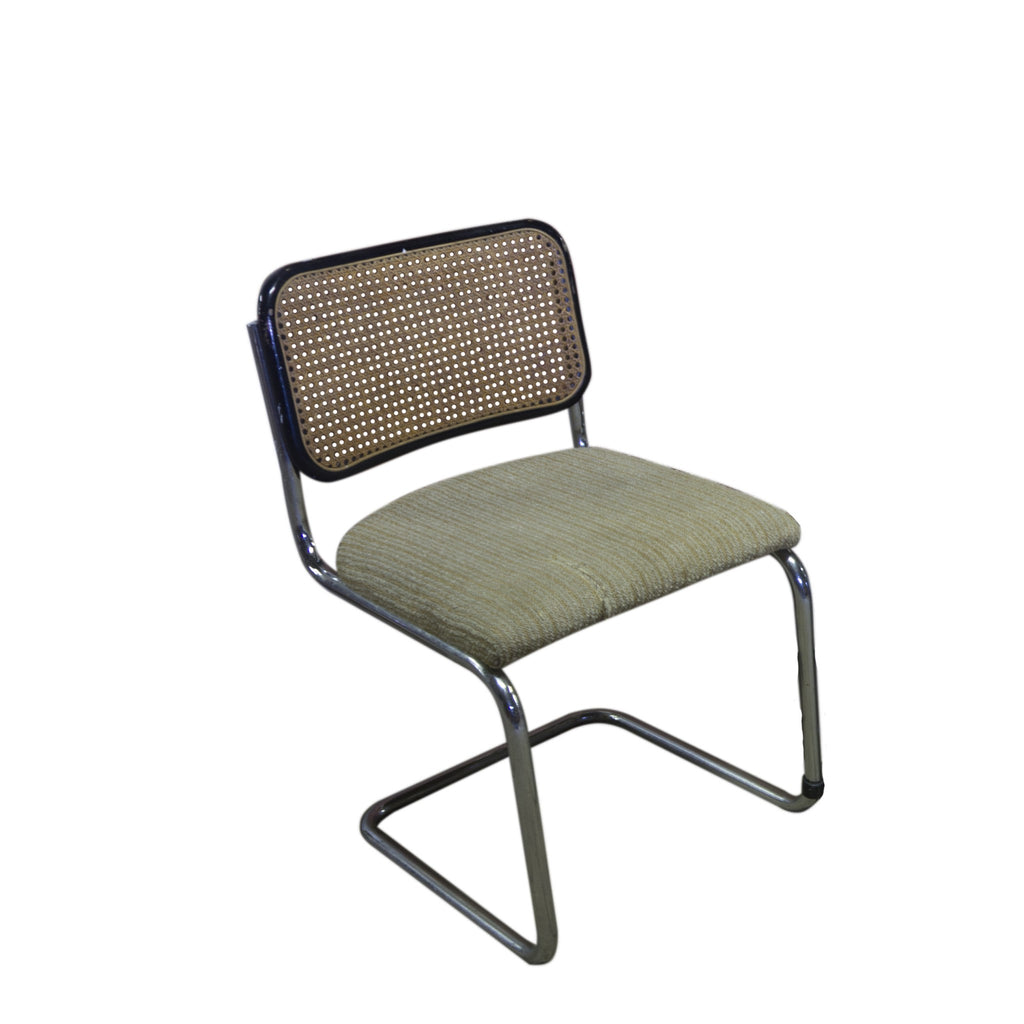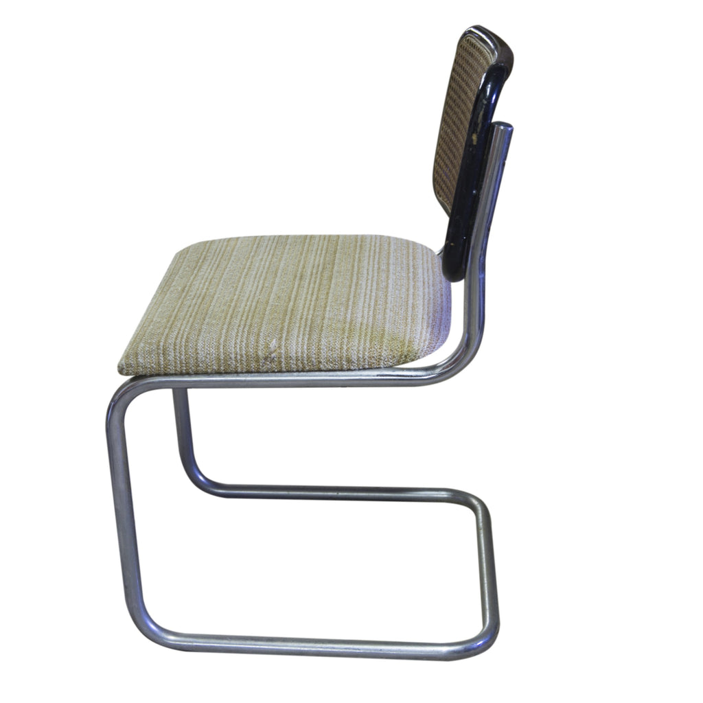 Set of five Vintage Marcel Breuer Cesca Chairs. The chairs are in relatively good vintage condition with minor signs of wear. Upholstered. Designed in 1928 (this set was likely manufactured in the 70’s). Frame of tubular steel. Upholstery on two seats is damaged. See photos. Raffia seat backs in good condition.