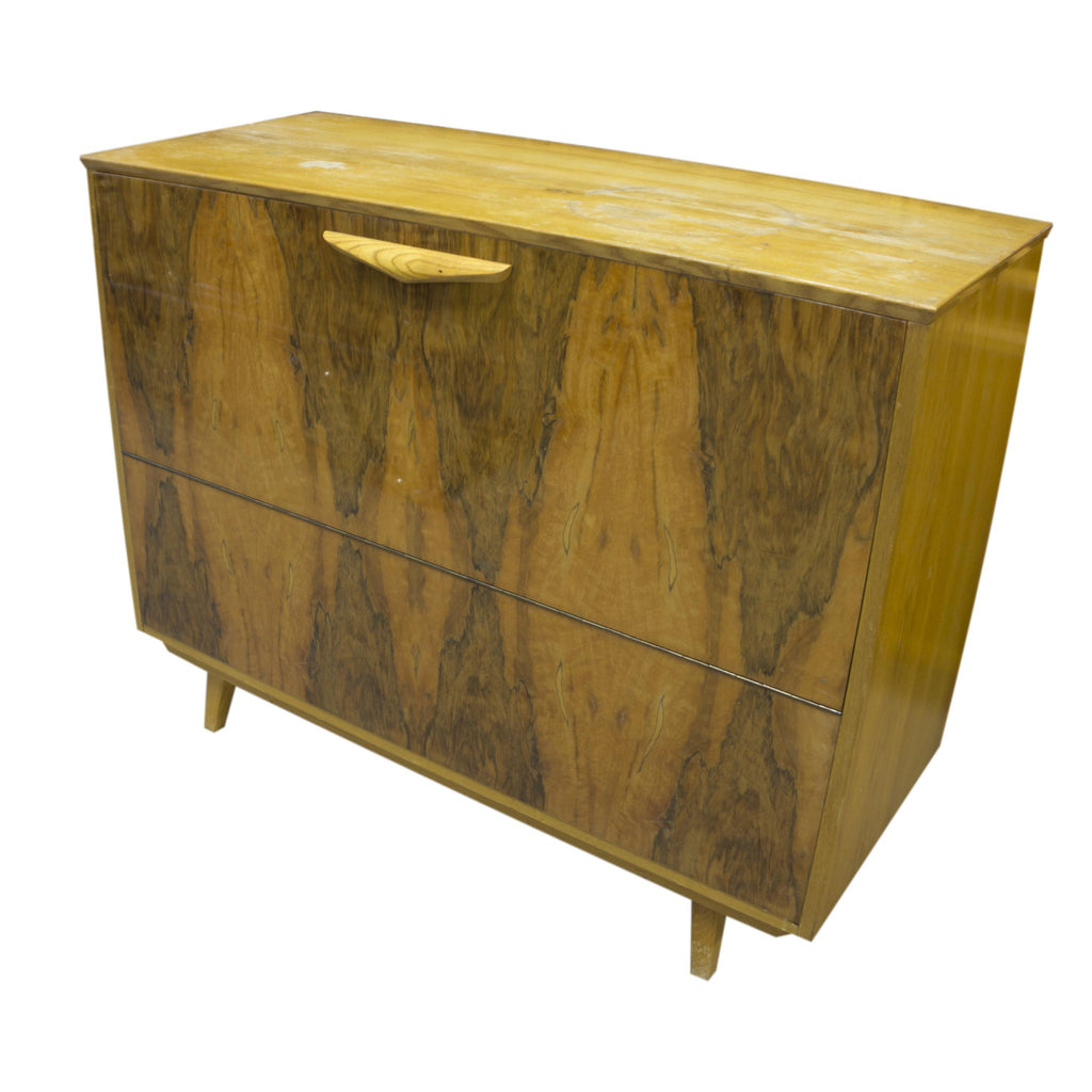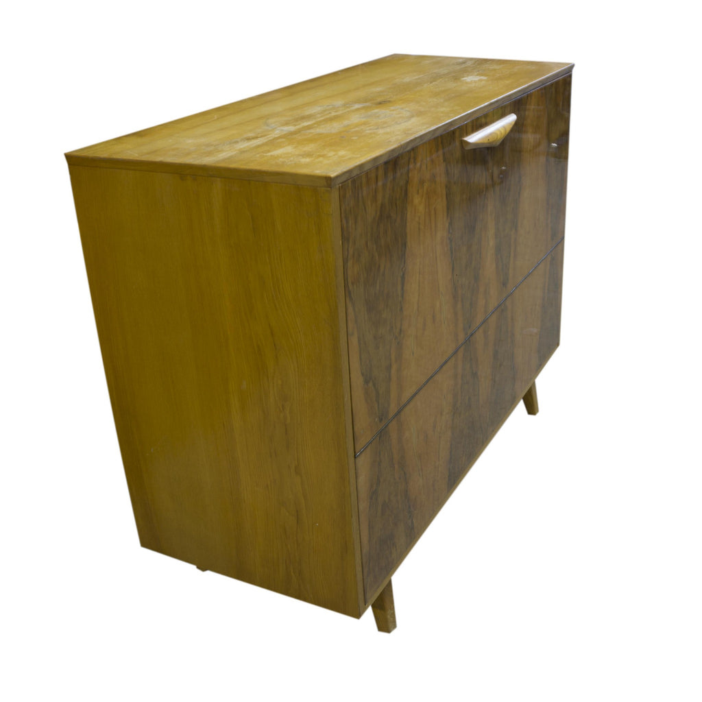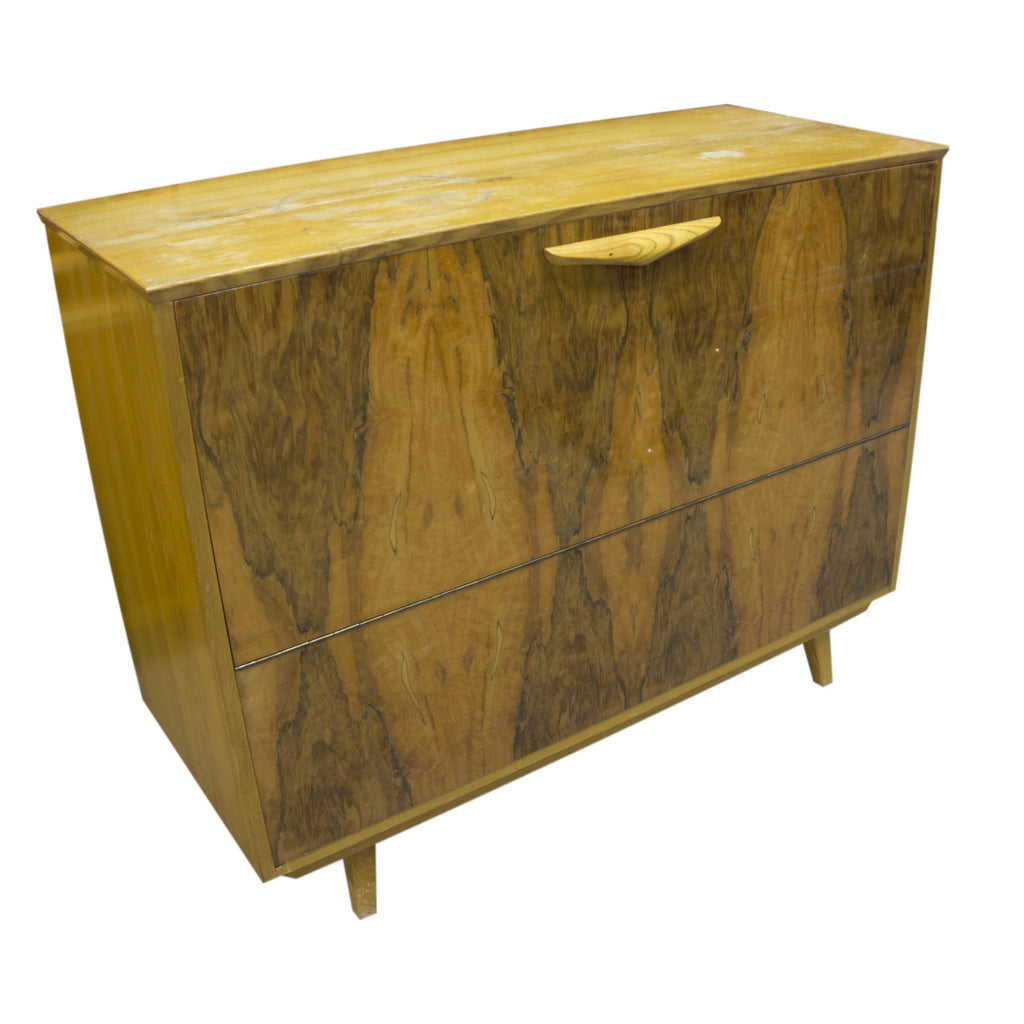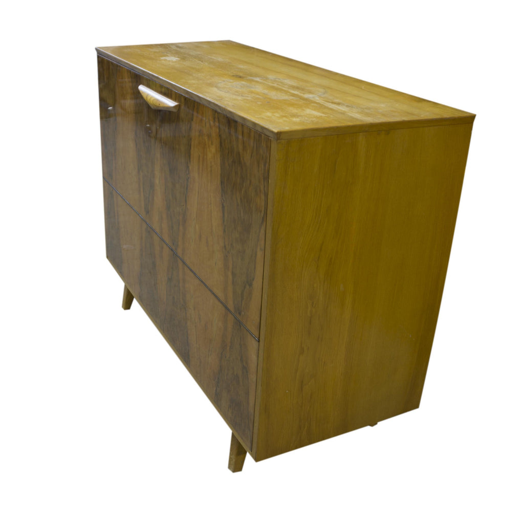 Modern Vintage cupboard for bed linen, Scandinavian-style. Author unknown. A very well-preserved condition, almost like new. Polished veneer. The cabinet is part of the room, which consists of the sideboard, cabinet and coffee table. See our other offers.