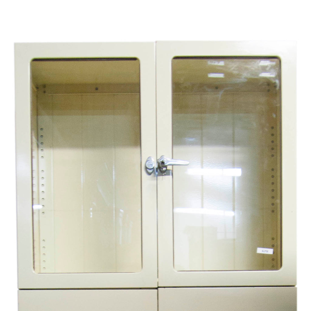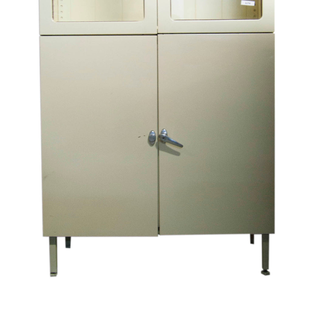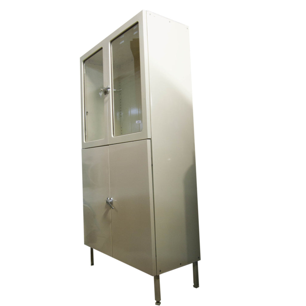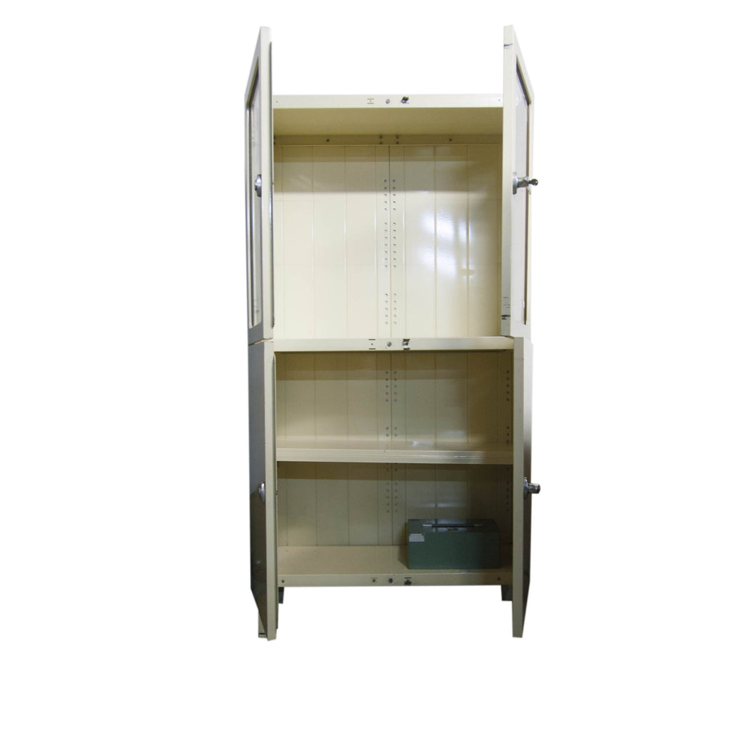 Metal and Glass Medical/Apothecary Cabinet. 4 upper glass shelves, 2 below. Glazed, original locks.
