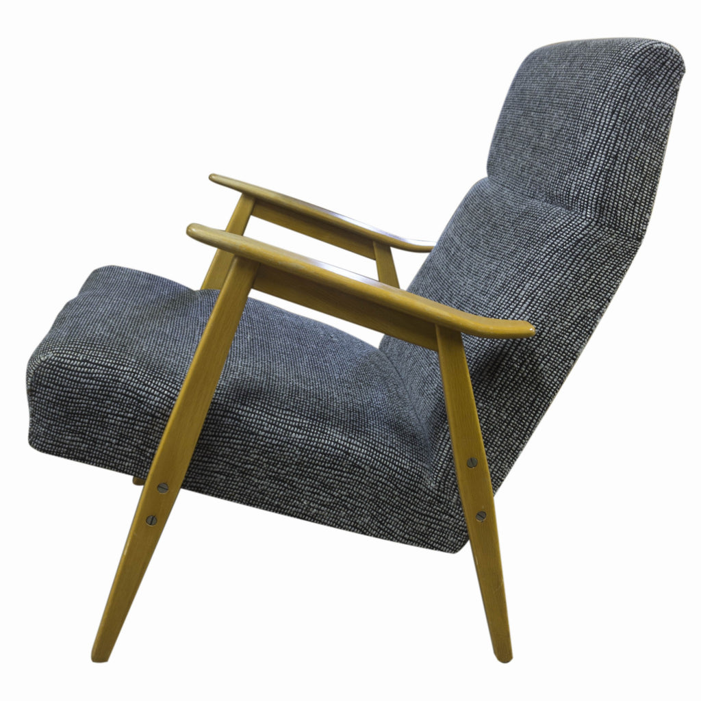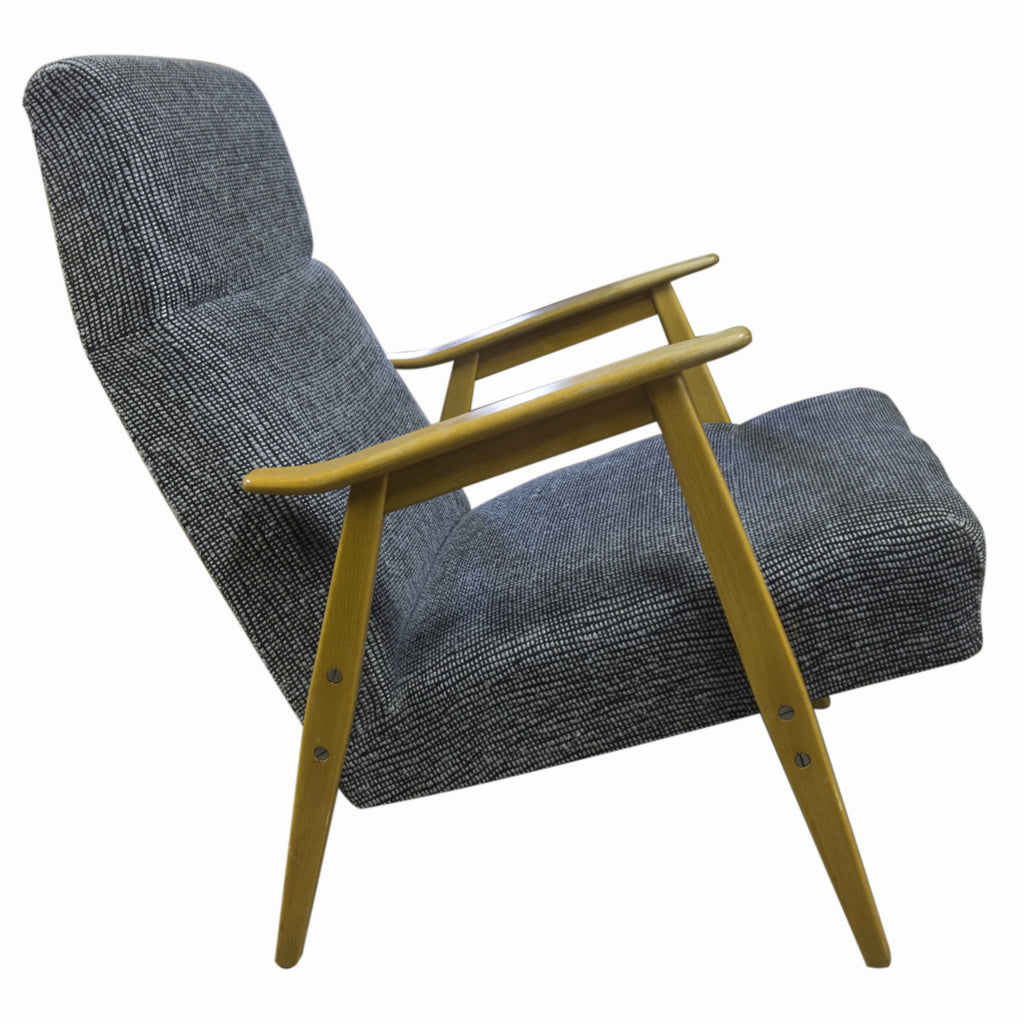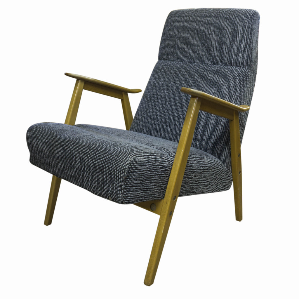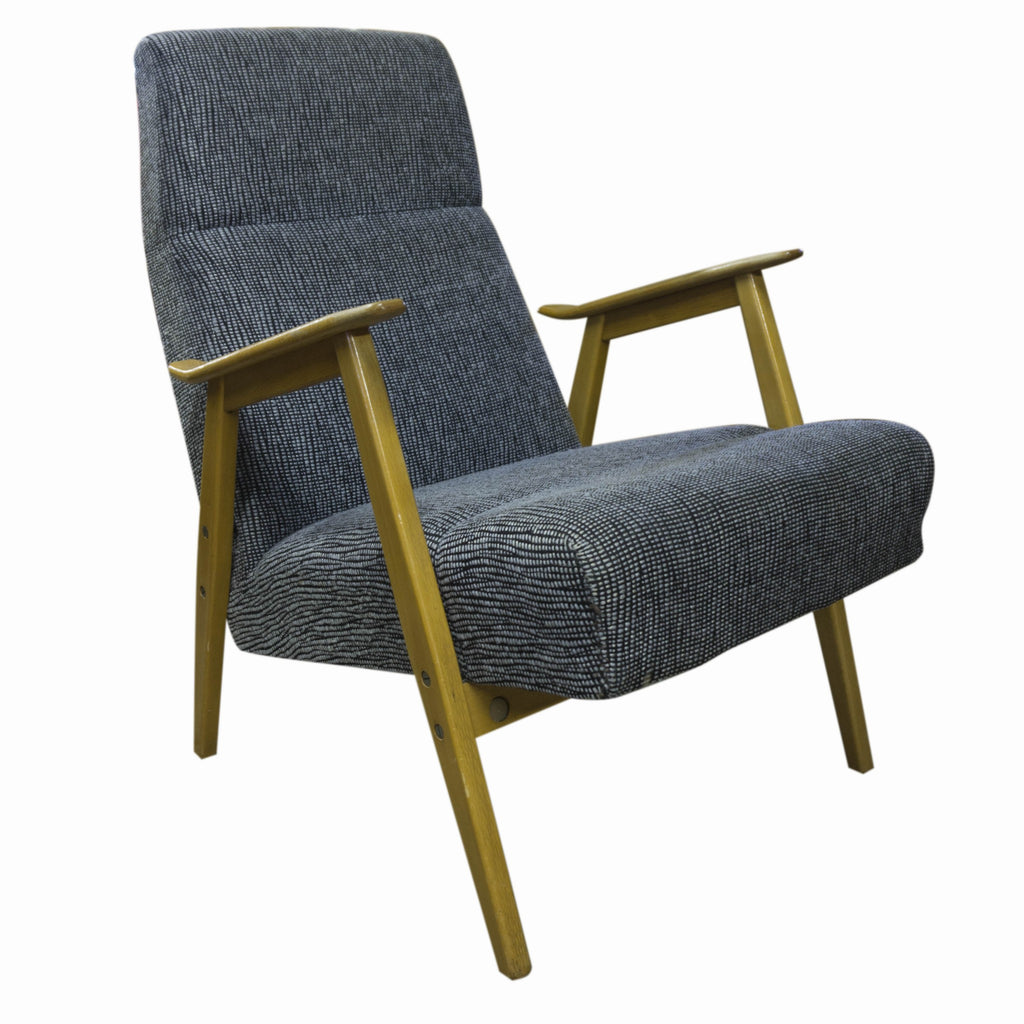 Occasional armchairs, Mid century, manufactured in Czechoslovakia. Easy and lovely model. Dark blue fabric in excellent condition. Very comfortable and interesting model in scandinavian style. Price for the pair.