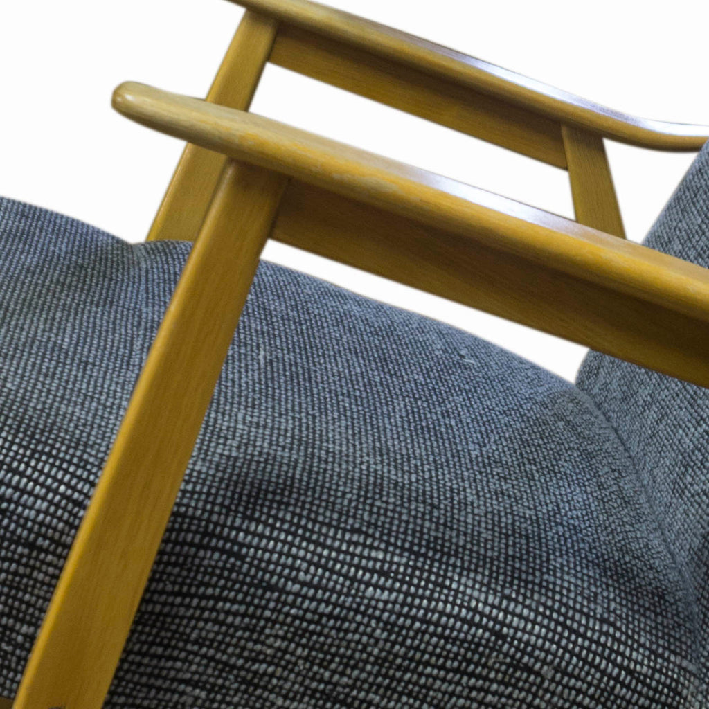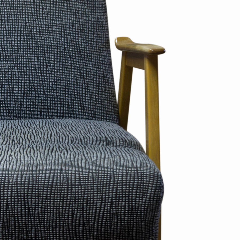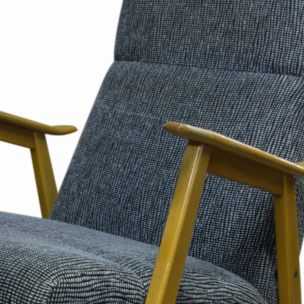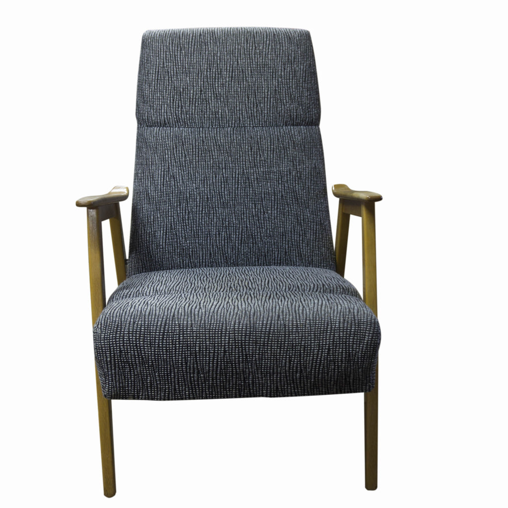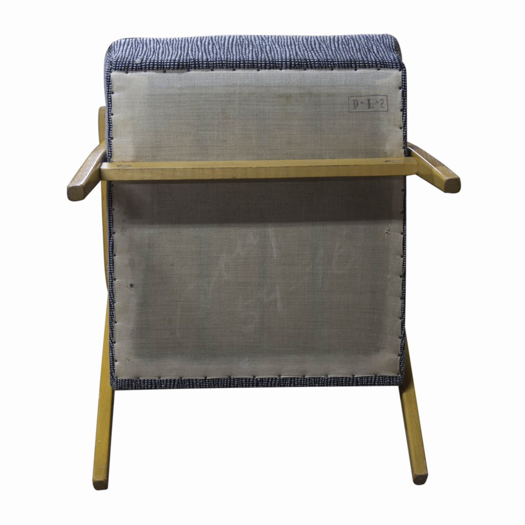 Occasional armchairs, Mid century, manufactured in Czechoslovakia. Easy and lovely model. Dark blue fabric in excellent condition. Very comfortable and interesting model in scandinavian style. Price for the pair.