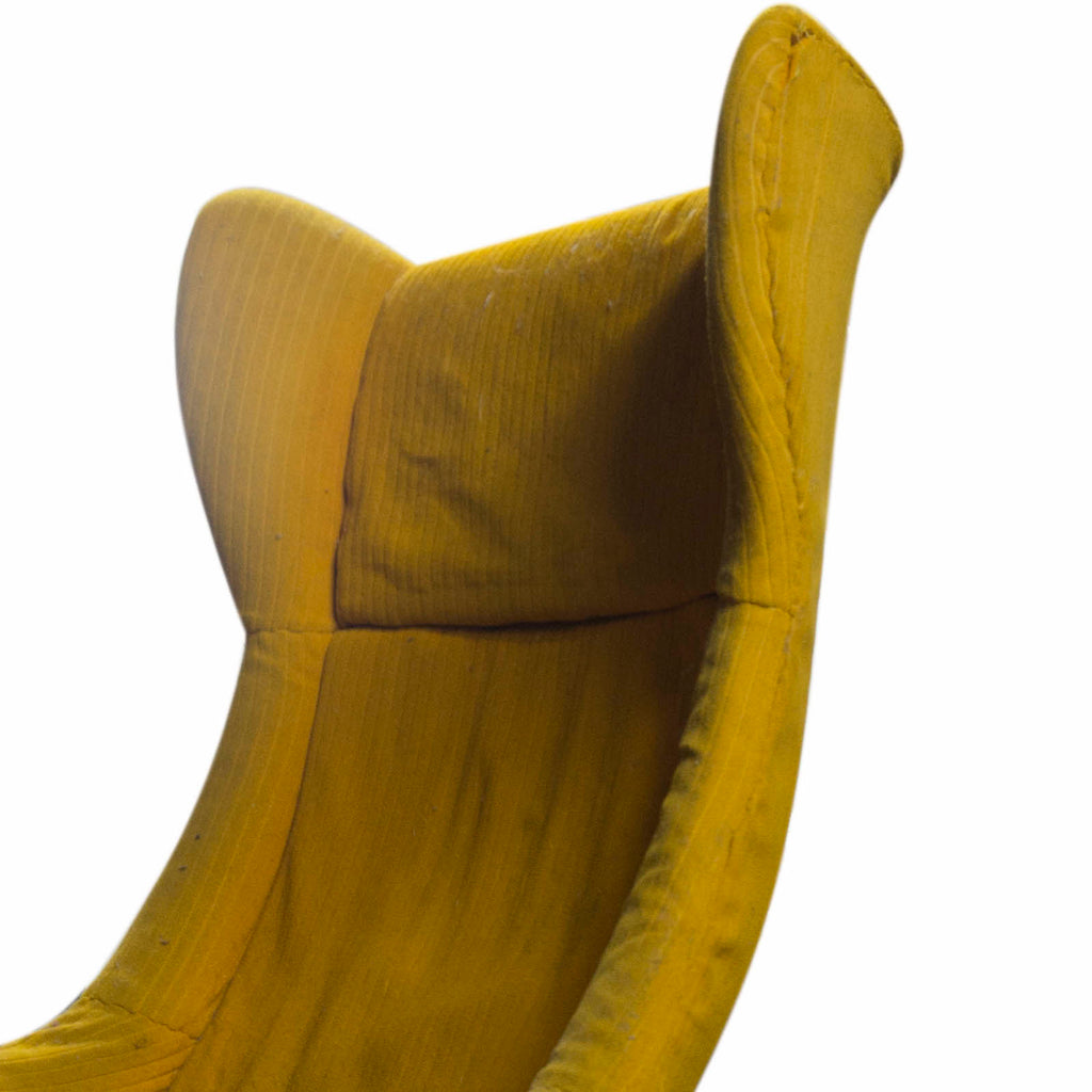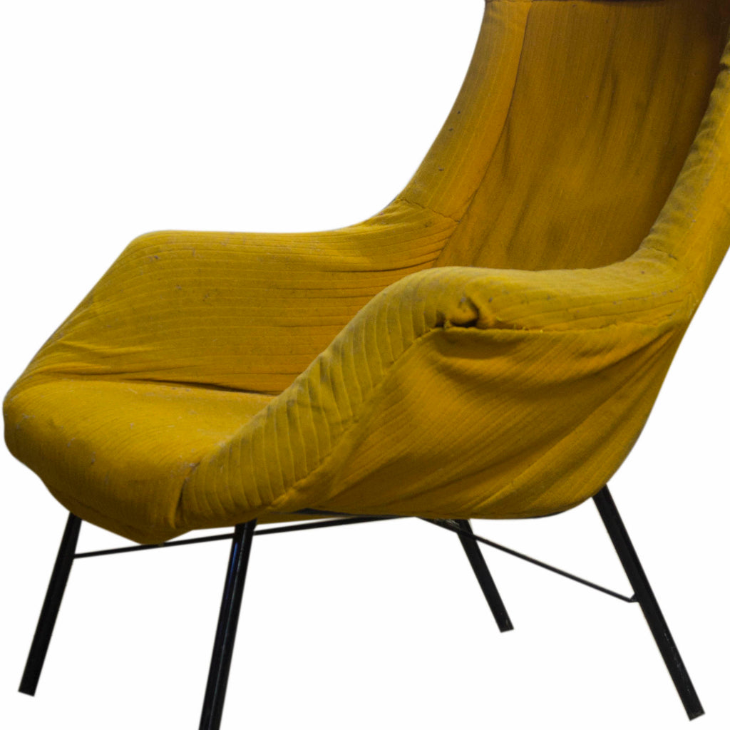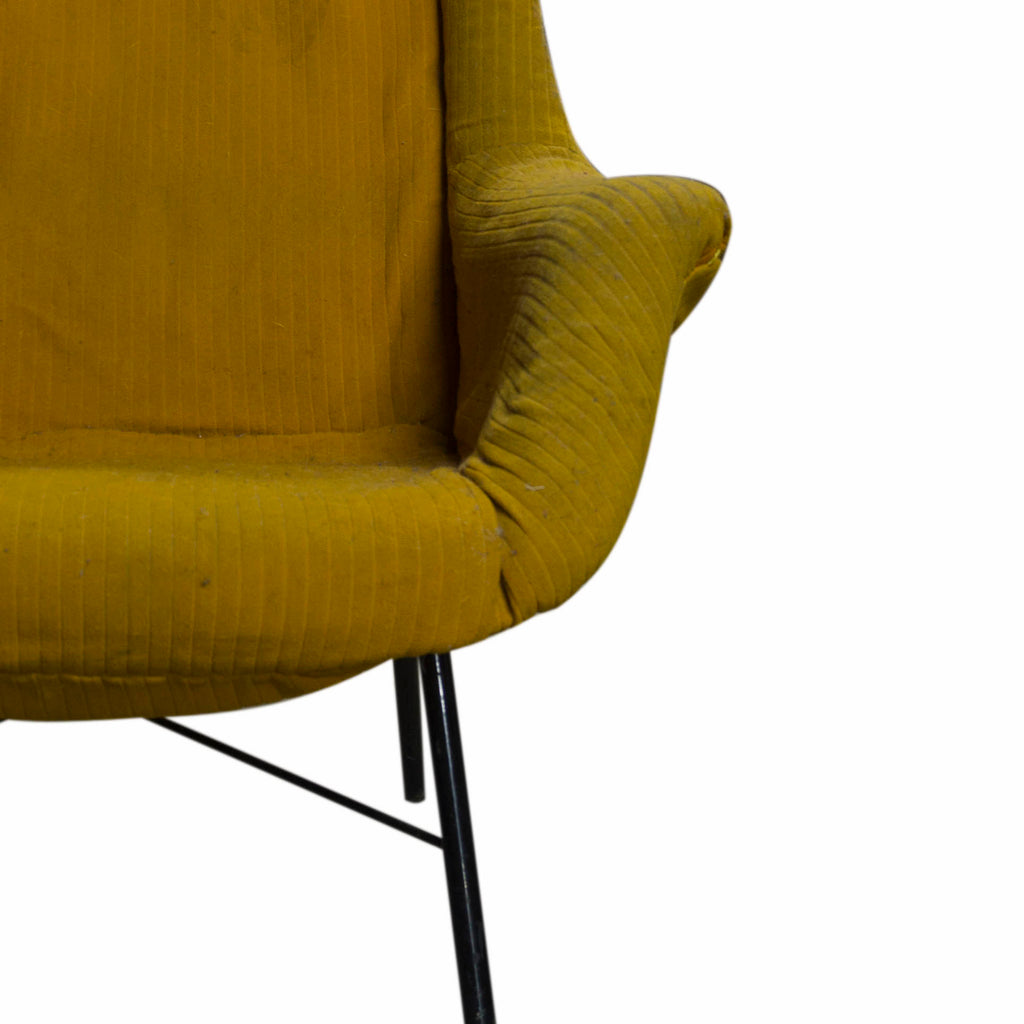 Chair are upholstered in the yelow fabric with a beautiful combination of Hair-pin legs of iron. In good original condition, with minor wear consistent with age and use.