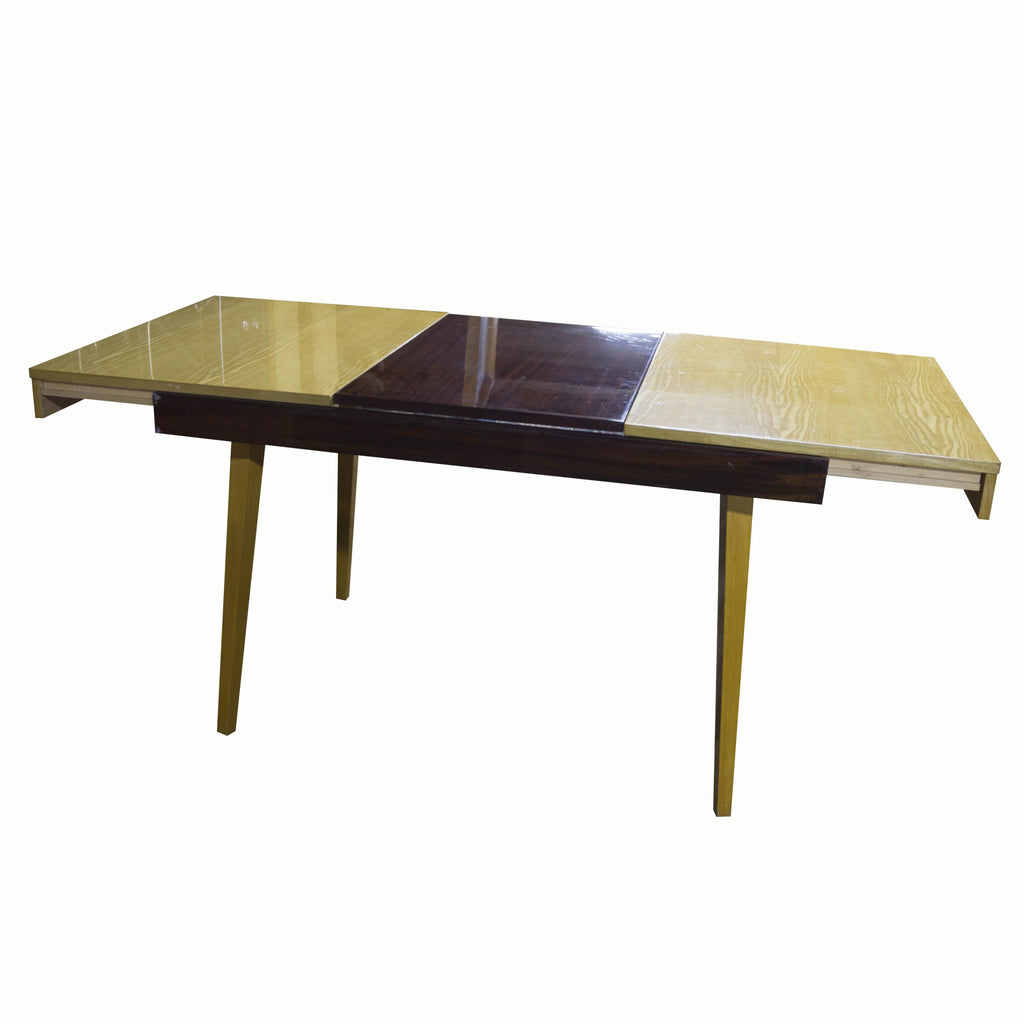 Vintage Dining set, 1970´s, manufactured by TON, in scandinavian style, includes folding dining table with four chairs. Very interesting shaping. In very good condition. Polished veneer. Rosewood, beech wood, plywood.