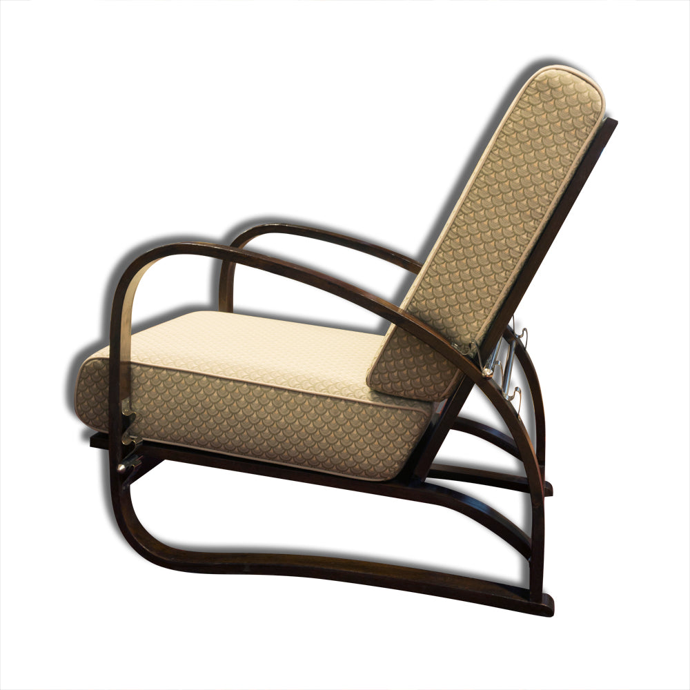 These famous armchairs originates from the workshop by one of the most significant European prewar designer Jindrich Halabala. It was designed in the 1930´s. The backrest and seat can be set in three different positions.