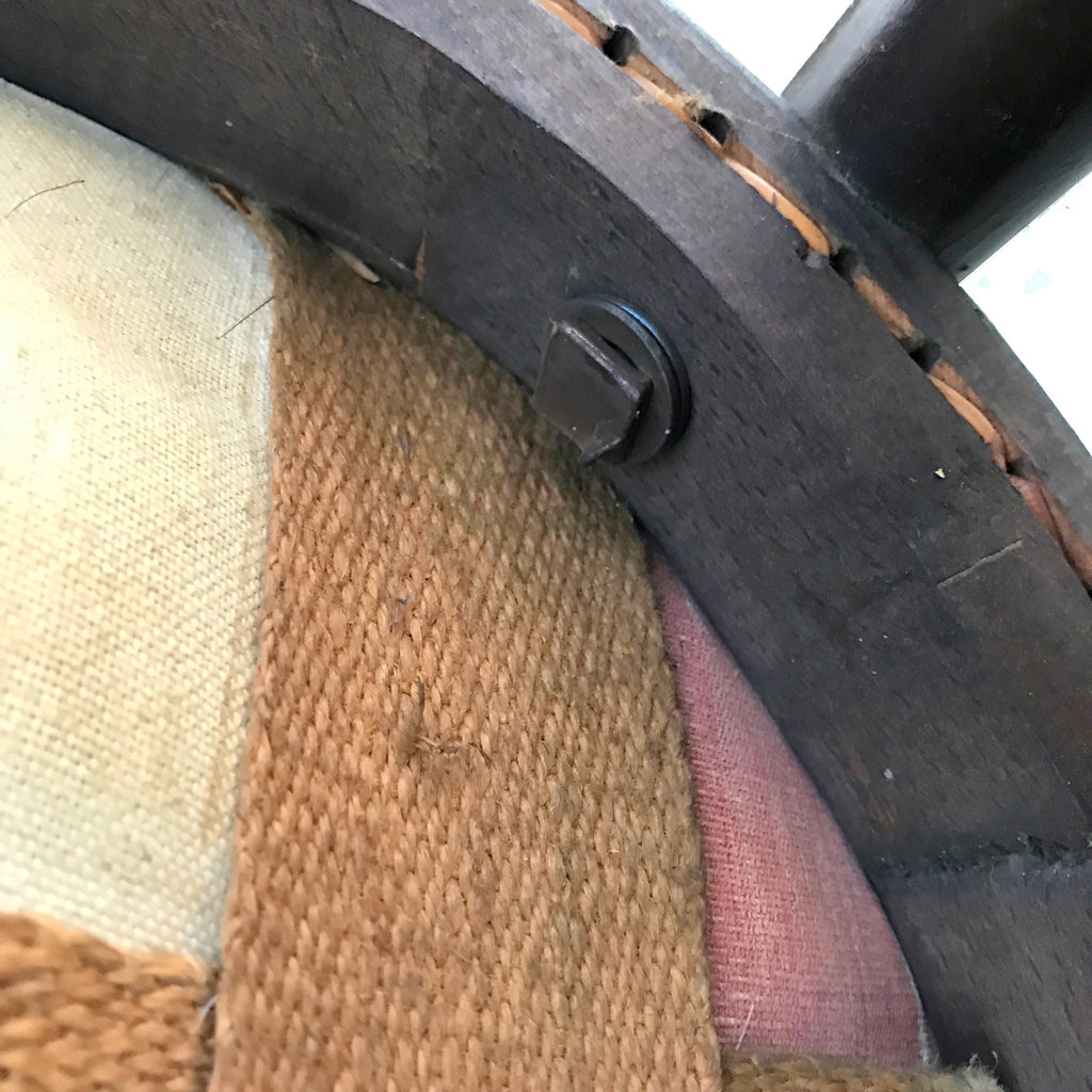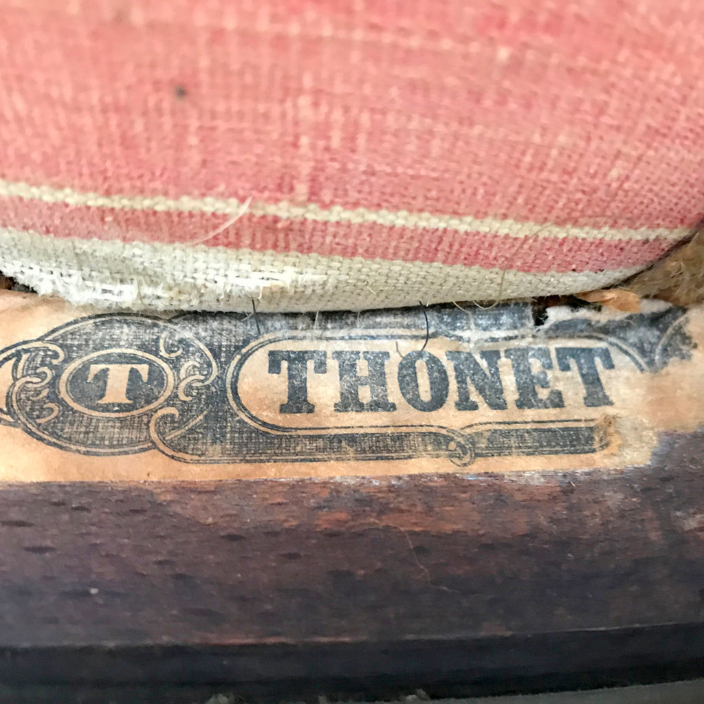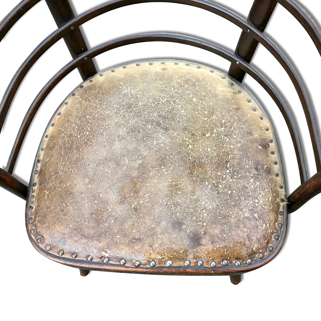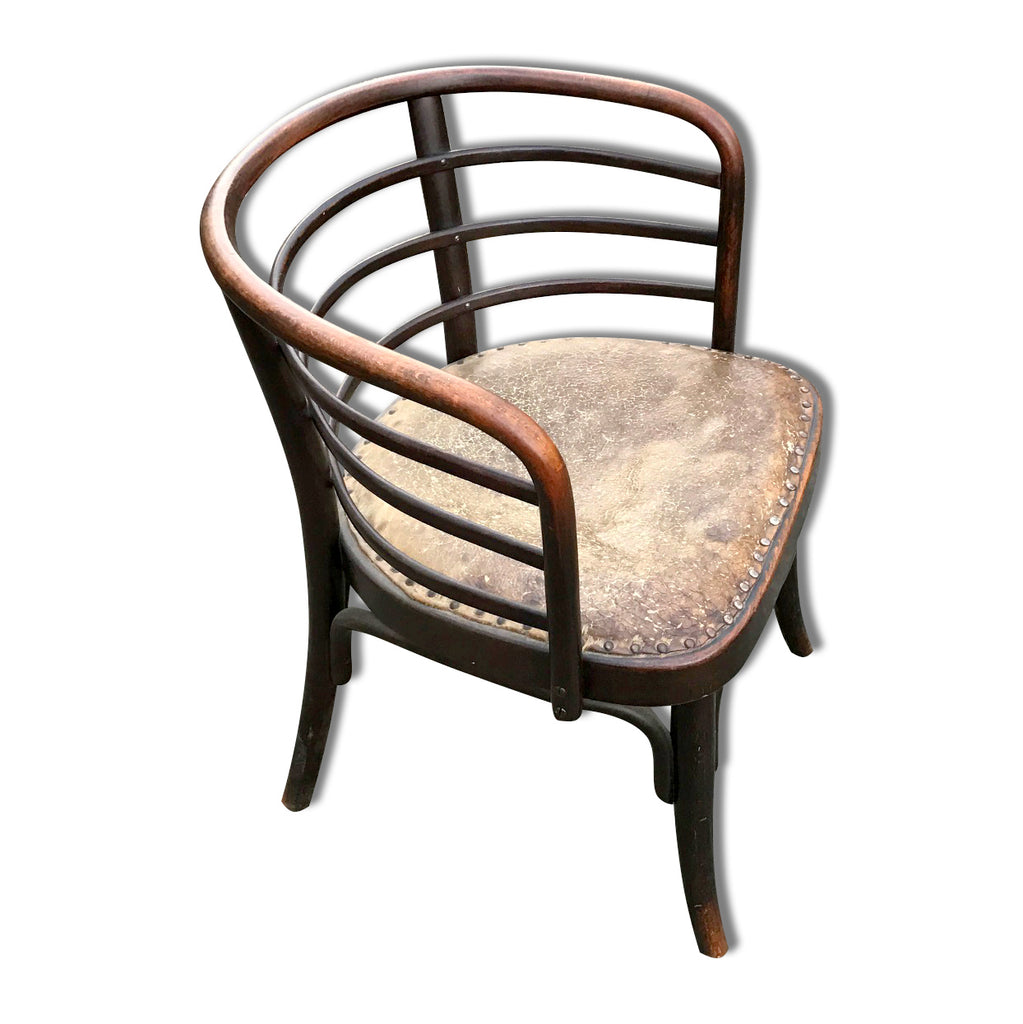 These chairs are really occuring seldom currently. It was designed by Josef Frank and manufactured in Austria by Thonet company. Dark stained beech wood and bentwood construction, leather upholstery. Originally probably with a Pedigo strings which were probably replaced by. All the chairs are marked Thonet. Unusual and very interesting design of these chairs. The chairs are in a fair vintage condition with wear consistent with age and use. One chair has a smaller damage leather-look at the pictures.
