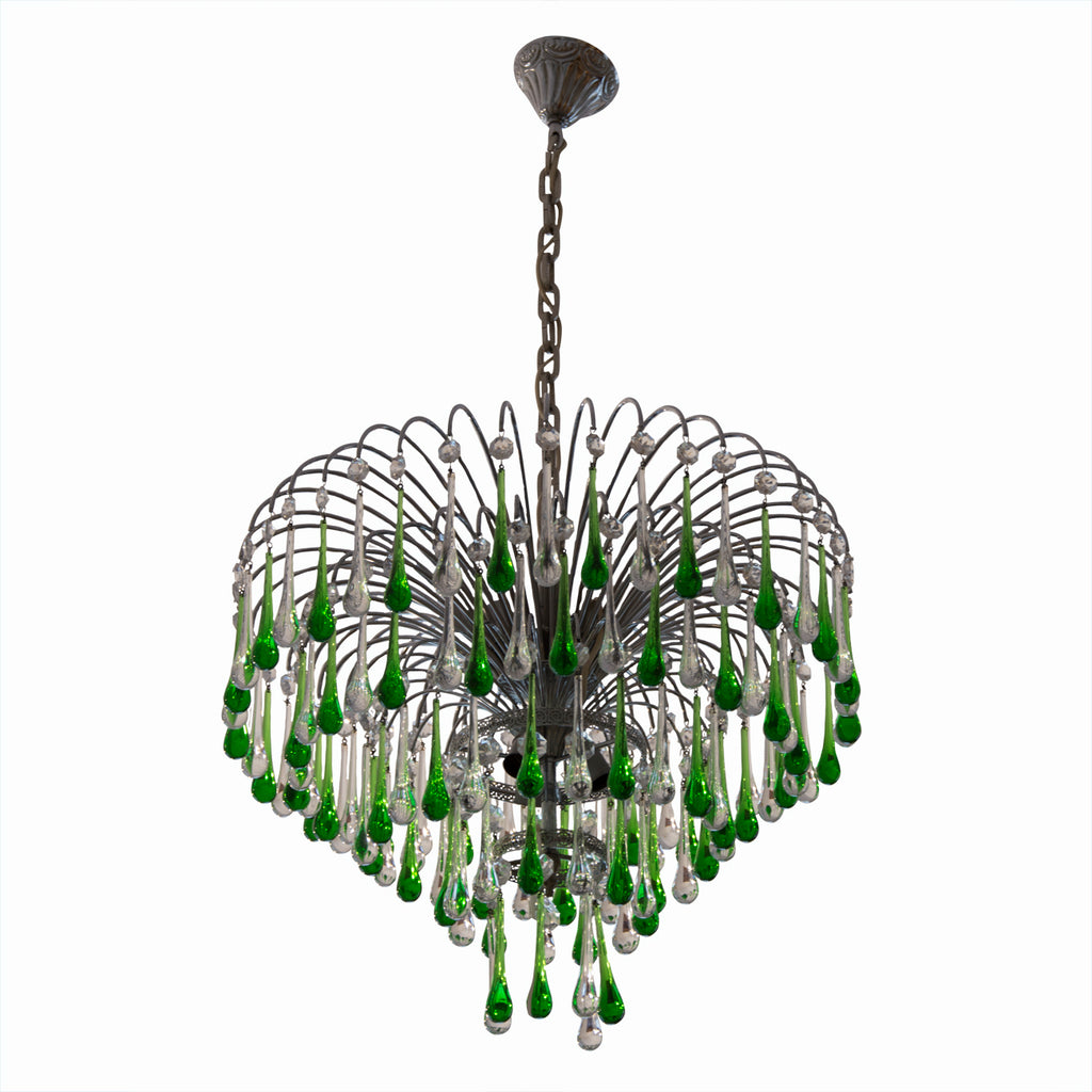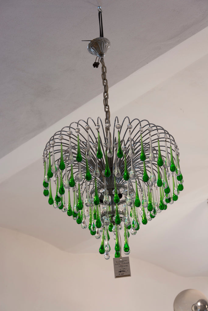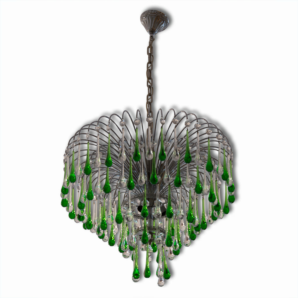 Murano Crystal Teardrop Waterfall Chandelier, Italy, 1950s