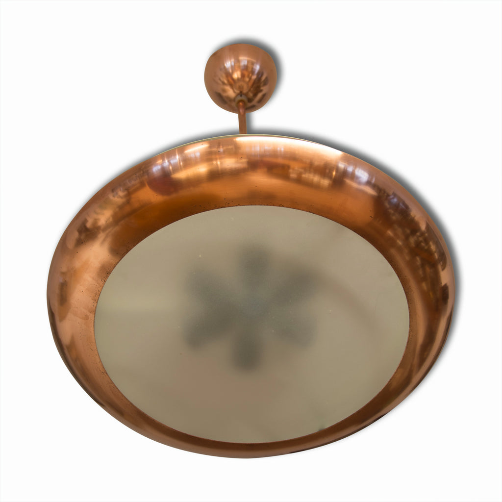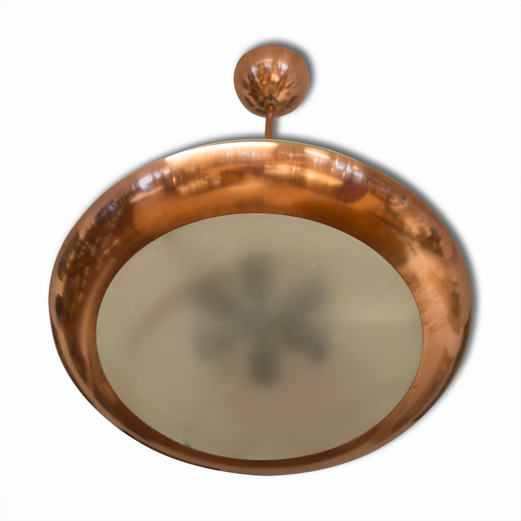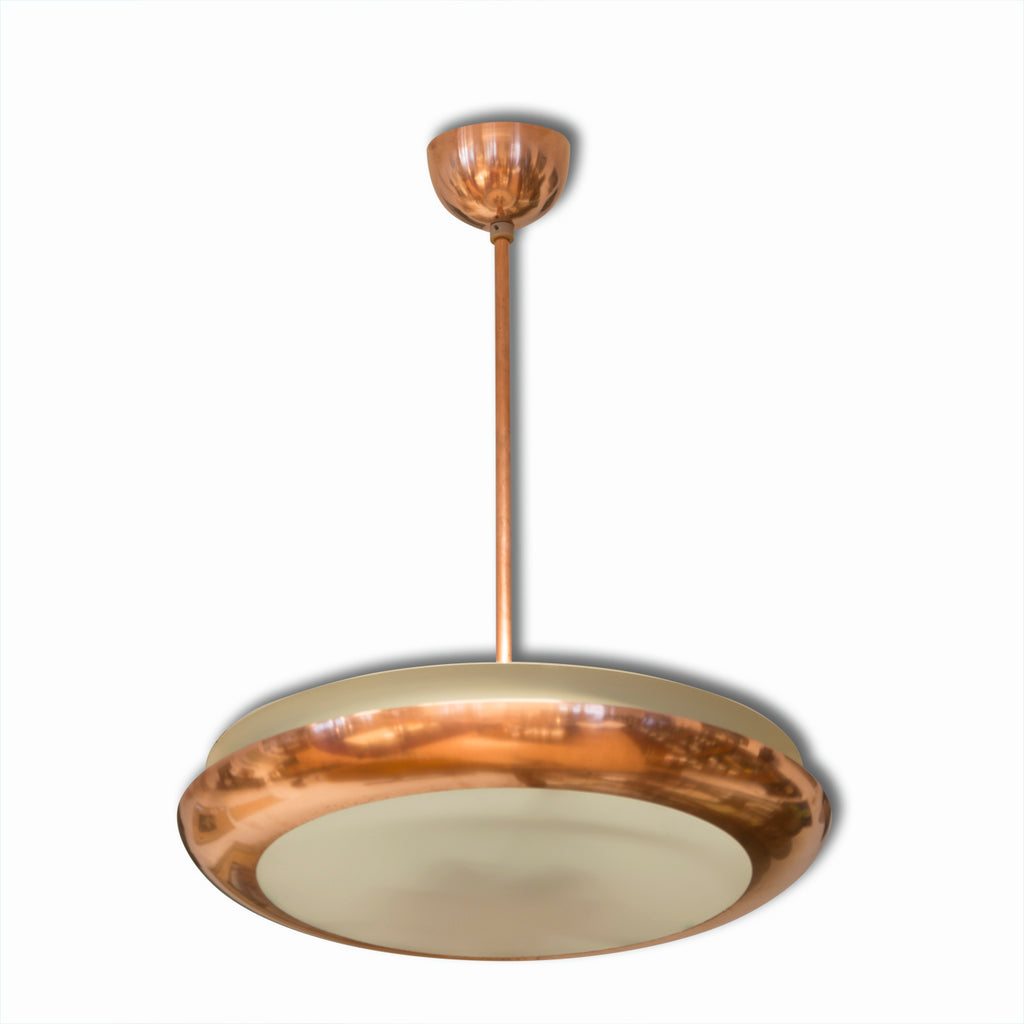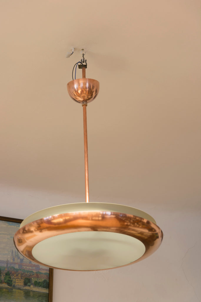 Bauhaus pendant "UFO" by Josef Hurka for Napako, 1930´s. Copper, opaline glass.