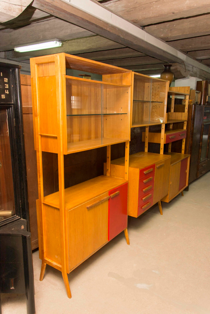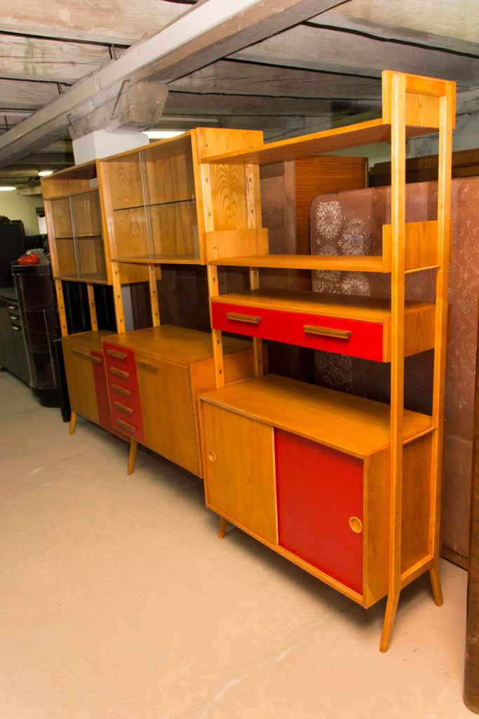 Czechoslovak modernist beech unit shelf system by F.Jirak, 1960s