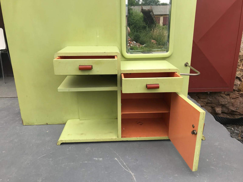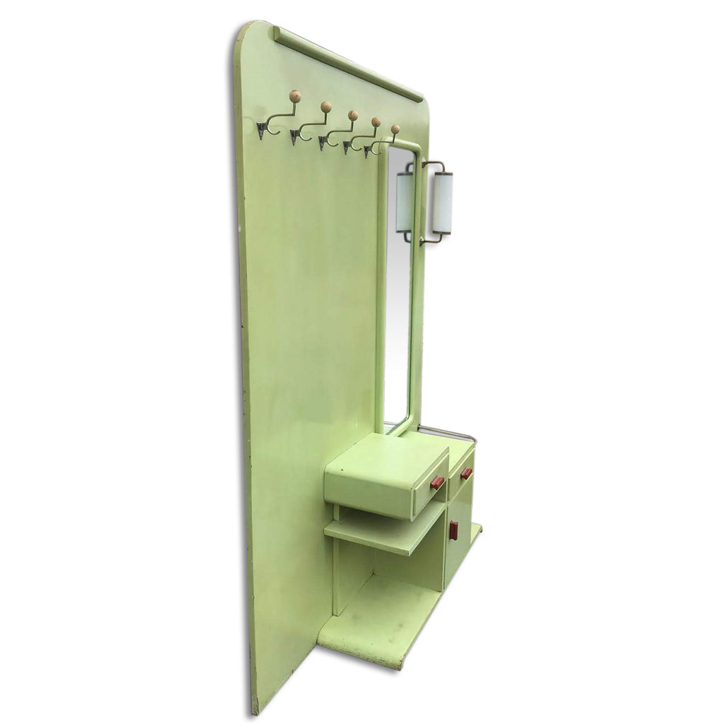 For all Bauhaus lovers! A beautiful example of Bohemian pre-war functionalism represents this model of entrance Clothes stand with mirror. It was made in the 1930´s. The stand is in good Vintage condition (the surface was probably refinished in the past), showing some signs of wear and tear. The manufacturer is not recognized, we attribute to Thonet or Slezak, or Gottwald company.