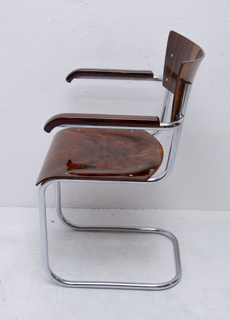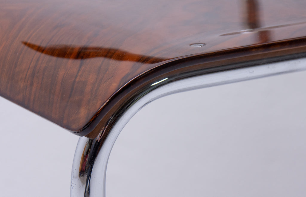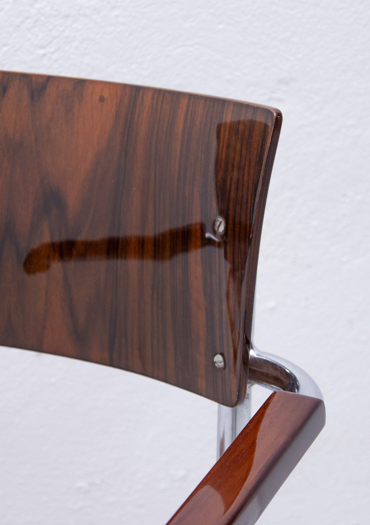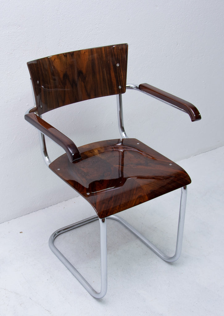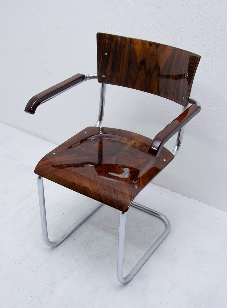 This B43 tubular desk chair was designed in 1931 by the world-renowned designer Mart Stam. It was made in the 1950s. The chair is fully refurbished to a high gloss using polyurethane. In excellent condition.
