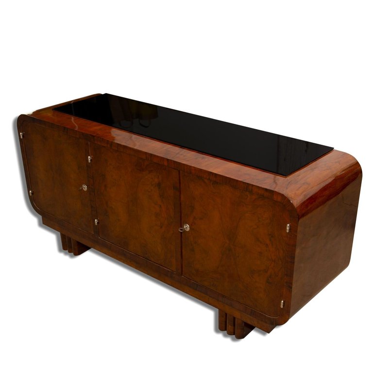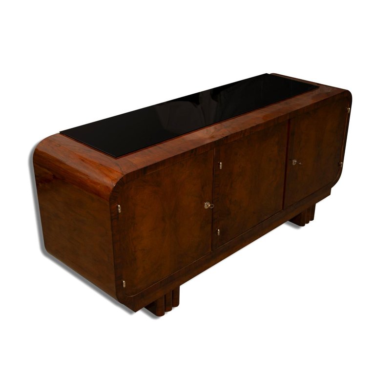 Art Deco Walnut Commode or Sideboard, 1930s, Bohemia
