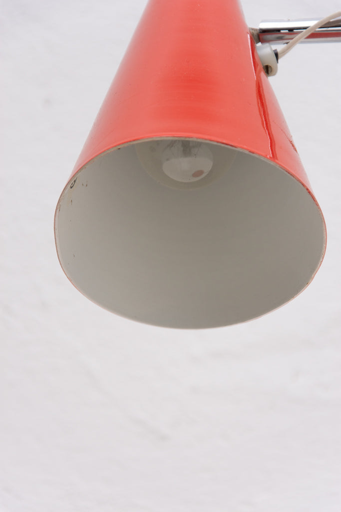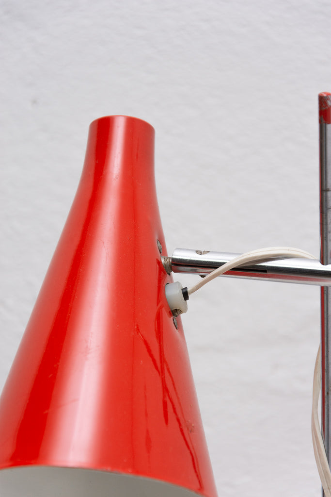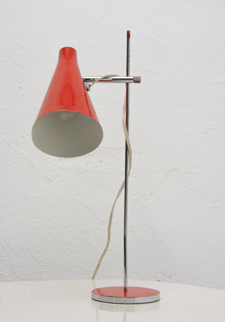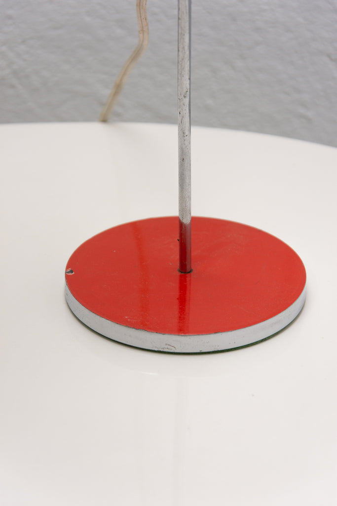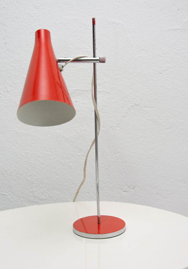 Mid century desk lamp designed by Josef Hurka for Lidokov, associated with "Brussels period" and world-renowned EXPO58. Chrome plated construction, lampshade adjustable to the sides and up and down. Lampshade material aluminum, plastic. In good Vintage condition, fully functional, original wiring.