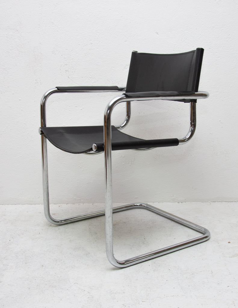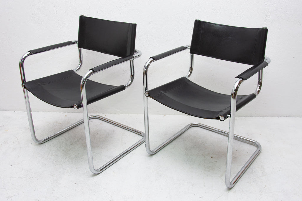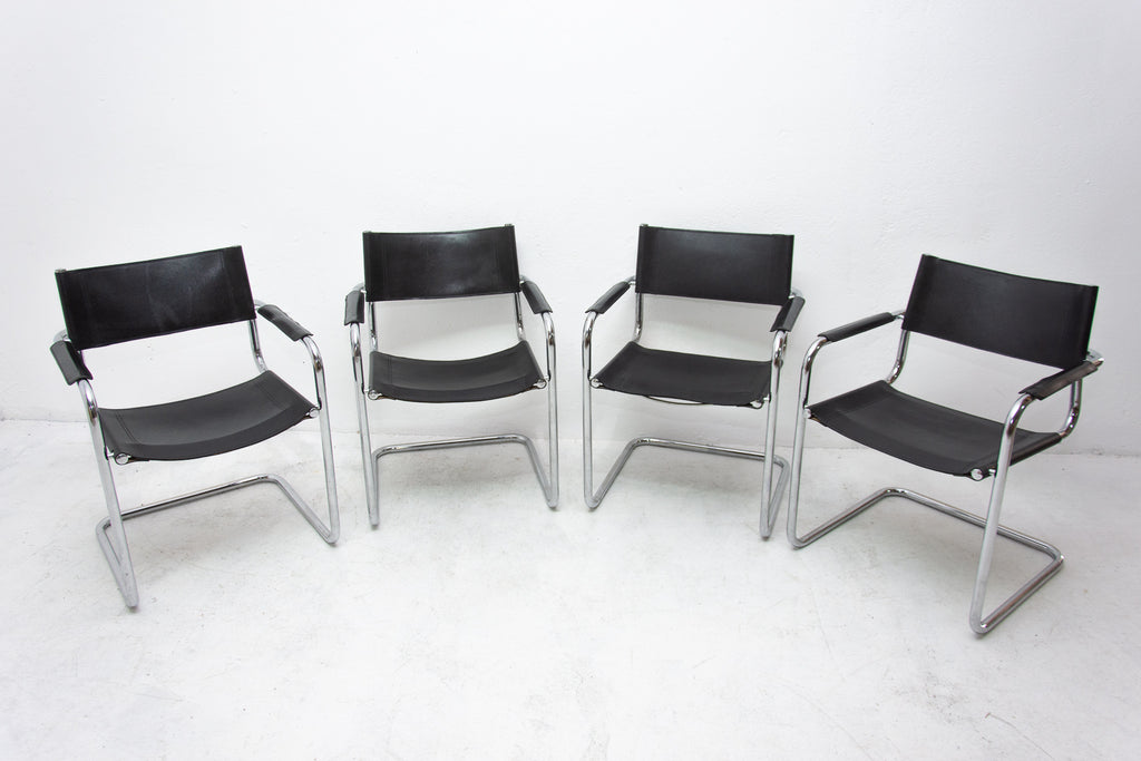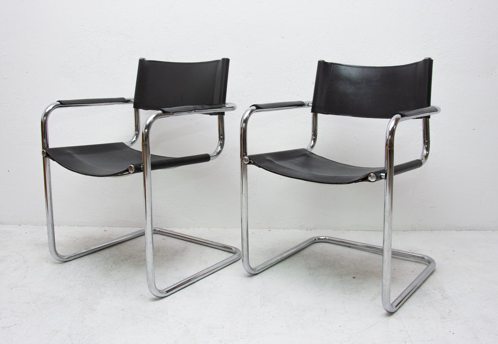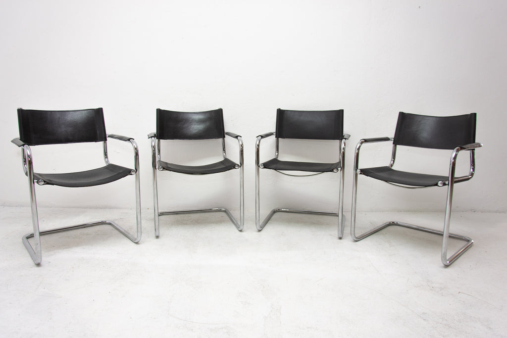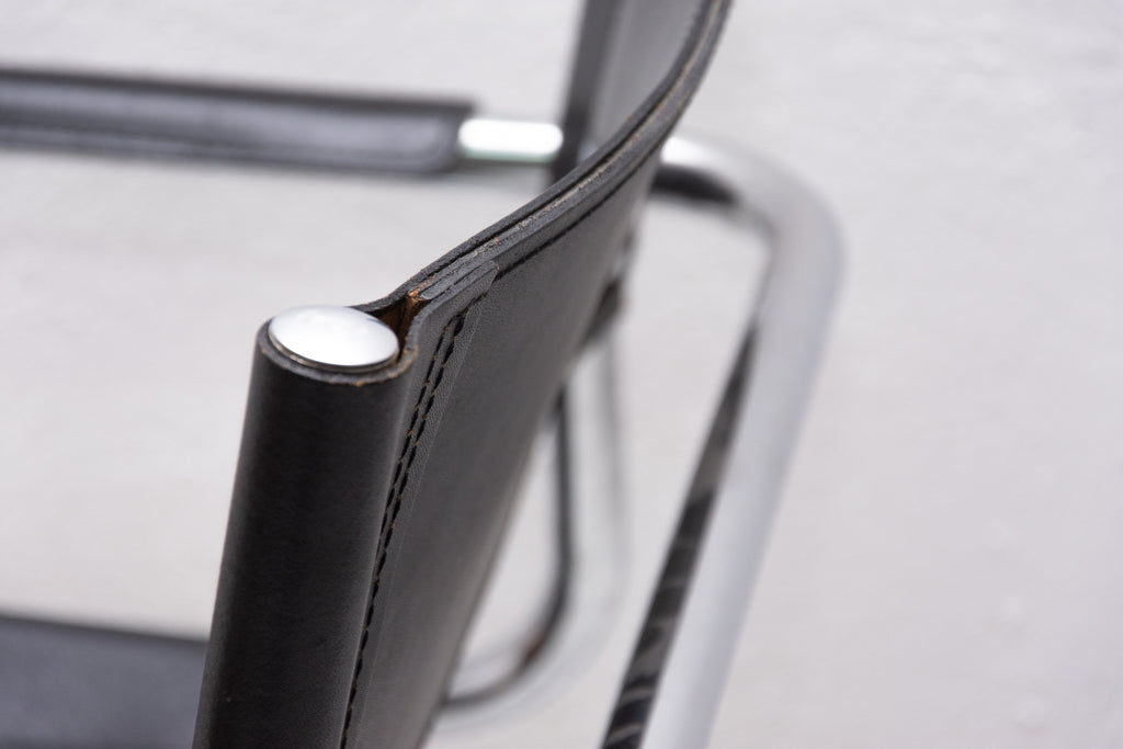Italian S34 Leather and Chrome Cantilever Chairs by Mart Stam, 1980s