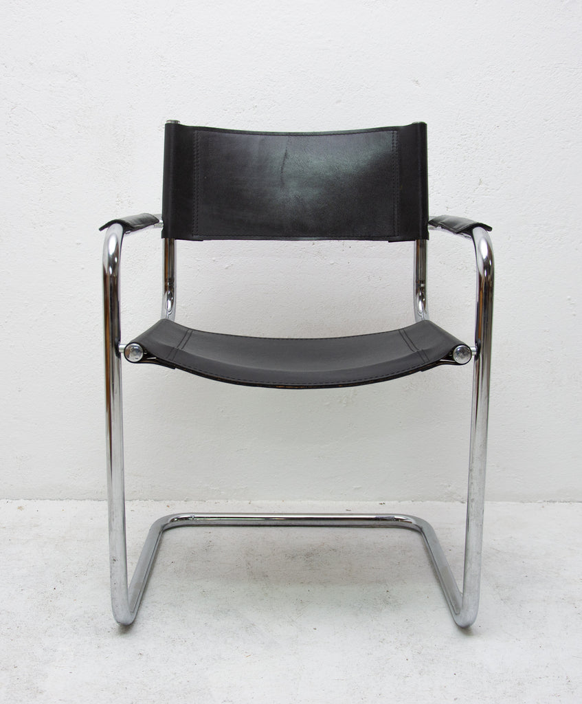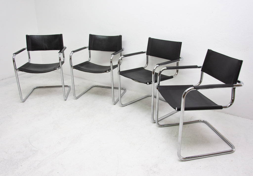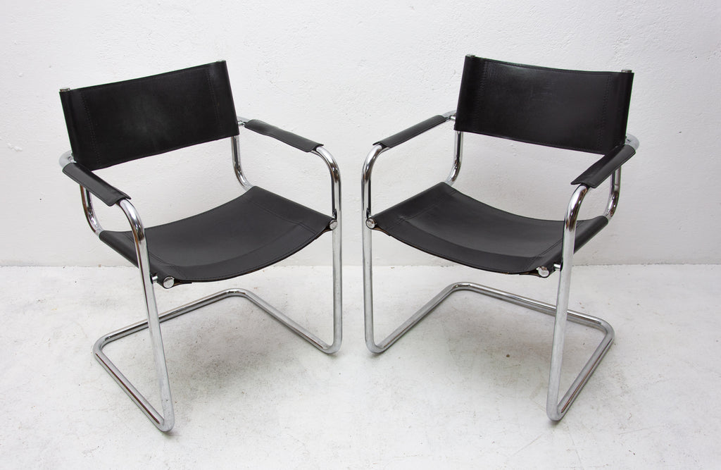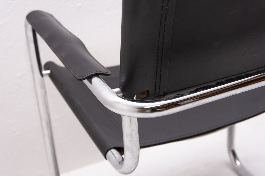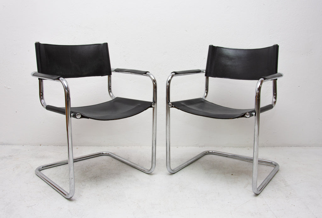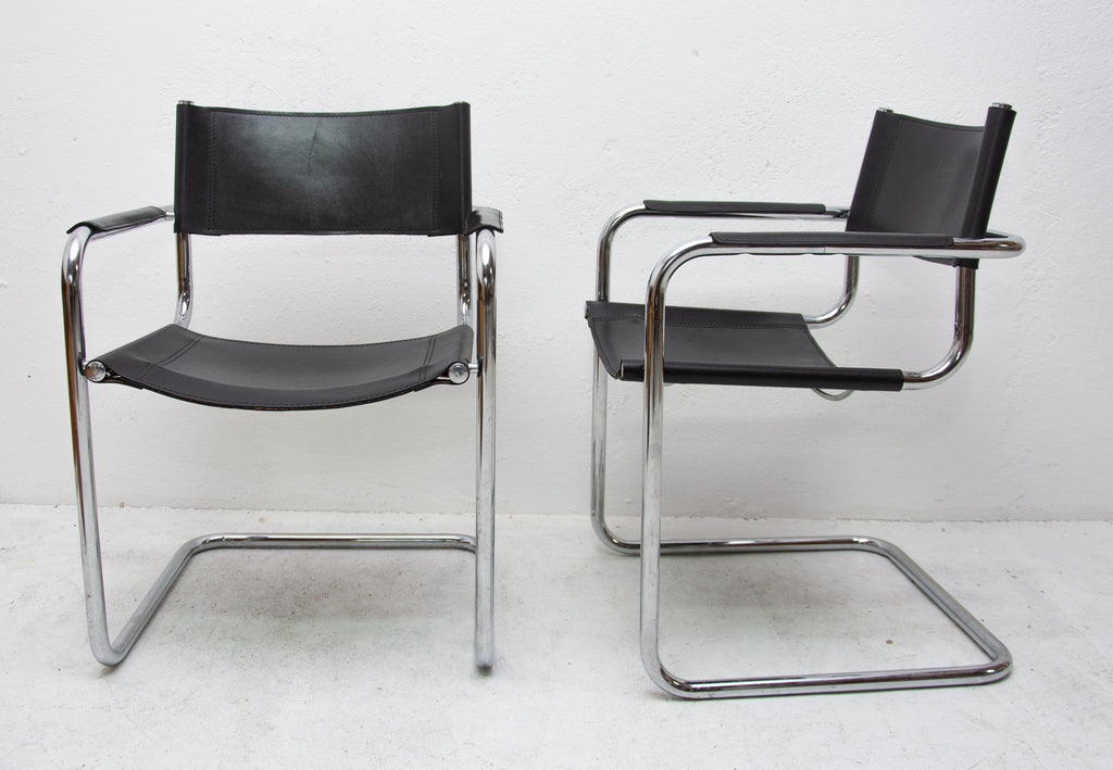 Italian S34 Leather and Chrome Cantilever Chairs by Mart Stam, 1980s